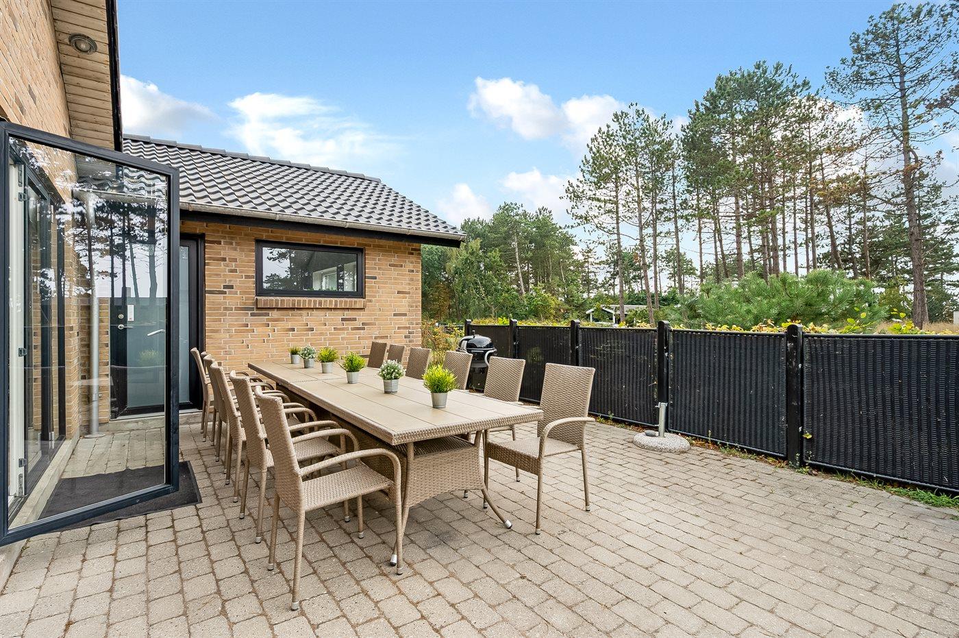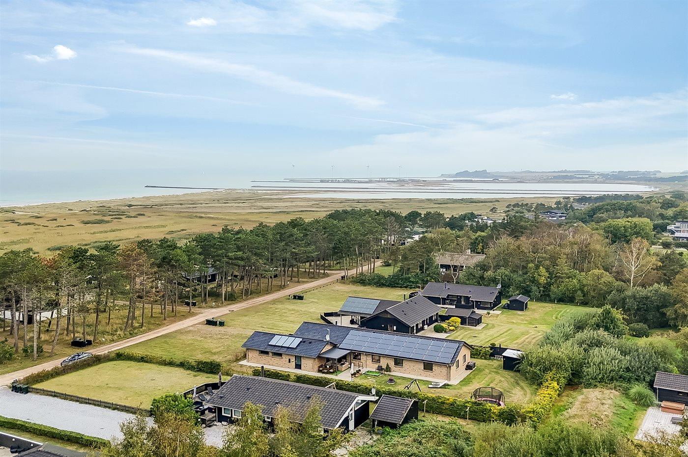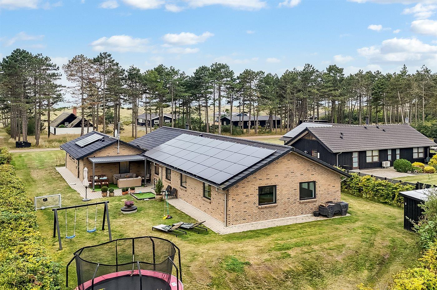 Die Ferienunterkunft liegt auf einem 1300 m² großen Gartengrundstück. Die Entfernung zum Meer beträgt 200 m. Die nächste Einkaufsmöglichkeit liegt 1200 m entfernt. Es steht ein offenes Terrassenareal zur Verfügung. Außerdem gibt es überdachte Terrasse. Geräteraum. Schaukel. Sandkasten. Trampolin. Fußballtor. Außendusche. Es steht ein Grill zur Verfügung. Es ist ein Ladestecker für Elektroautos installiert. Ladestecker Typ 2. Mit einer Ladeleistung von 11 kW. Parkplatz auf dem Grundstück.