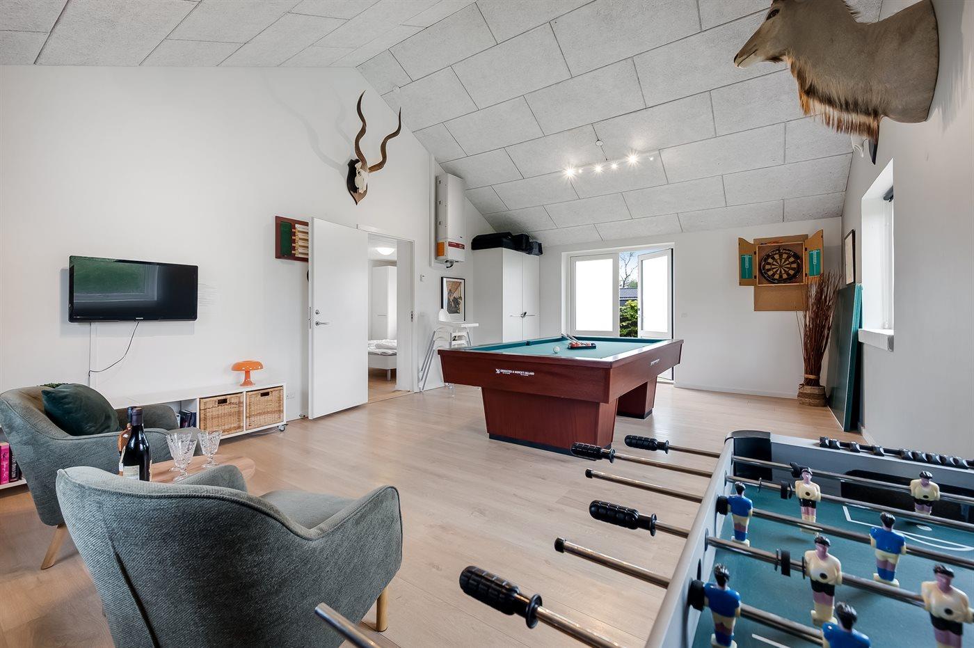 Hobbyraum mit: Billard. Pooltisch. Tischtennis. Dart. Tischfußball.
