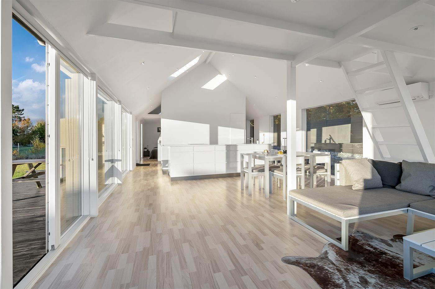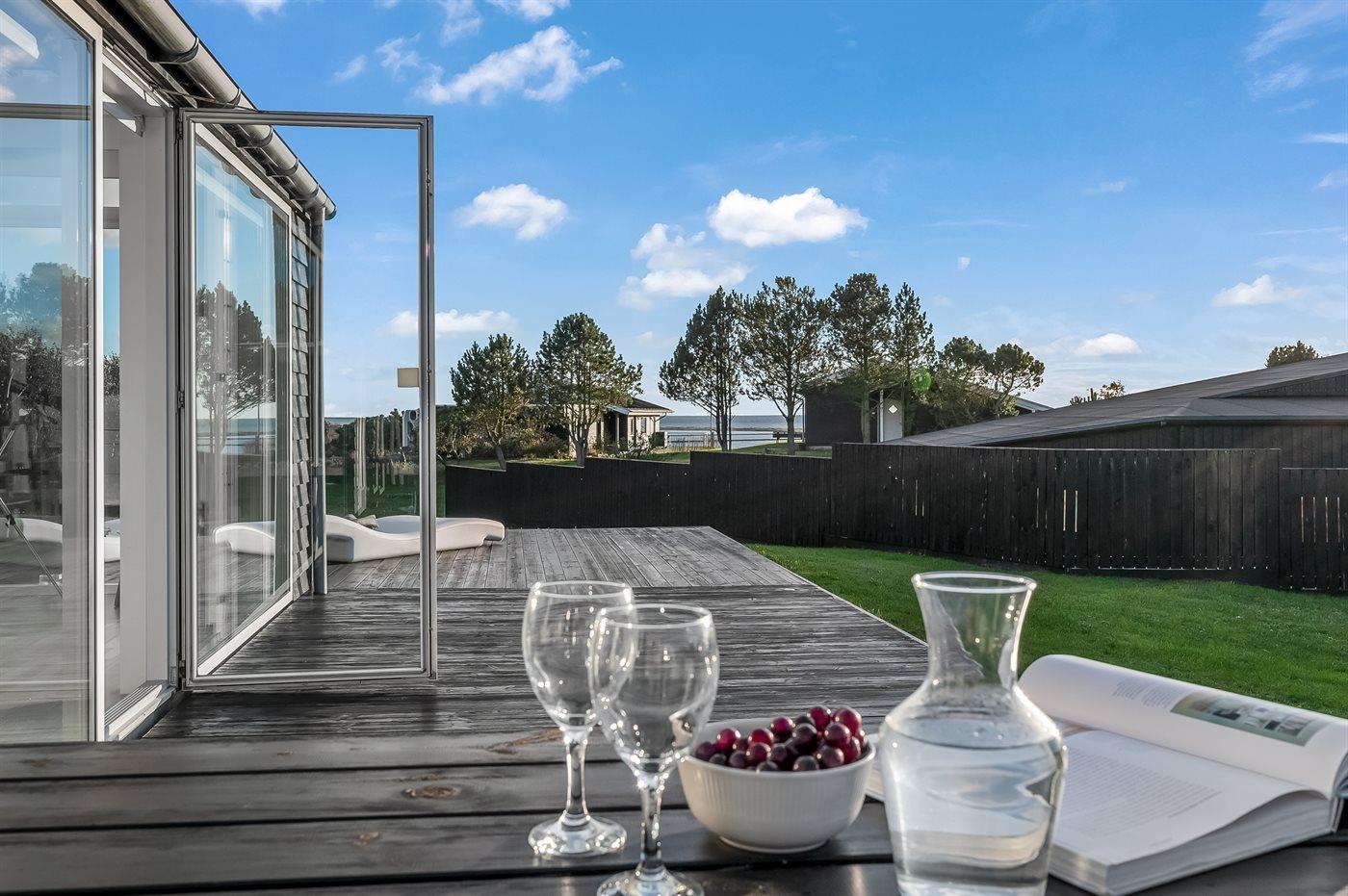 Modernes Ferienhaus in Ebeltoft mit Meerblick, Whirlpool und Fußbodenheizung für einen entspannten Urlaub.
