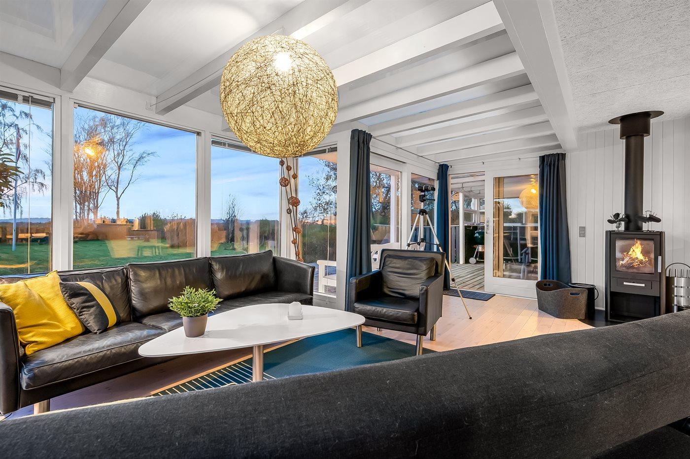 Ein gemütliches und gut gelegenes Ferienhaus in ruhiger Umgebung am Ahl Strand, der als einer der besten Badestrände in Ebeltoft gilt. Vom Haus und Grundstück hast du einen schönen Blick über offene Felder und das Wasser, wo du das Vogel- und Tierleben aus nächster Nähe beobachten kannst, während die Fähren der Molslinje am Horizont vorbeiziehen.