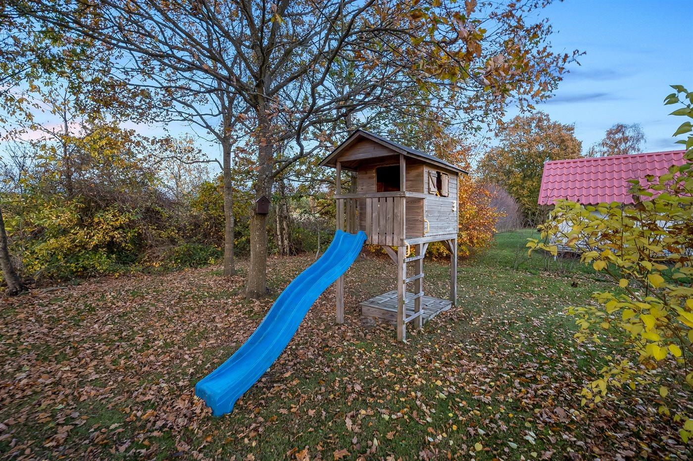 Draußen wartet ein großer Garten mit viel Platz zum Entspannen und Spielen. Die vielen Terrassen bieten dir den ganzen Tag über die Möglichkeit Stunden im Freien zu genießen – sei es in der Sonne, dem Schatten oder in einer vor dem Wind geschützten Ecke. Für die Kinder gibt es unter anderem einen Spielturm, Schaukeln und ein gemütliches kleines Spielhaus.