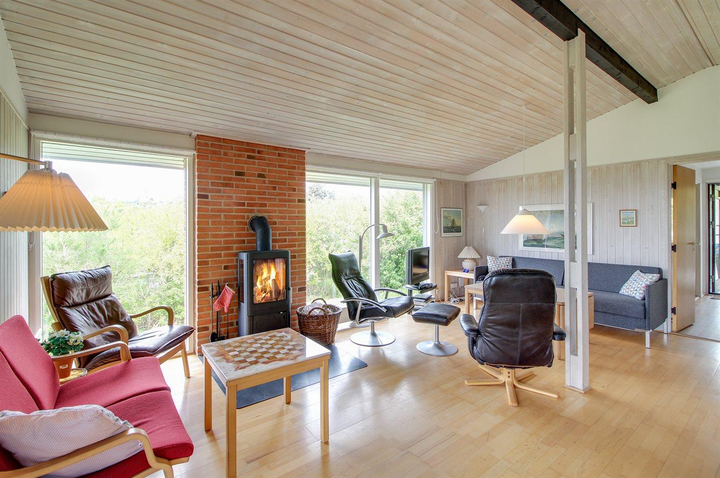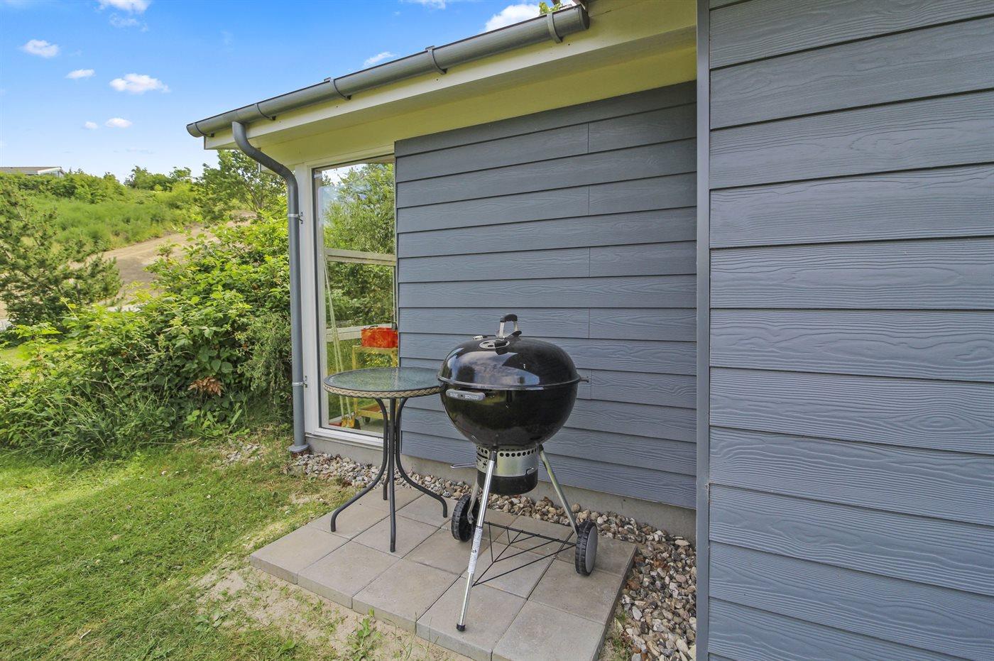Ein hell eingerichtetes Ferienhaus, das auf einem hügeligen Naturgrundstück liegt. Von der überdachten Terrasse haben Sie eine herrliche Aussicht auf die schöne Natur mit dem Meer im Hintergrund. Das Haus ist 2019 mit einem neuen Eingangsbereich erweitert - der mit einem Multifunktionsspieltisch eingerichtet ist.