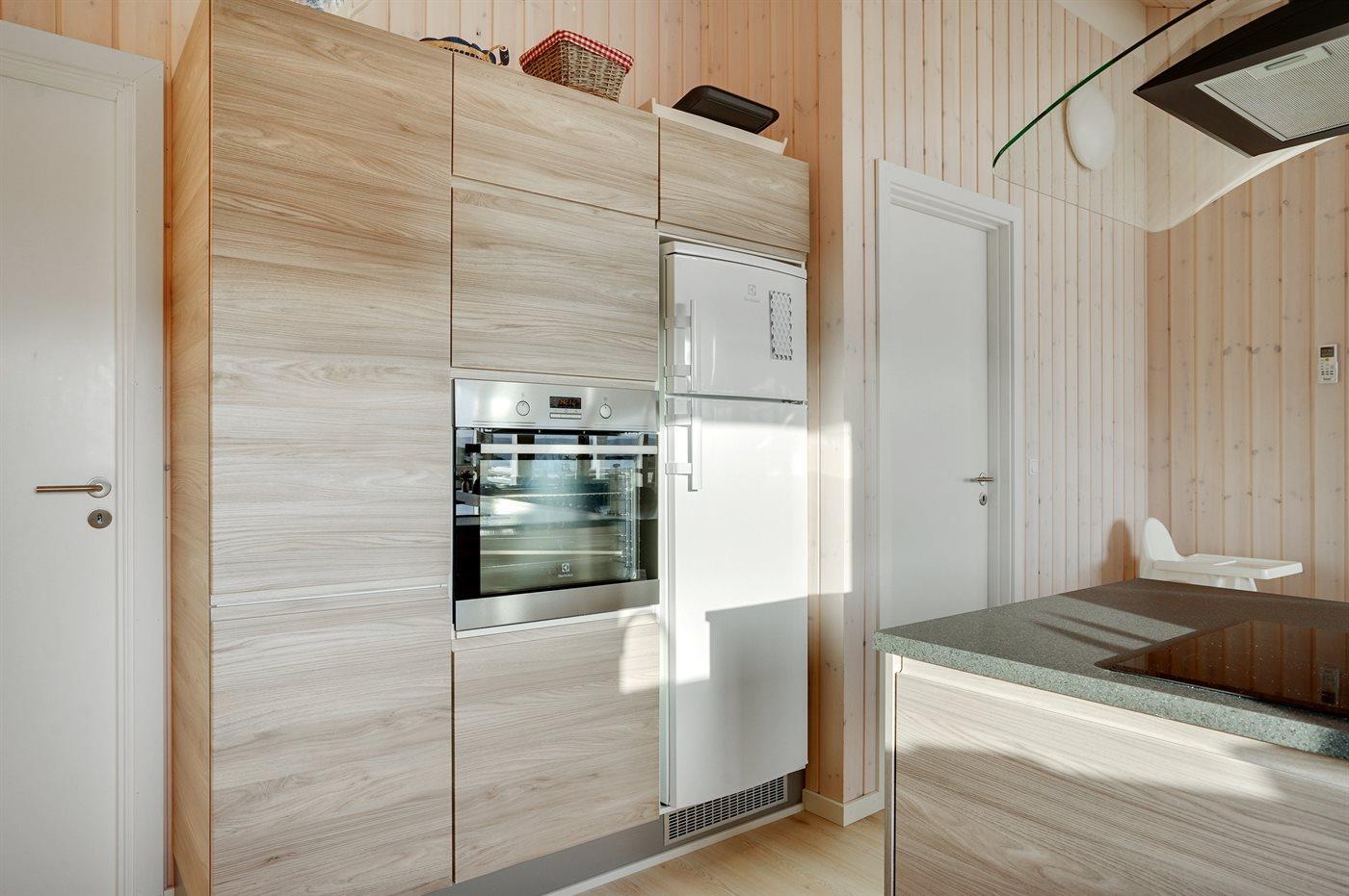 Die Küche ist mit Kühlschrank ausgestattet. Außerdem gibt es 4 Induktions-Kochzonen, Umluftofen, Mikrowelle sowie Geschirrspüler.