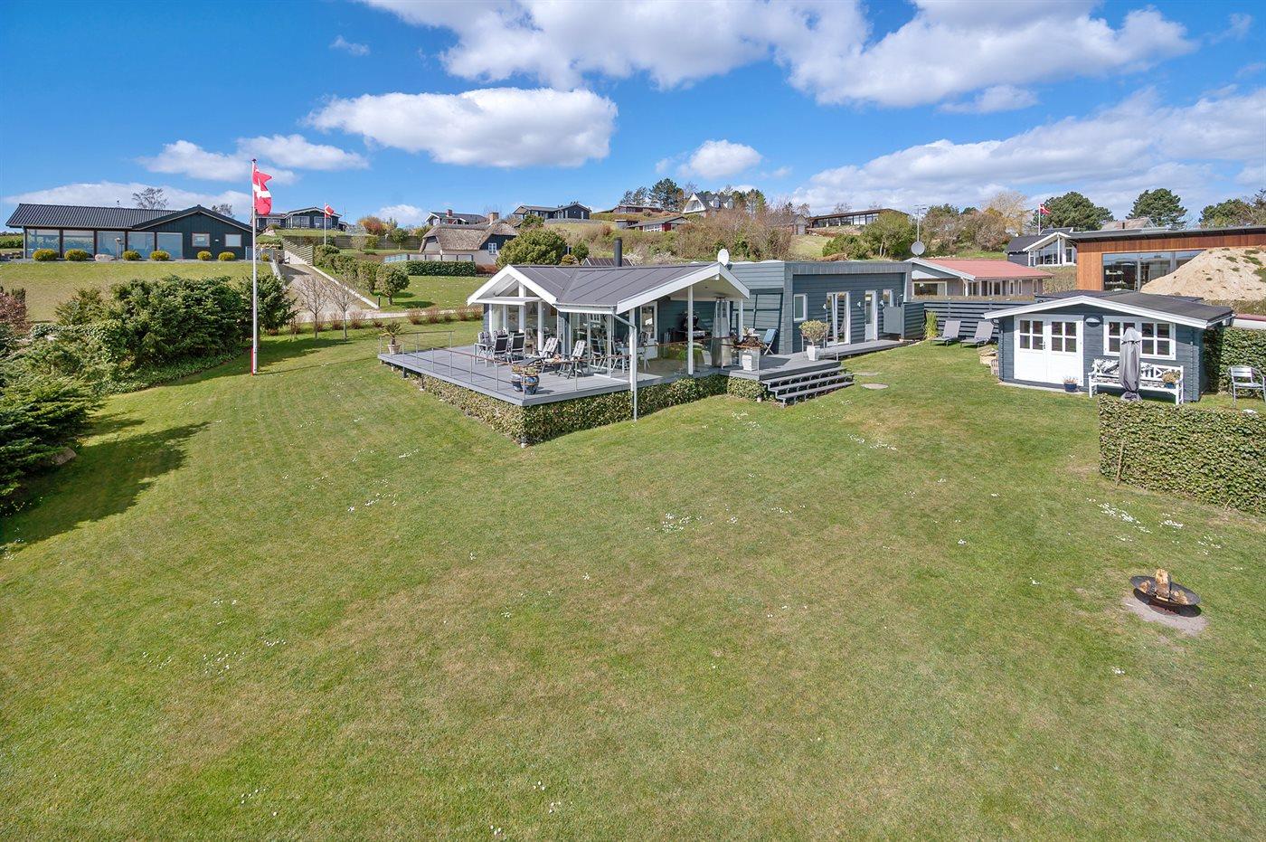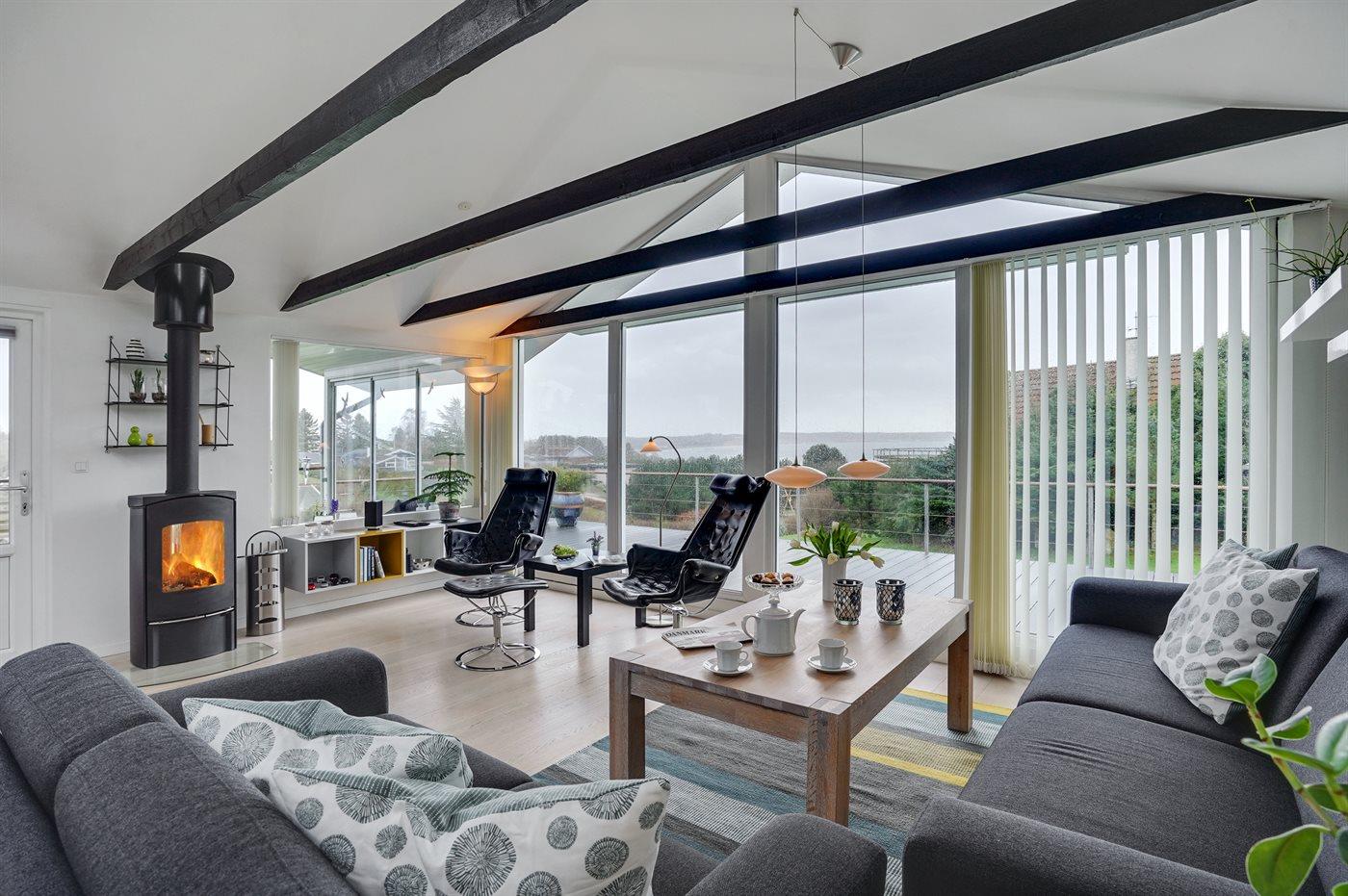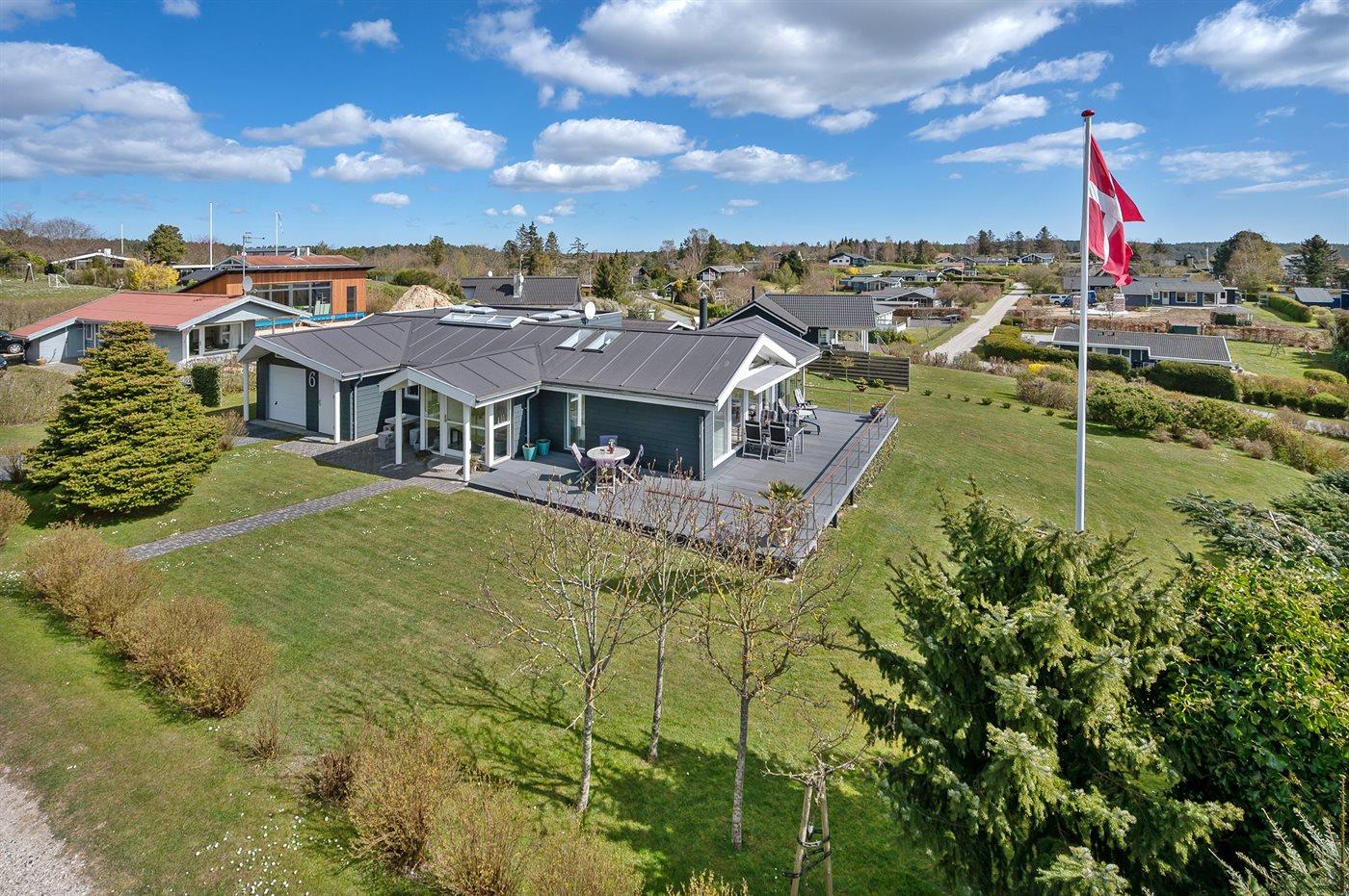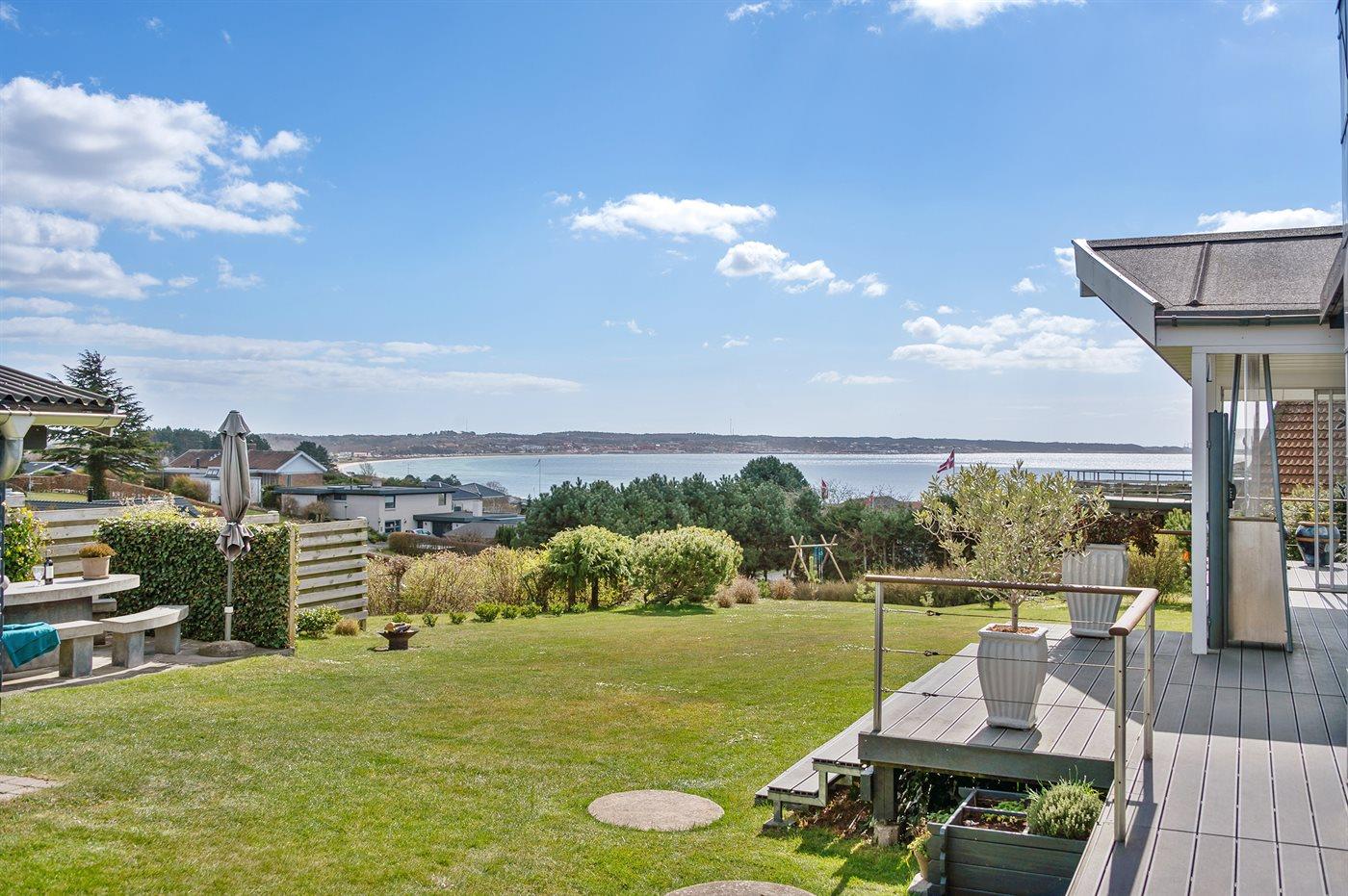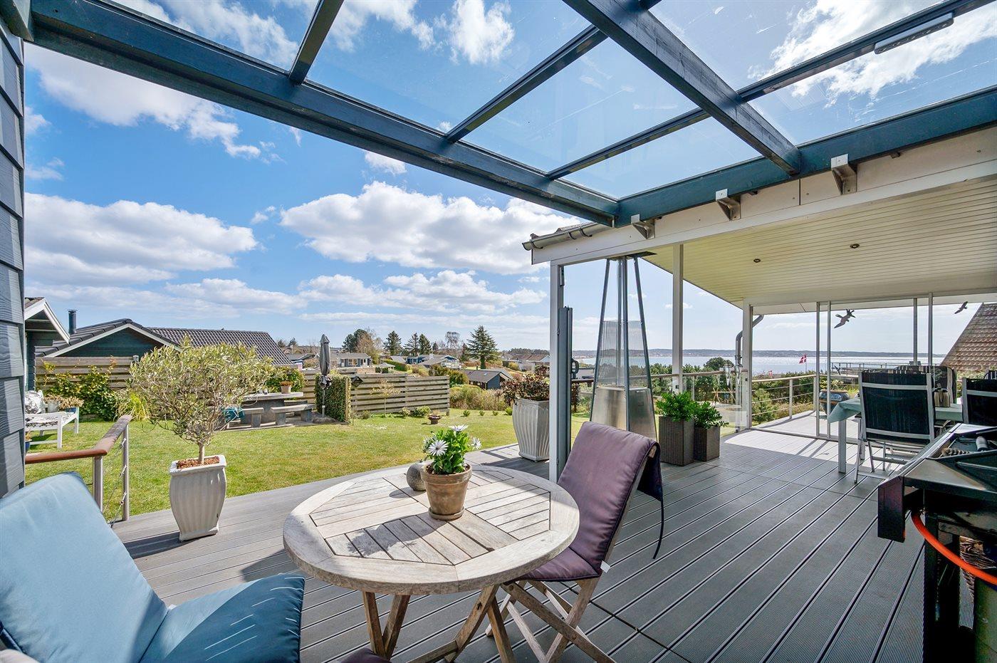 Hübsches und sehr gepflegtes Ferienhaus in fantastischer Lage: Sowohl von Haus, Grundstück als auch von den schönen Terrassen aus haben Sie einen tollen Blick auf das Wasser und das Städtchen Ebeltoft.