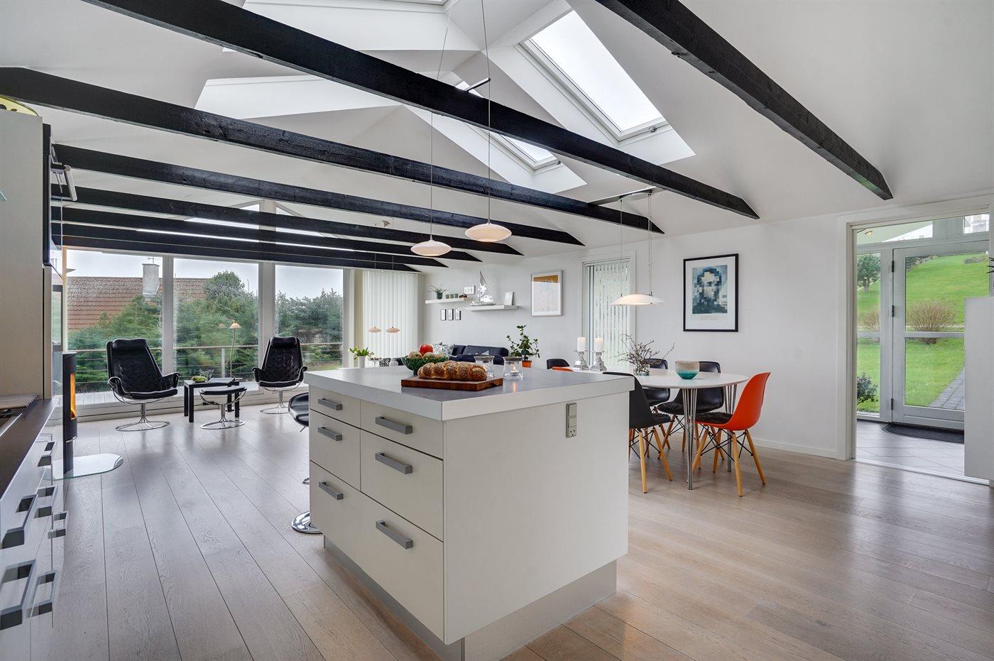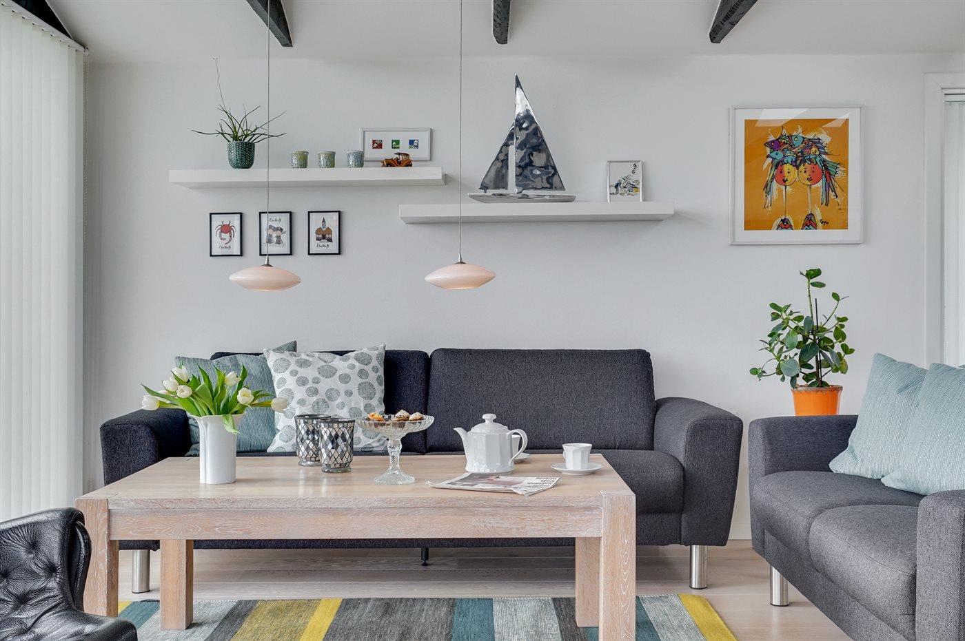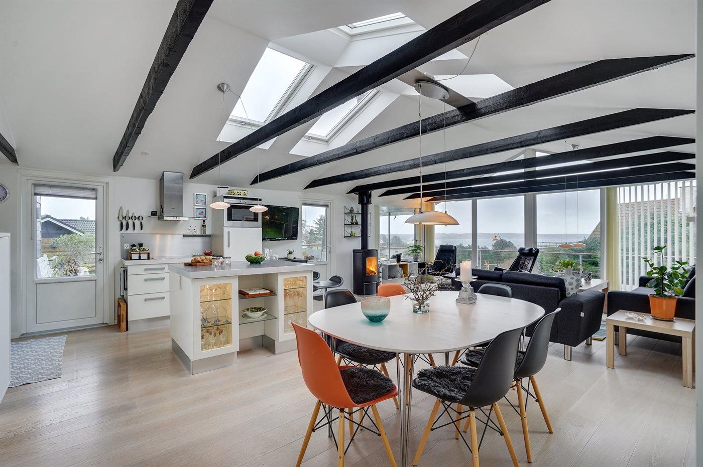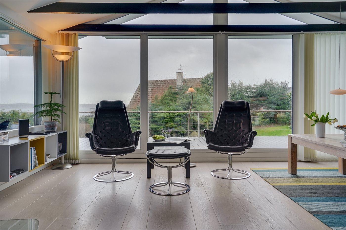 Hübsches und sehr gepflegtes Ferienhaus in fantastischer Lage: Sowohl von Haus, Grundstück als auch von den schönen Terrassen aus haben Sie einen tollen Blick auf das Wasser und das Städtchen Ebeltoft.