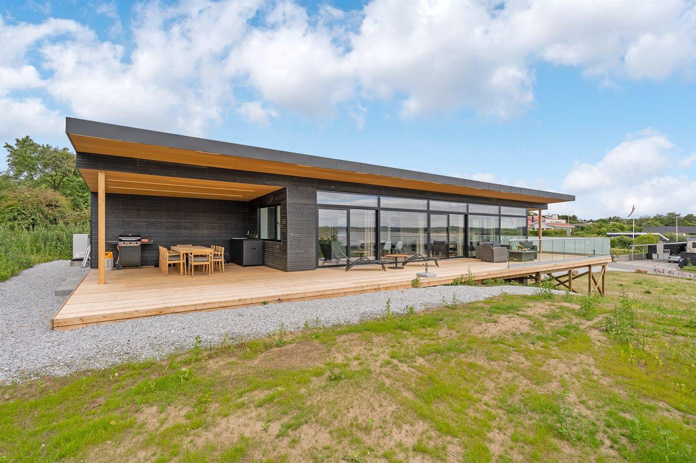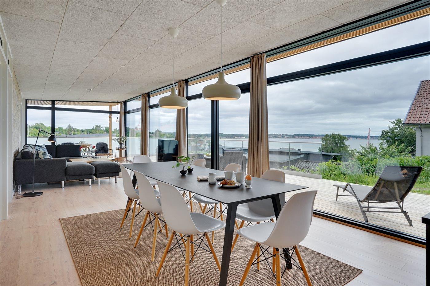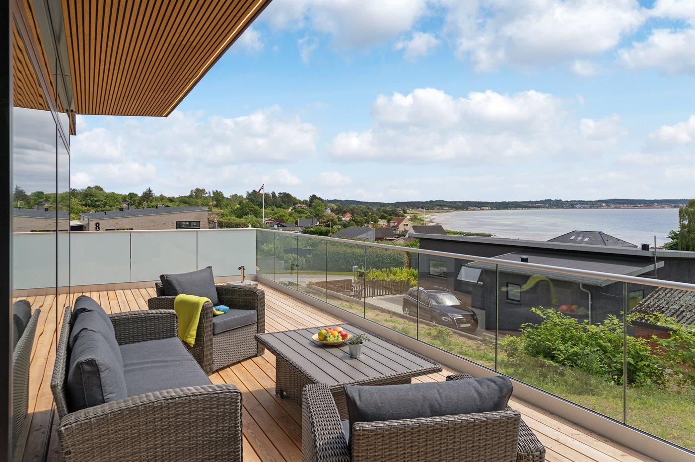 Modernes Ferienhaus in Ebeltoft mit Meerblick, Sauna, großem Garten und Aktivitätsraum für erholsame Urlaubstage.