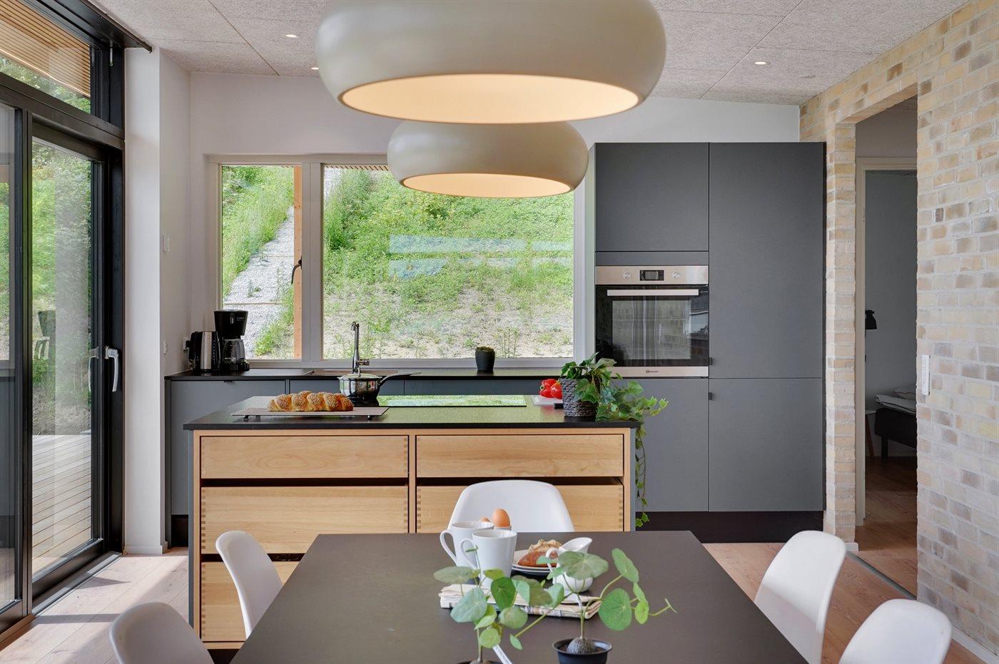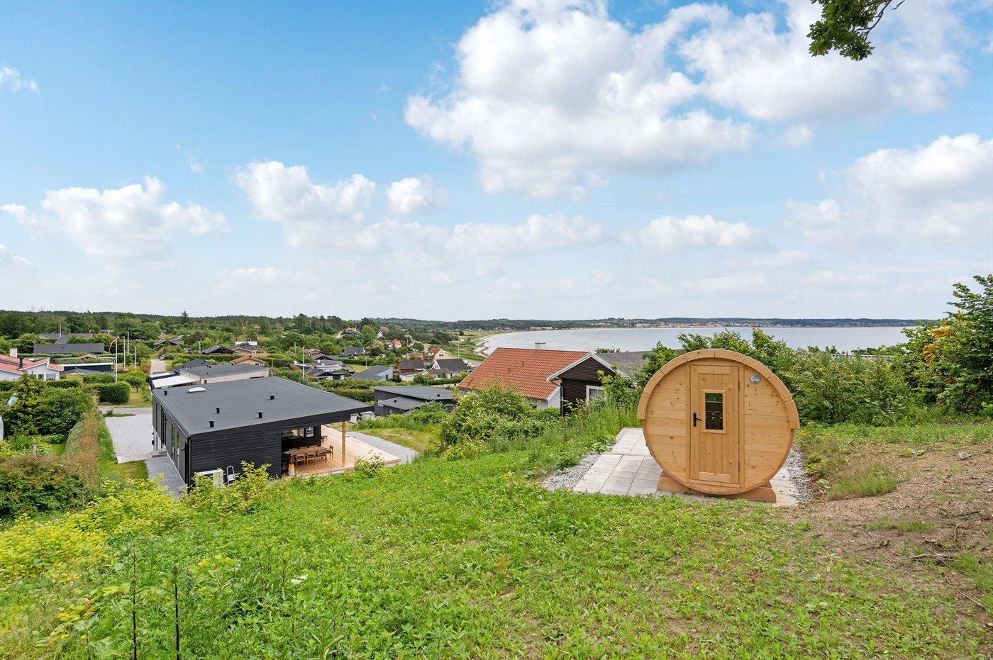 Dieses neu gebaute Ferienhaus (2022) liegt auf einem fantastischen Grundstück mit Blick auf das Wasser und auf die Bucht ” Ebeltoft Vig”. Sie können die Aussicht auch von der Außensauna und von der großen Terrasse aus genießen und die schönen Sommerabende auf der überdachten Terrasse verlängern. Im Inneren des Hauses gibt es ausreichend Platz für die kleine und die große Familie und im Untergeschoss befindet sich ein großer Aktivitätsraum.