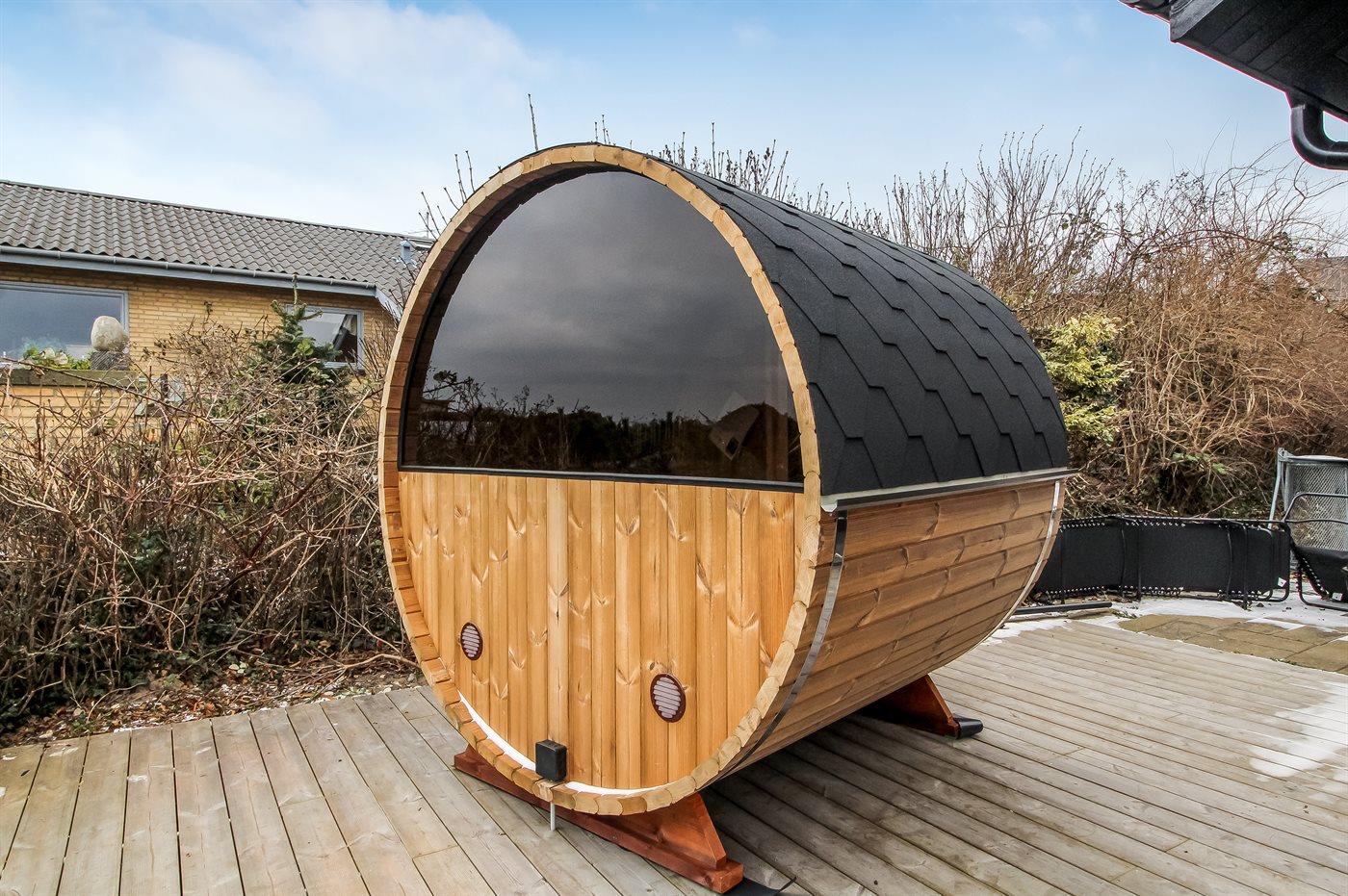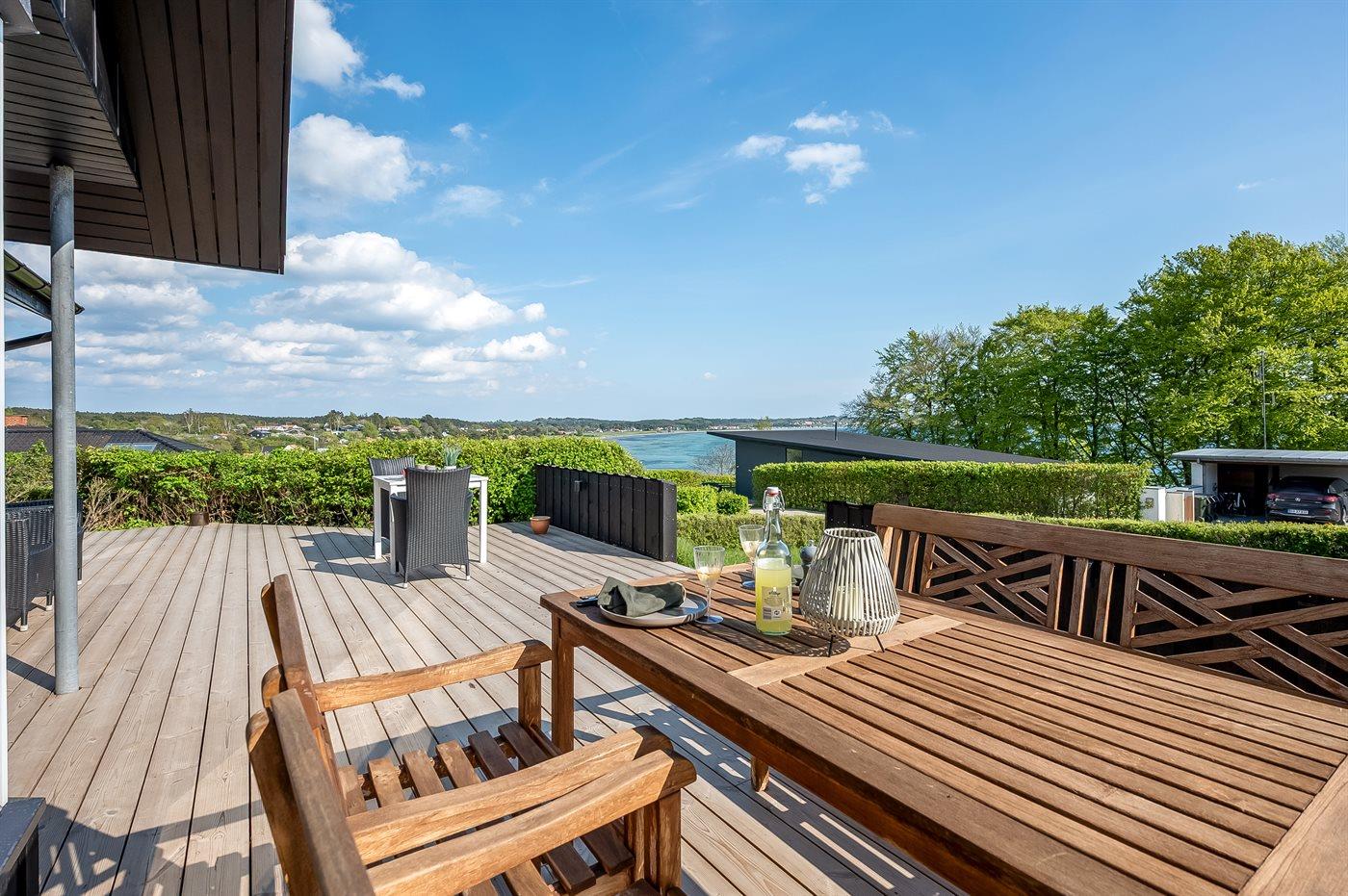Modernes Ferienhaus in Ebeltoft mit Meerblick, Sauna und großem Garten für erholsame Urlaubstage.