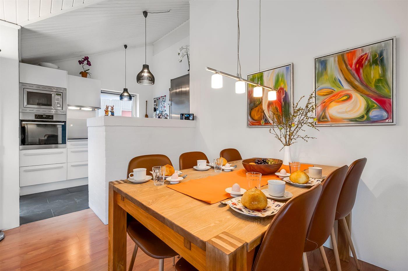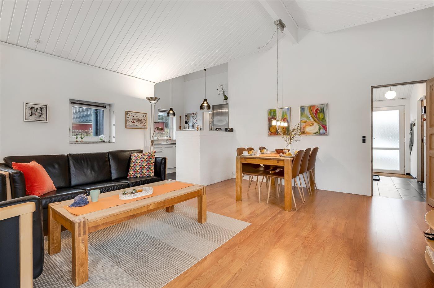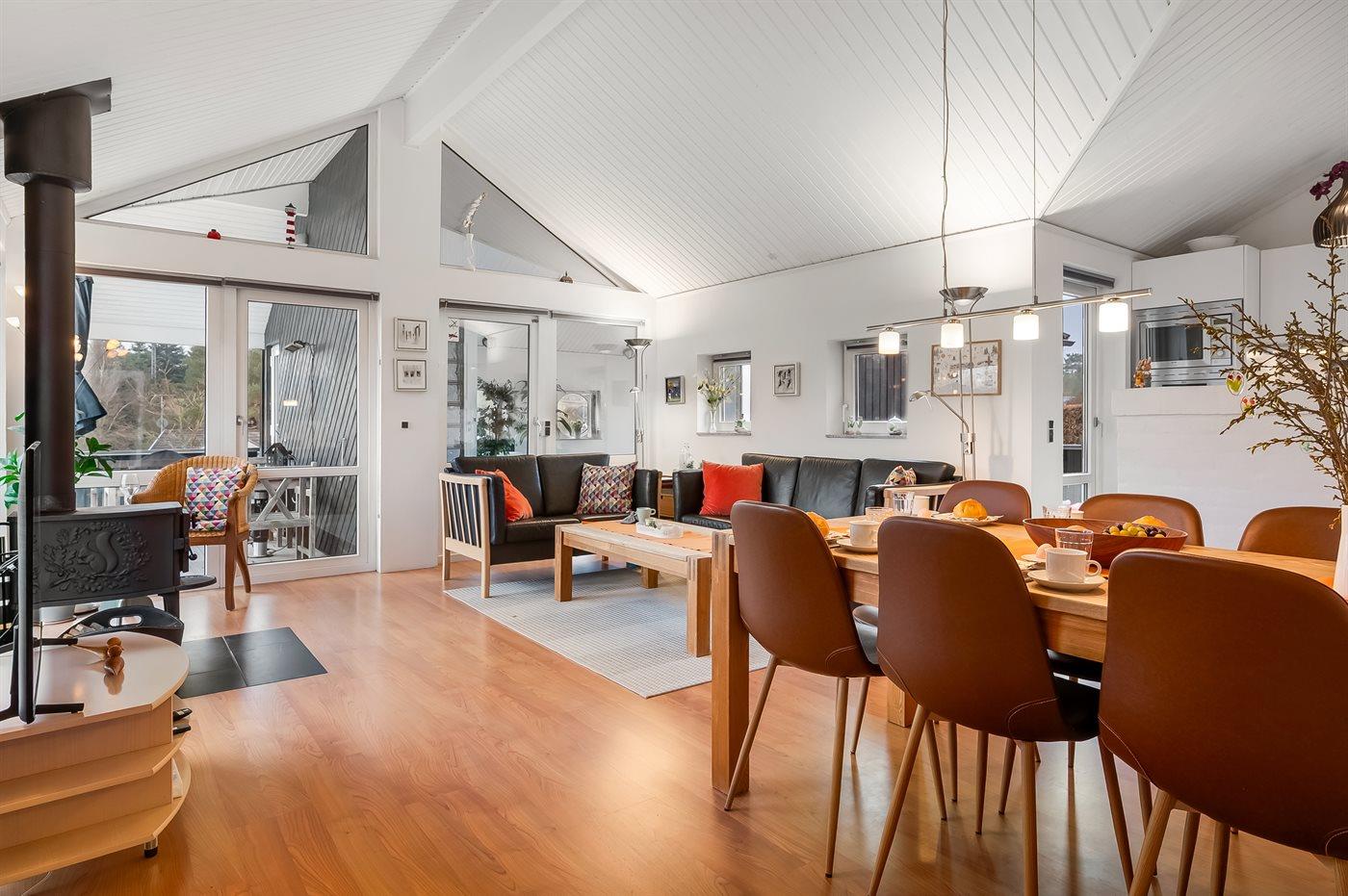 Das Ferienhaus eignet sich für 6 Personen sowie 1 Kleinkind bis zu 3 Jahren. Die Ferienunterkunft hat eine Wohnfläche von 126 m² und wurde 1995 gebaut. 2021 wurde die Ferienunterkunft teilweise renoviert. Haustiere dürfen nicht mitgebracht werden. Die Ferienunterkunft ist mit energiesparender Wärmepumpe ausgestattet. Die Ferienunterkunft ist mit Waschmaschine ausgestattet. Wäschetrockner. Tiefkühlmöglichkeit mit 70 Liter Nutzinhalt. Es gibt außerdem einen Kaminofen. Für die jüngsten Feriengäste sind 2 Kinderhochstühle vorhanden.