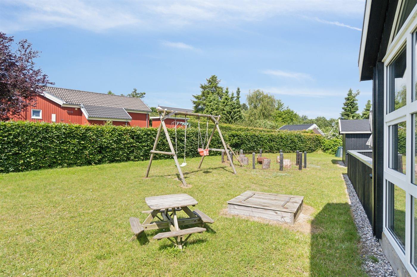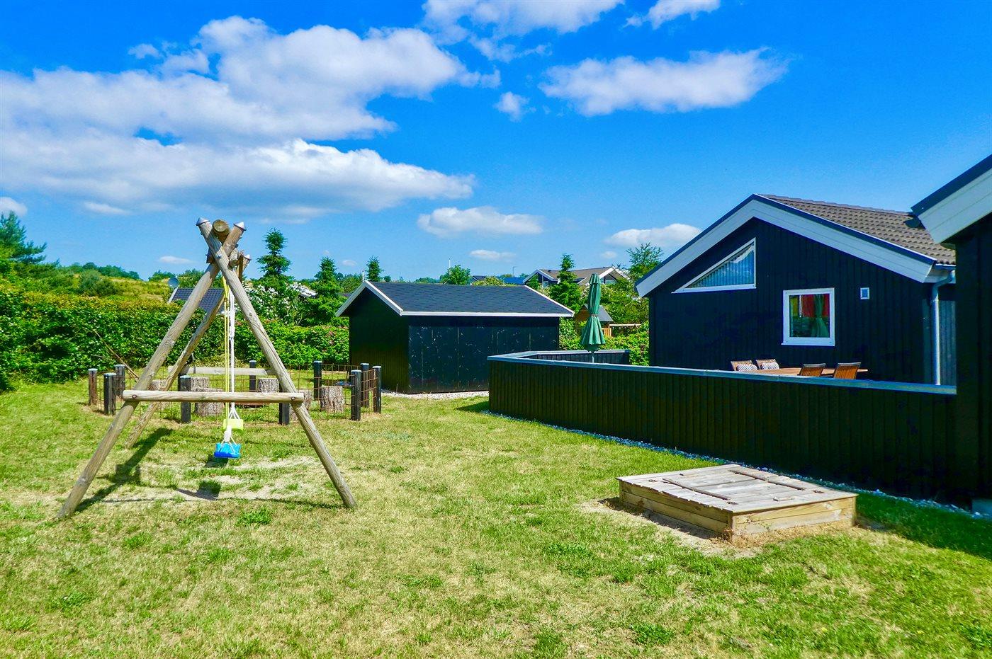 Die Ferienunterkunft liegt auf einem 1272 m² großen Naturgrundstück. Die Entfernung zum Meer beträgt 800 m. Die nächste Einkaufsmöglichkeit liegt 700 m entfernt. Es steht ein 77 m² Terrassenareal zur Verfügung. Außerdem gibt es 20 m² überdachte Terrasse. Schaukel. Sandkasten. Parkplatz auf dem Grundstück.