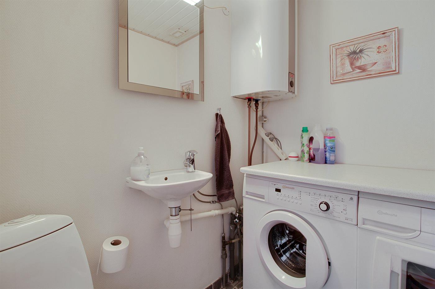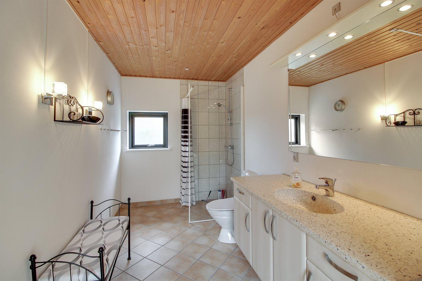 Es gibt 1 Badezimmer mit Duschnische und 2 Toiletten, davon 1 Gästetoilette. Fußbodenheizung in 1 Badezimmer.