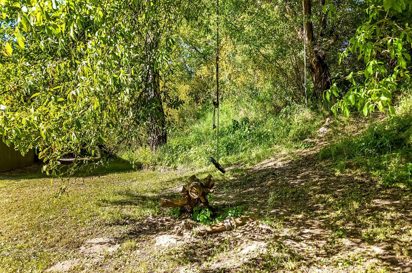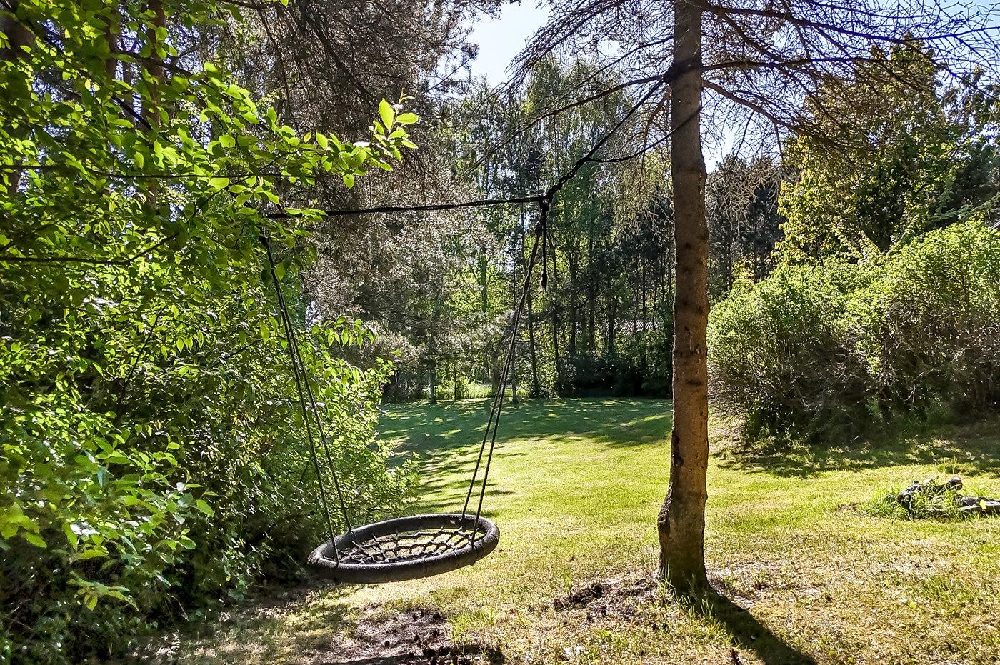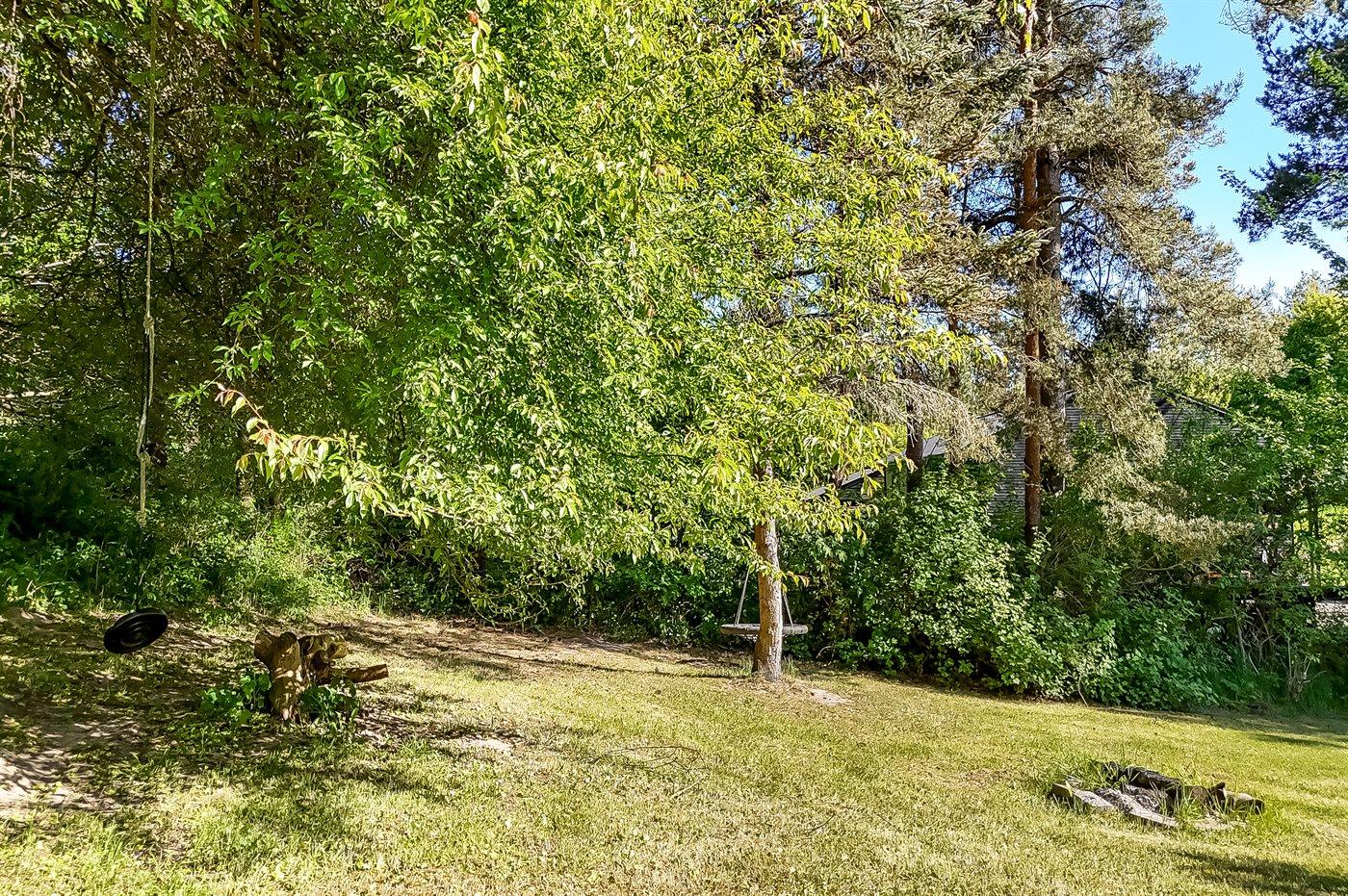 Das Haus verfügt über komfortable Schlafzimmer, und vom gemütlichen Wohnzimmer aus gelangst du direkt auf eine große Terrasse. Dort findest du einen gemauerten Grill – ideal, um köstliche Mahlzeiten zuzubereiten, während die Kinder auf dem leicht schrägenden Rasen spielen, wo auch eine Schaukel für die Kleinsten bereit steht.