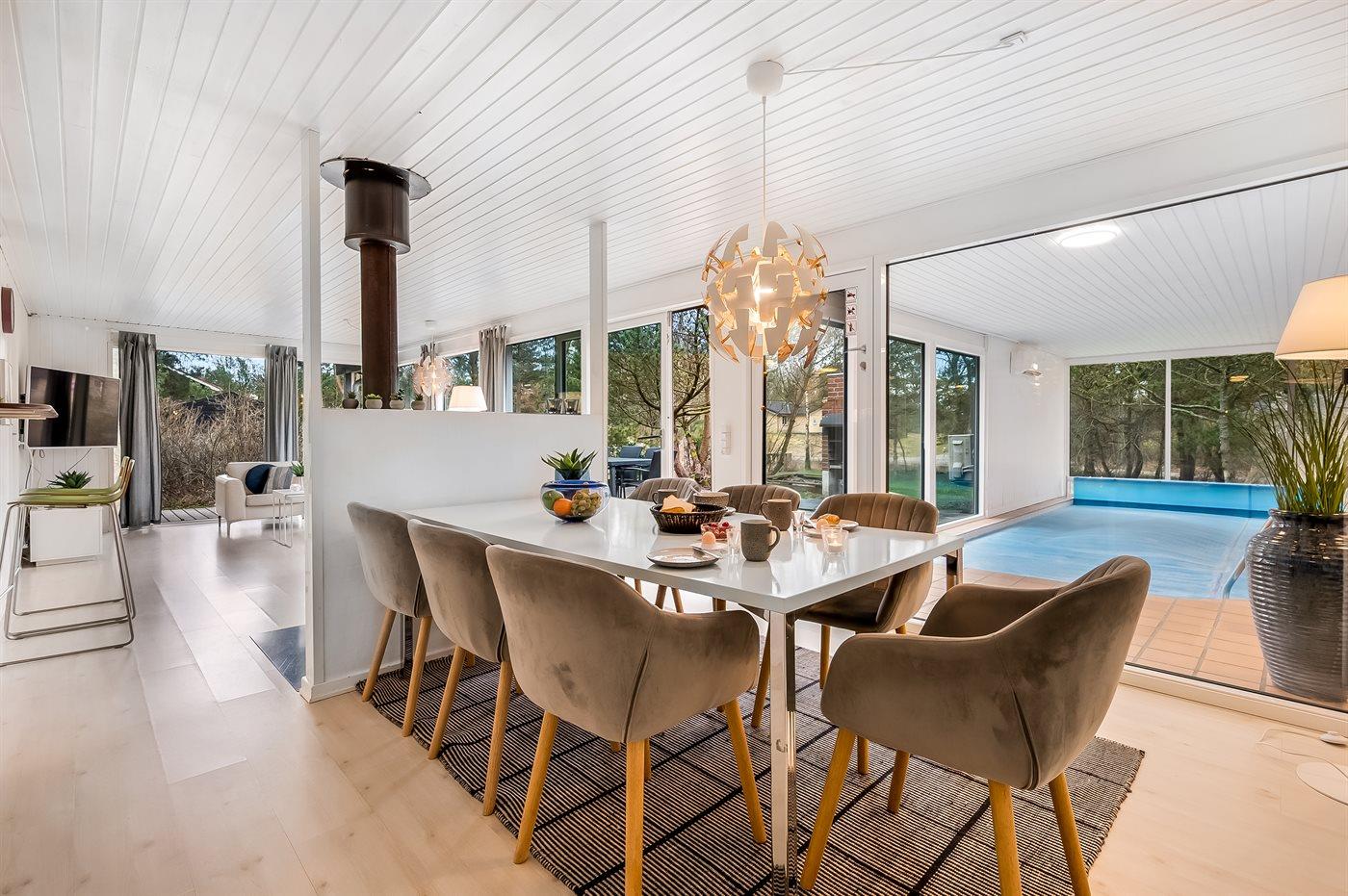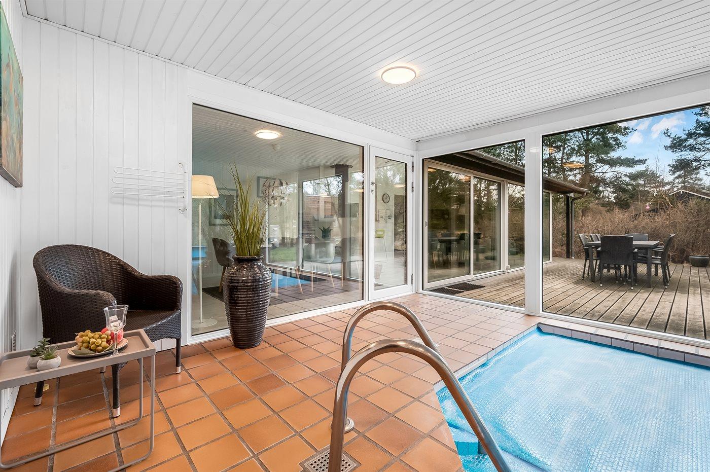Nicht weit von Ebeltoft, direkt am Strand von Handrup, auch als die „Goldküste“ bekannt, liegt dieses schöne Ferienhaus mit einem großen Swimmingpool, Whirlpool und Sauna – perfekt für Entspannung und gemütliche Stunden. Hier kannst du eine Runde im Pool schwimmen oder im warmen Wasser des Whirlpools relaxen.