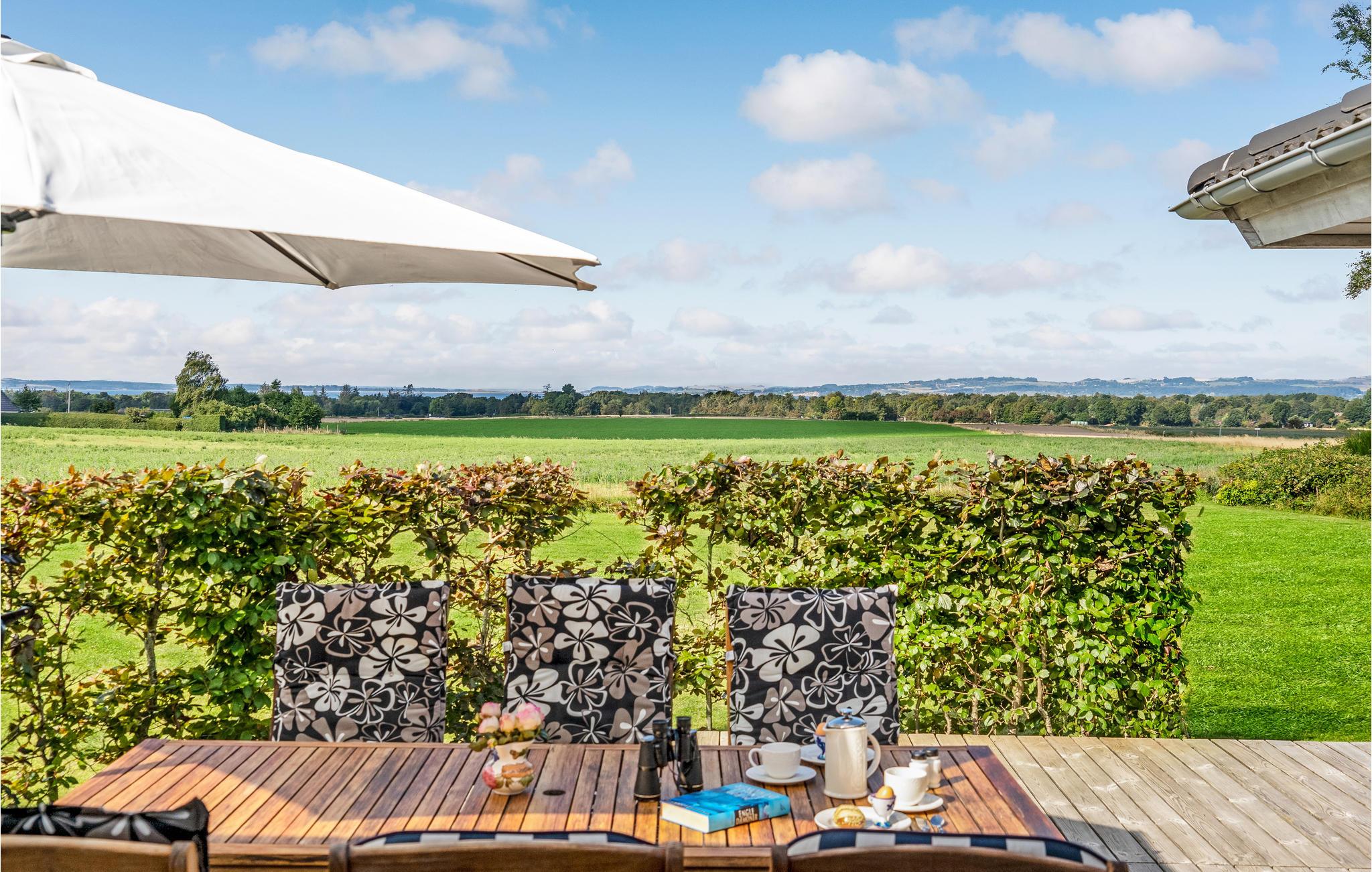 Genießen Sie den Kuchen auf der Terrasse unter dem Sonnenschirm und lassen Sie Ihren Blick über das Meer, die Baumwipfel und die Felder schweifen. Die großzügigen Terrassen und der schöne, große Rasen bieten viel Platz zum Spielen, Toben oder Sonnenbaden.