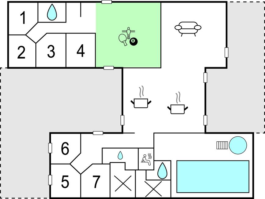 Mit einem Gehabstand nach Ebeltoft, einem angenehm kurzen Fahrabstand zum Strand und seiner Platzierung auf einem großen und friedlichen Naturgrund ist die Lage des Hauses spitze. Es enthält auch alles, was zu einem superguten Urlaub beiträgt. Alle haben hier im Haus Platz und können aktiv sein, im Swimmingpool, dem großen Whirlpool und auch in der Sauna. Auch Paltz und Ruhe für die Urlaubslektüre finden Sie. Musik und Film genießen Sie im schön eingerichteten Wohnzimmer. Sie wohnen hier im Zentrum von vielen Attraktikonen: Glaskunst in Weltklasse, Fregatte Jylland, gepflasterte Gassen, kleine Geschäfte, Cafés und Gourmetrestaurants. In allen Richtung breitet sich mit dem Nationalpark Mols Bjerge ein riesiges Naturgebiet aus.