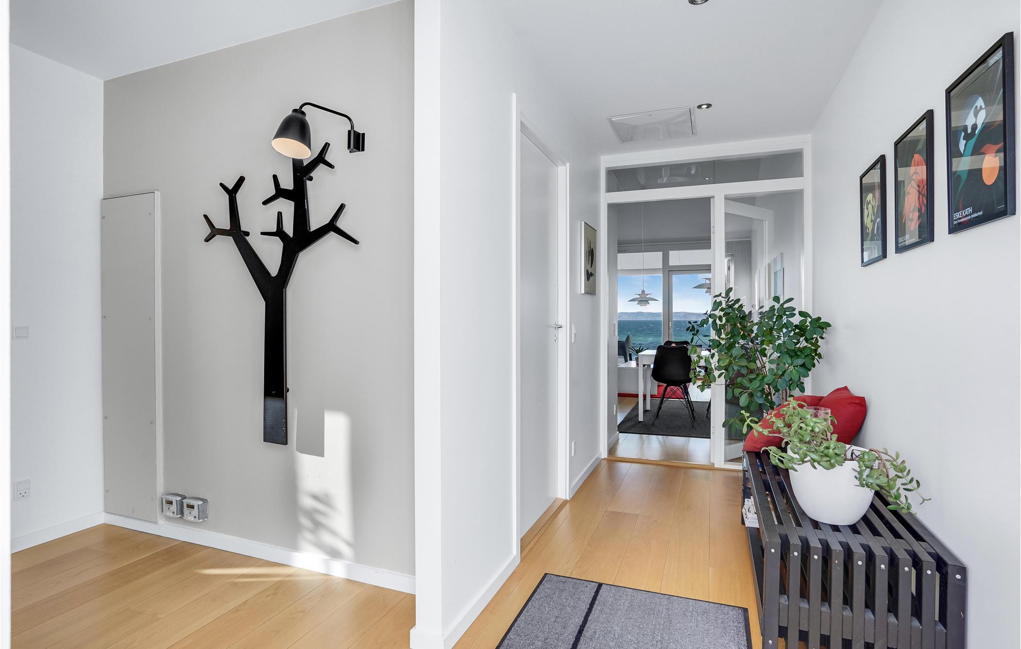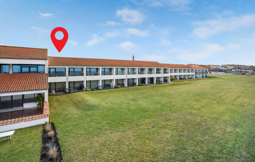 Genießen Sie eine luxuriöse Ferienwohnung direkt am Wasser mit Panoramablick auf die Bucht von Ebeltoft.