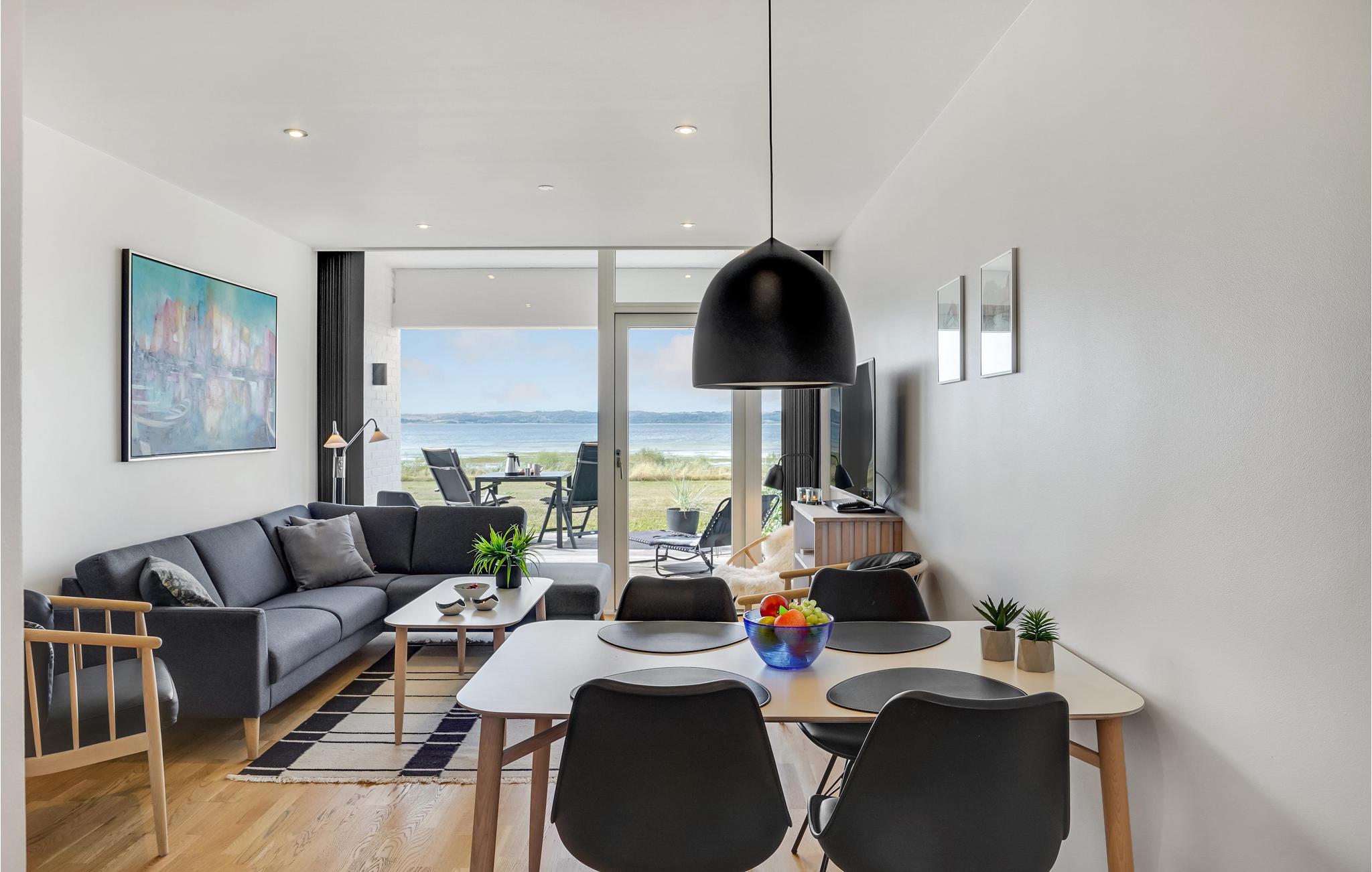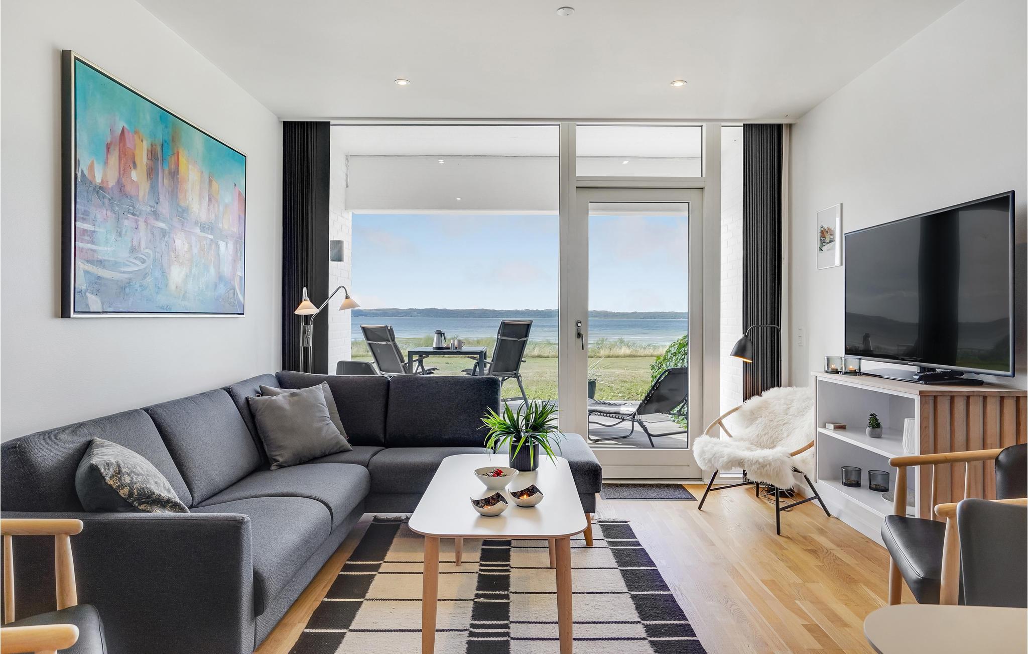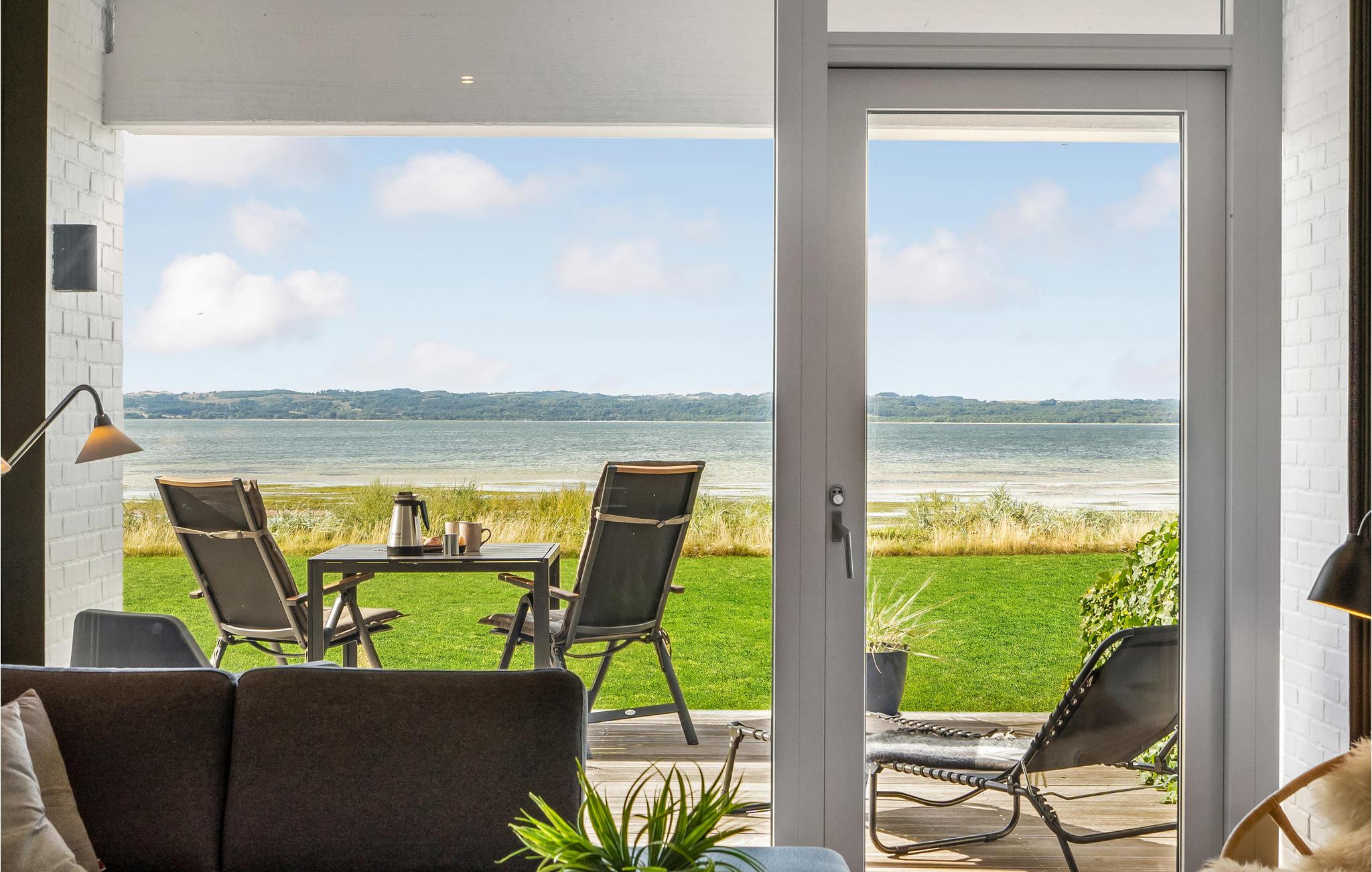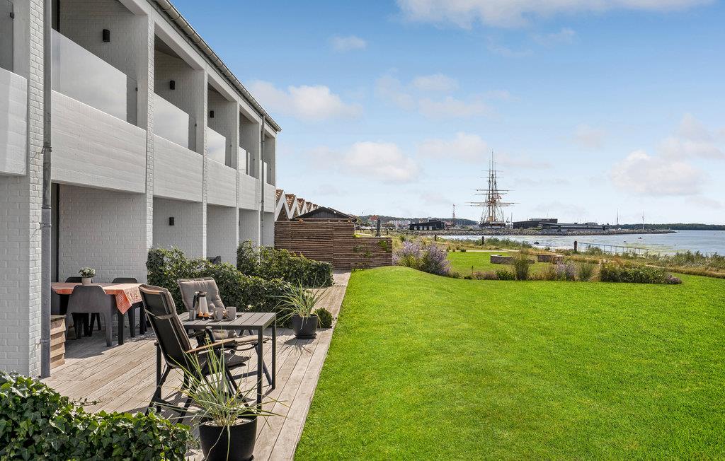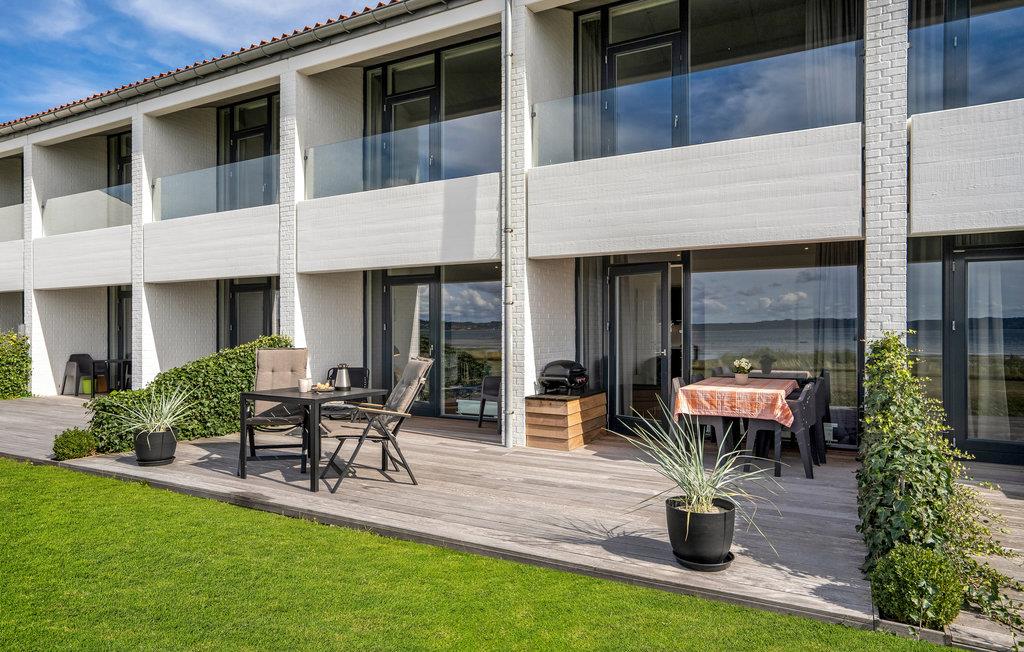 Moderne Ferienwohnung direkt am Wasser mit Terrasse und Meerblick in Ebeltoft, ideal für entspannten Familienurlaub.