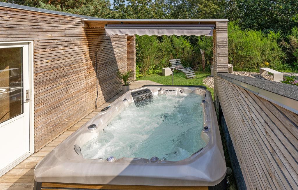 Mit der gemütlichen Innenstadt Ebeltoft und der Golfanlage in fußläufiger Entfernung liegt dieses Ferienhaus ideal für einen ruhigen Urlaub in einer populären Lage. Das Haus ist auf einen Naturgrundstück errichtet, das mehrere sonnenreiche Terrassen auf verschiedenen Niveaus zu bieten hat. Es gibt auch einen Wellnessbereich mit einem Jacuzzi für acht Personen, Sauna und eine Außendusche.