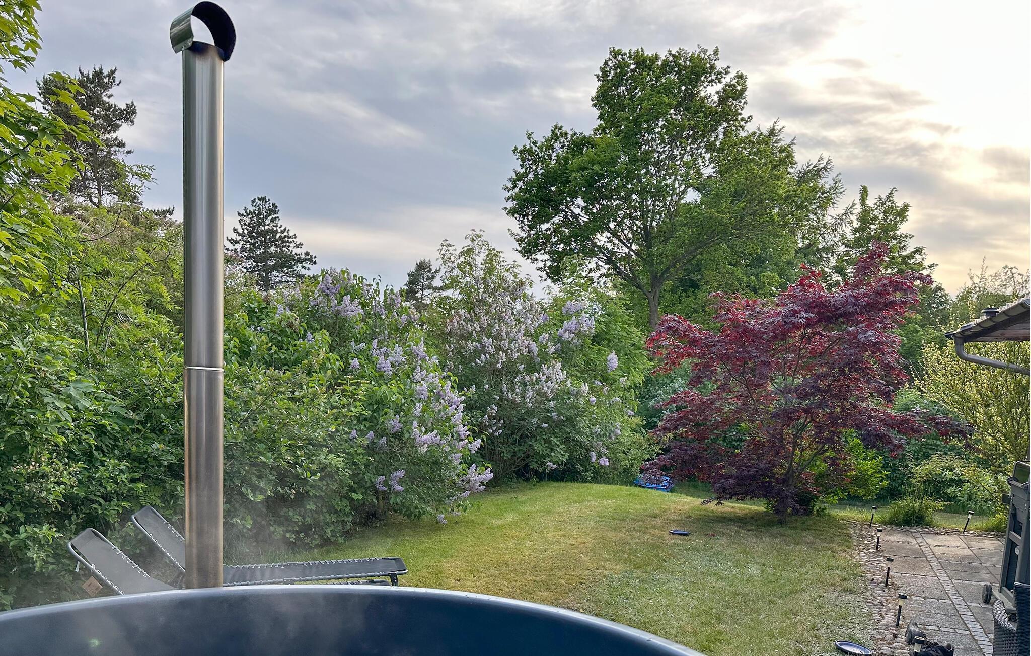 Willkommen im gemütlichen Ferienhaus in Ebeltoft mit finnischem Holzbad und großzügiger Terrasse für erholsame Urlaubstage.