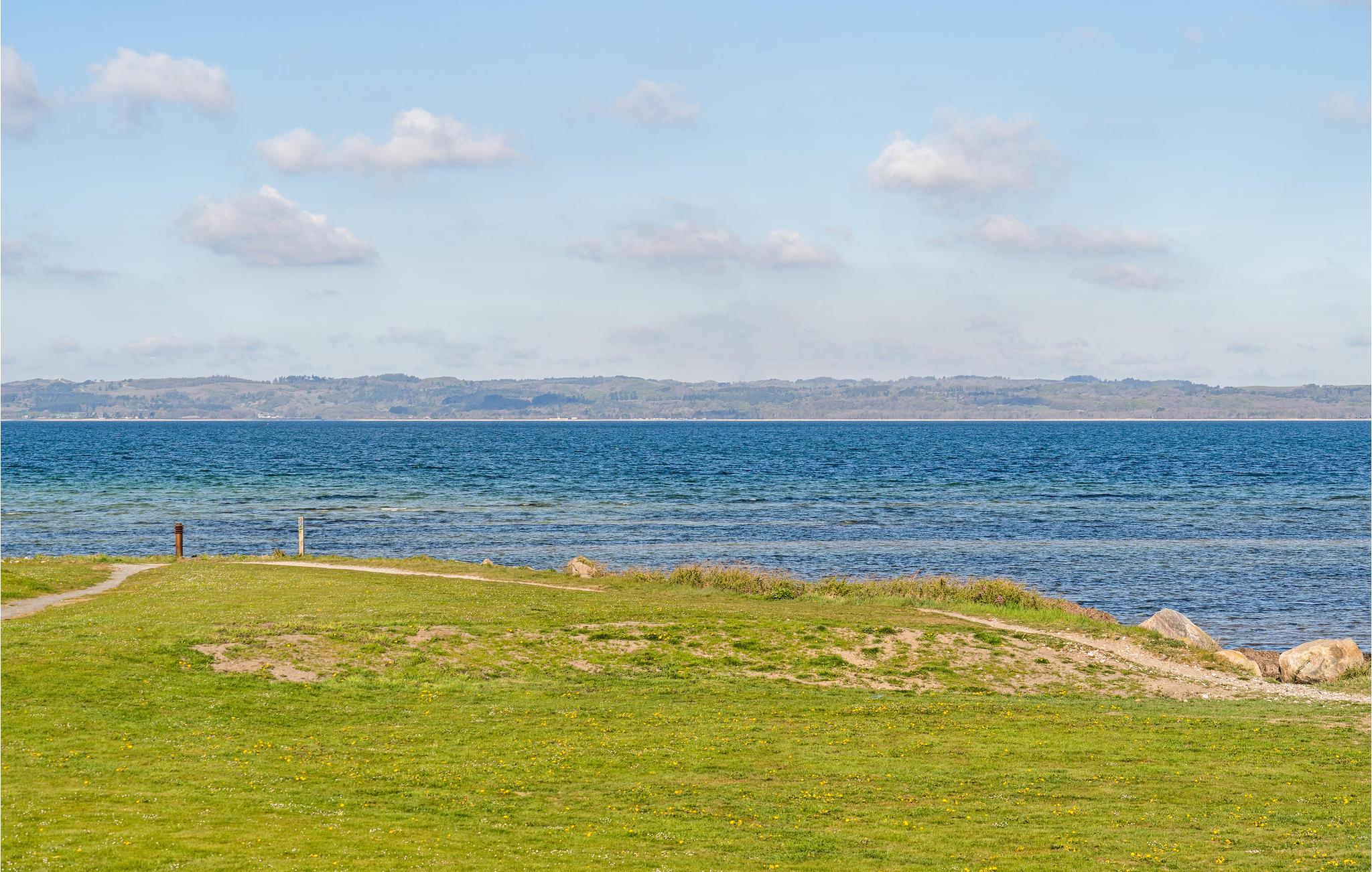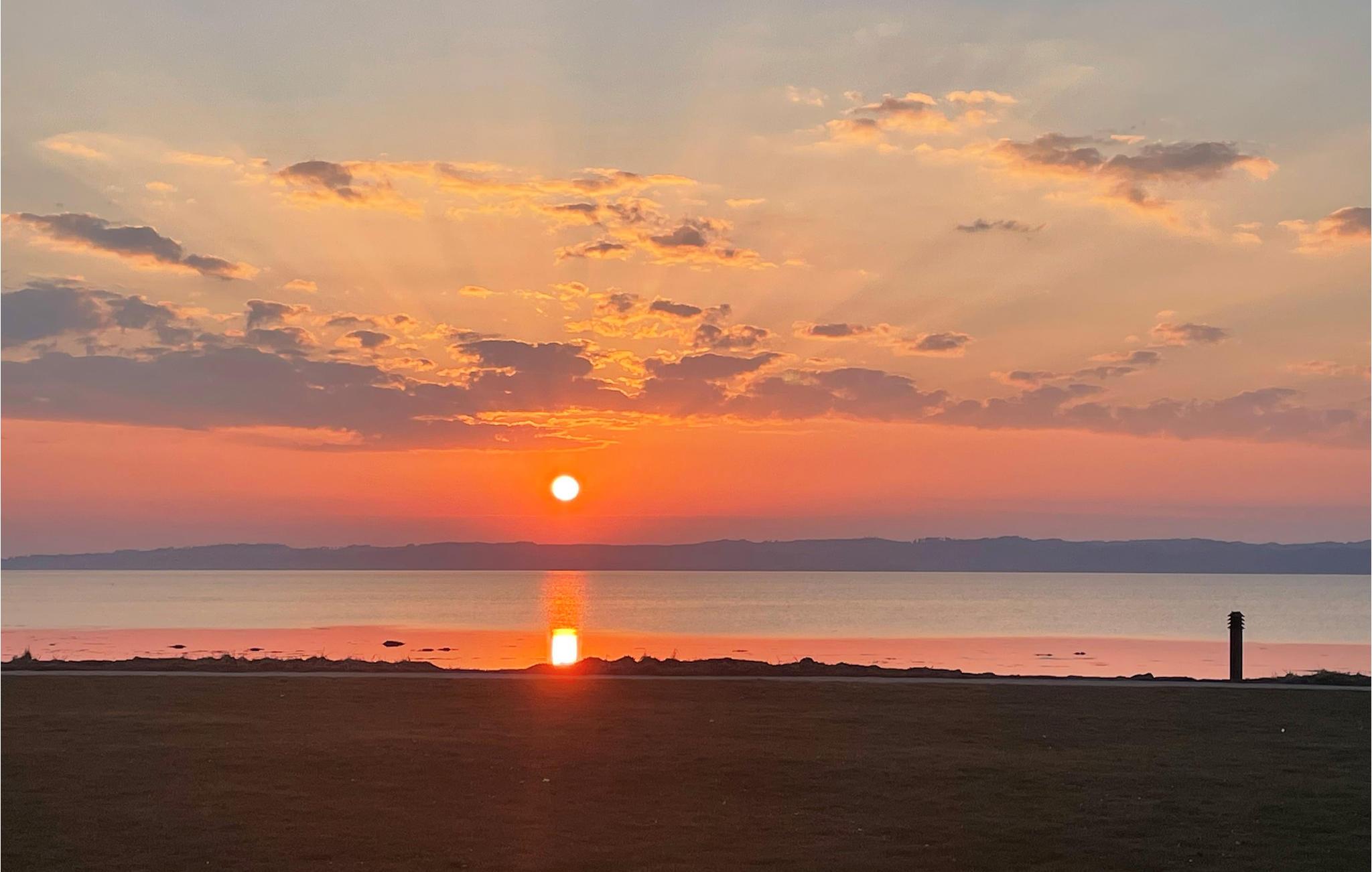 Genießen Sie den fantastischen Sonnenuntergang von dieser Ferienwohnung in der ersten Reihe zum Wasser und mit Panoramablick auf Ebeltoft Vig.