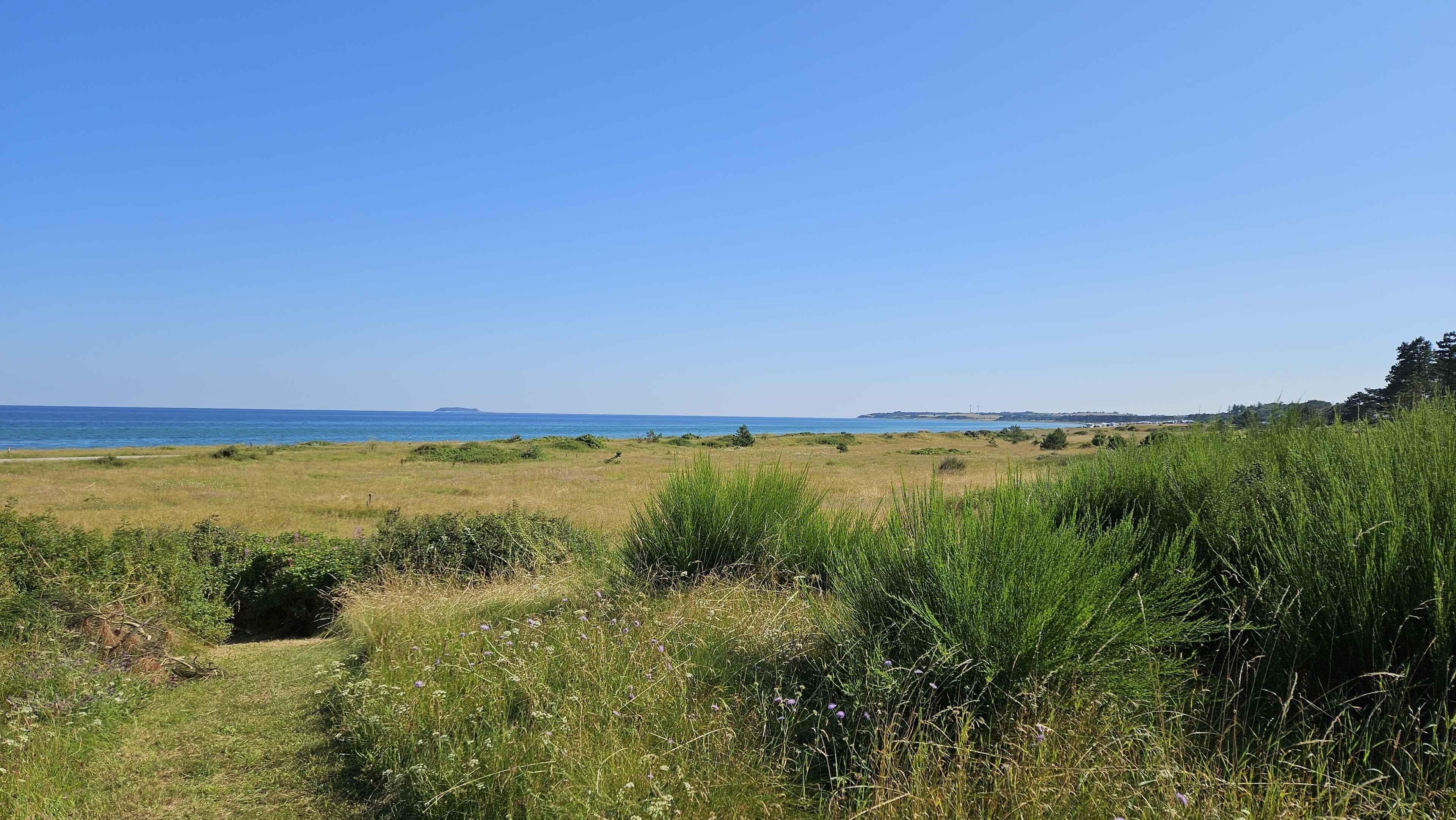 Gemütliches Ferienhaus für Familien, 78 m², Platz für 6 Personen. 180° Meerblick, direkter Strandzugang, 3 Schlafzimmer + Anbau, Terrasse, Naturgrundstück, Kaminofen, Wärmepumpe, Außendusche. Haustiere erlaubt. 5 km bis Ebeltoft.