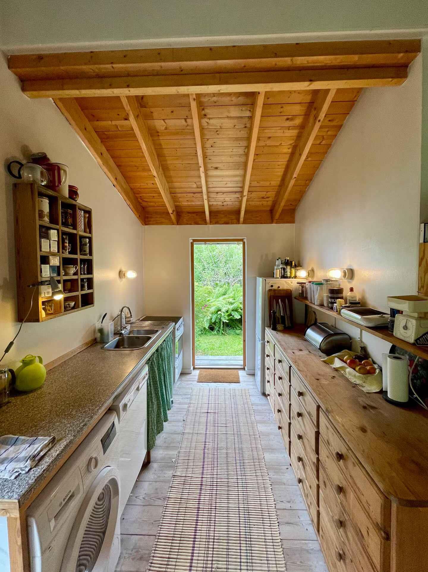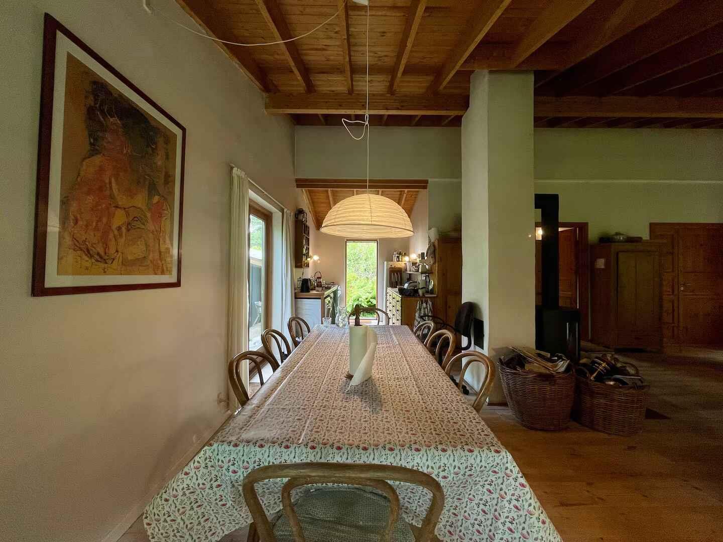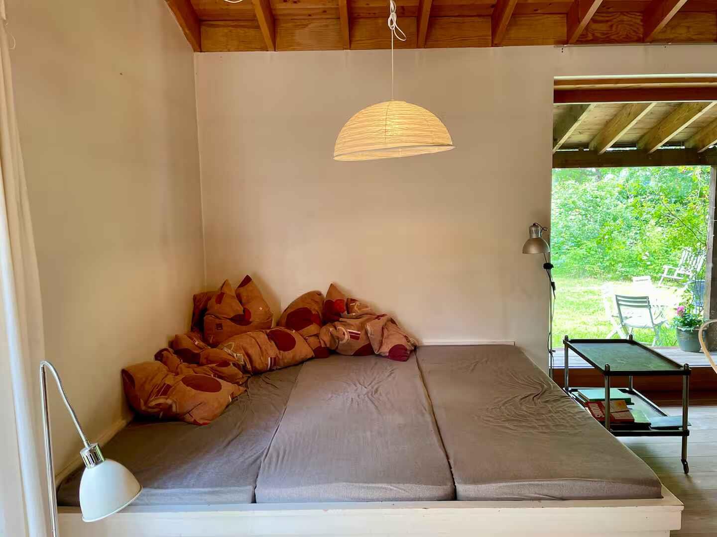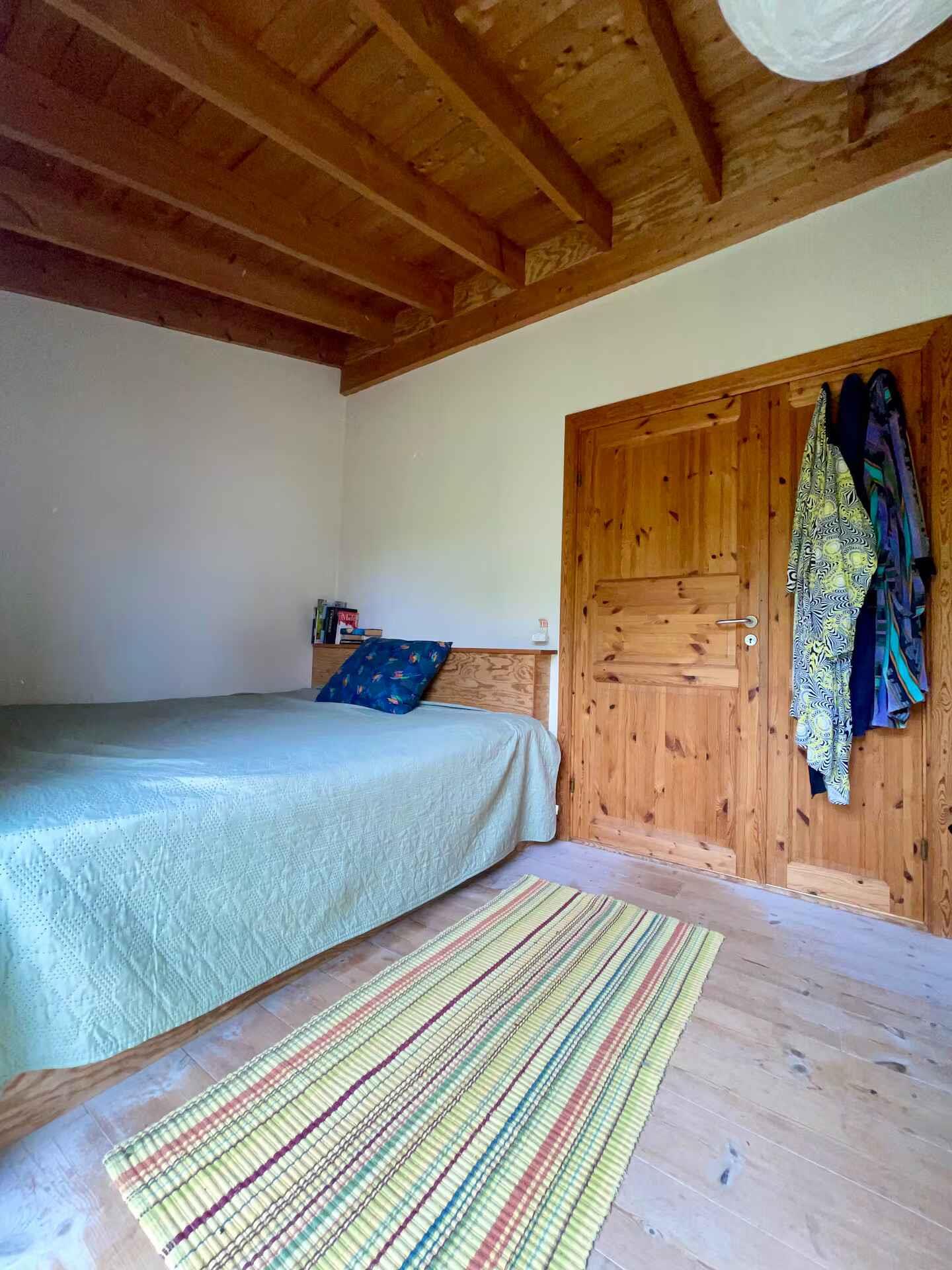 Hier erwartet Sie ein Ferienhaus mit einer langen Familiengeschichte. Das Grundstück ist seit den 1930er-Jahren Schauplatz von Erinnerungen, und viele Gäste beschreiben, wie sich die Ruhe bereits im Moment des Eintretens einstellt. Es bietet Raum, eigene Momente zu schaffen – große wie kleine. Das 95 m² große Haus wurde 1997 vom Architekten Steen Andersen entworfen und gebaut. Die Konstruktion aus Lärchenholz und Leinöl sorgt für ein natürliches und angenehmes Raumklima, das Nähe und Einfachheit fördert. Der hohe Wohnraum bringt alle beim Kochen, Spielen und bei Gesprächen zusammen. In der Mitte des Raumes bildet der Kaminofen einen warmen Treffpunkt, während ein großes Daybed am anderen Ende zum Entspannen, Spielen und zu ruhigen Momenten einlädt. Das Schlafzimmer im Haupthaus verfügt über ein Doppelbett und einen Arbeitsplatz. Im Annex befinden sich zwei weitere Zimmer, sodass das Haus insgesamt drei Schlafzimmer und sechs Schlafplätze bietet. Große Glasschiebetüren öffnen sich zu einer überdachten Terrasse und einem halbwilden Garten, der den Geist des Hauses widerspiegelt. Auf der Rückseite bietet eine breite Treppe einen gemütlichen Platz für den Morgenkaffee, während Feuerstelle, Grillmöglichkeiten und kleine windgeschützte Ecken das Leben im Freien erweitern. Außerdem stehen Gartenspielzeug, zwei Paddleboards sowie die Möglichkeit zum Bogenschießen für erfahrene Nutzer zur Verfügung, sodass sich die Tage ganz nach Lust und Wetter gestalten lassen. Die Umgebung ist etwas ganz Besonderes. Das Haus liegt im Herzen von Mols zwischen Hügeln und Strand, wo sich die Landschaft zwischen Küste, offenen Heideflächen und sanften Hügeln mit weitem Ausblick abwechselt. Es gibt Wanderwege, gute Fahrradrouten, kleine Buchten zum Baden und ruhige Gewässer zum Paddleboarden. Das stimmungsvolle Stadtleben von Ebeltoft, das Glasmuseum und der gemütliche Hafen sind ganz in der Nähe, und die Natur macht es leicht, vollkommen abzuschalten. Gönnen Sie sich die Gelegenheit, die Ruhe zu spüren und neue Erinnerungen in diesem seelenvollen Ferienhaus zu schaffen.