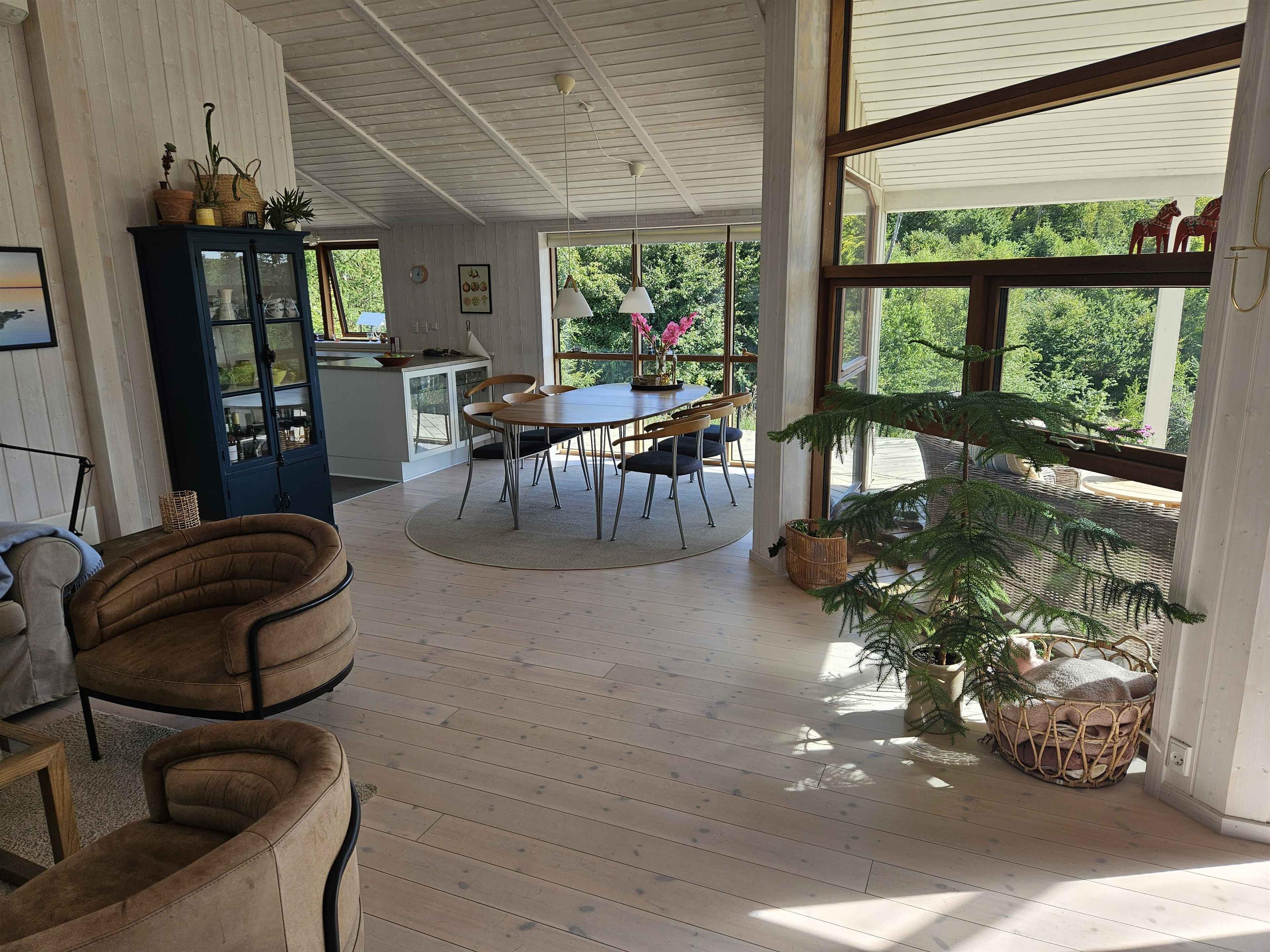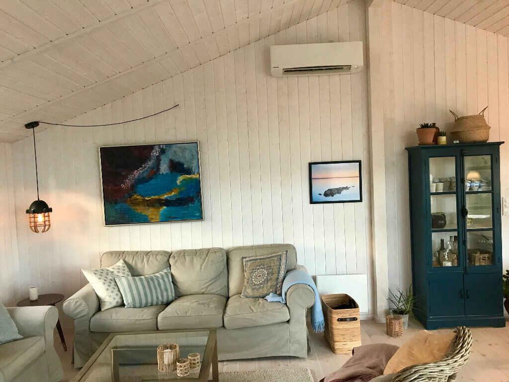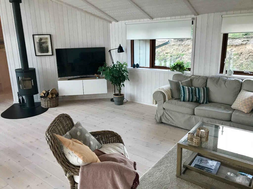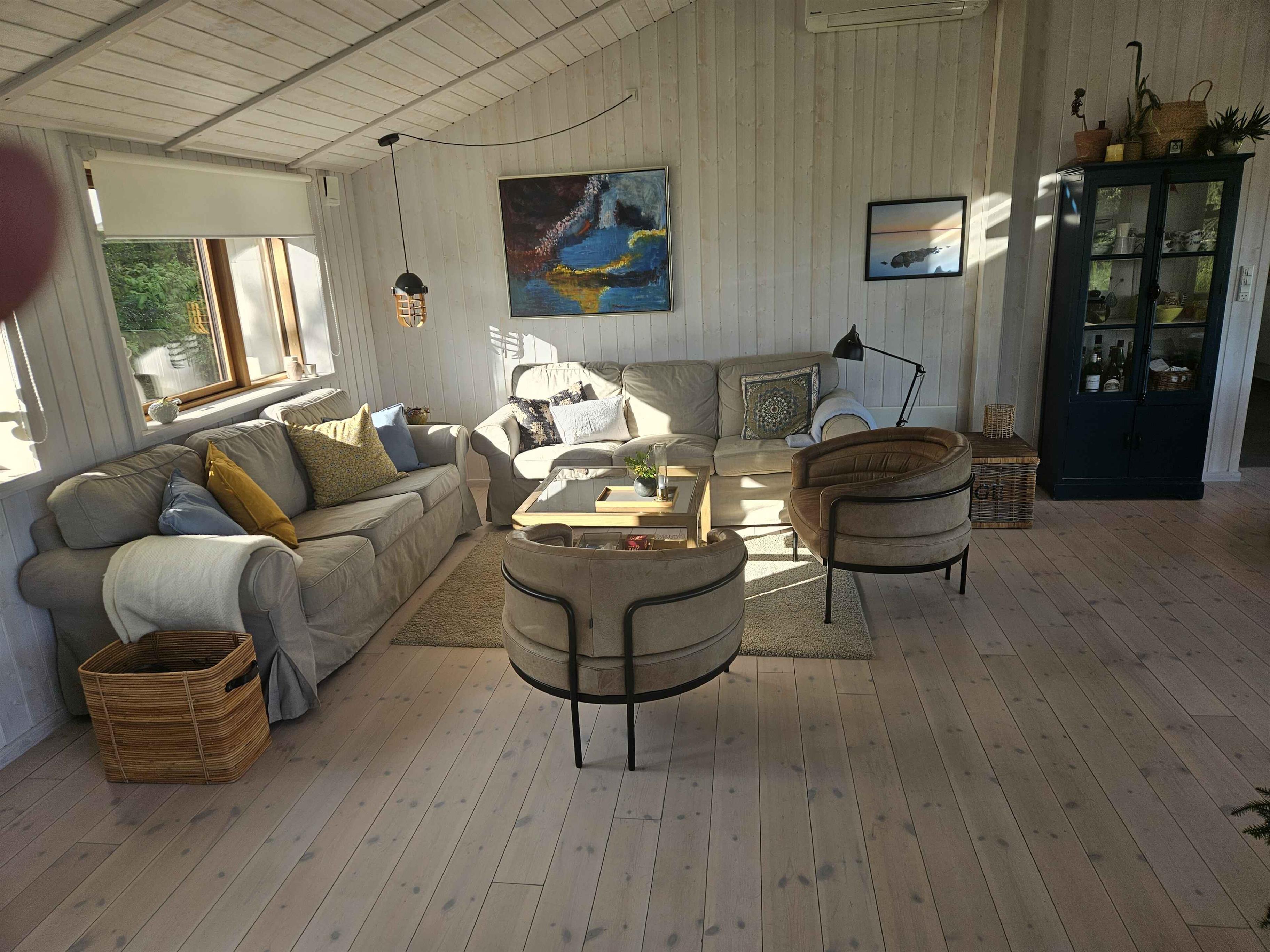 Femmøller / Ebeltoft - fantastisches Ferienhaus, hoch gelegen mit einzigartiger Aussicht, Spa für 2 Personen, Internet, Aktivitätsraum mit u.a. Tischtennis und Darts etc. Neueres Ferienhaus (2018) mit besonders hoher Lage und einzigartiger Aussicht. Das Haus liegt in Femmøller / Mols Bjerge und bietet Platz für 8 Personen. Hier befinden sich ein schönes, großes und gut ausgestattetes Wohnzimmer, in dem Sie ein Holzofen finden. Es gibt TV mit dänischen und internationalen Sendern sowie Internet.. Das Haus hat drei Doppelzimmer mit einem Doppelbett, ein Aktivitätsraum mit einem Schlafsofa für 2 Personen und ein großes Loft mit Matratzen für 2 Personen. Hier können sich kleinere Kinder austoben. Es gibt 2 Badezimmer, von denen eines mit einem köstlichen Spa für 2 Personen ausgestattet ist. Darüber hinaus gibt es eine Außendusche, wenn Sie die frische Luft in Kombination mit Ihrer Dusche genießen möchten.Es gibt auch eine Waschmaschine. Die schöne, offene Küche steht in Verbindung mit dem grossen Wohnzimmer und ist komplett mit Spülmaschine etc. ausgestattet. Das Haus ist ca. 146 m2 und ist fußbodengeheizt sowie mit Wärmepumpe ausgestattet. Im Aktivitätsraum gibt es sowohl Tischtennis als auch Bob und Darts und auch eine PlayStation5 und einen Fernseher. Es gibt mehrere Terrassen, auf denen Sie sitzen und sich entspannen und die einzigartige Aussicht genießen können. Natürlich gibt es auch Grill und Gartenmöbel. Das Haus befindet sich inmitten einer einzigartigen Natur - nicht weit von Ebeltoft, Fregatten Jylland und Djurs Sommerland - und ist komplett ausgestattet für den perfekten Urlaub. Wanderweg Mols Bjerge-stien: Der Mols Bjerge Weg ist ein 60 km langer Wanderweg der besten Klasse. Er wurde nach den internationalen Kriterien der European Ramblers Association (ERA) ausgeführt und wird derzeit von der ERA als Leading Quality Trail zertifiziert. Der Weg, der den Wanderer durch einen großen Teil des Nationalparks Mols Bjerge führt, ist mit weißer Schrift auf grünen Schildern in der Landschaft markiert. Er ist in drei Tagesetappen unterteilt, jeweils ca. 20 km: Die Kalø-Etappe, die Berg-Etappe und die Ebeltoft-Etappe. Der Weg ist mit der Buslinie 123 verbunden, so dass es leicht ist, zum Ausgangspunkt zurückzukehren. Der Nationalpark Mols Bjerge streckt sich über ein Gebiet von 180 km2, davon 30 km2 Meer. Der Park hat eine einzigartige Eiszeitlandschaft mit ca. 80 km Küste, seltenen Lebensräumen und interessanter Kulturgeschichte.