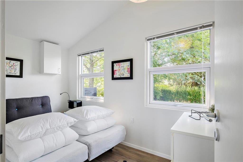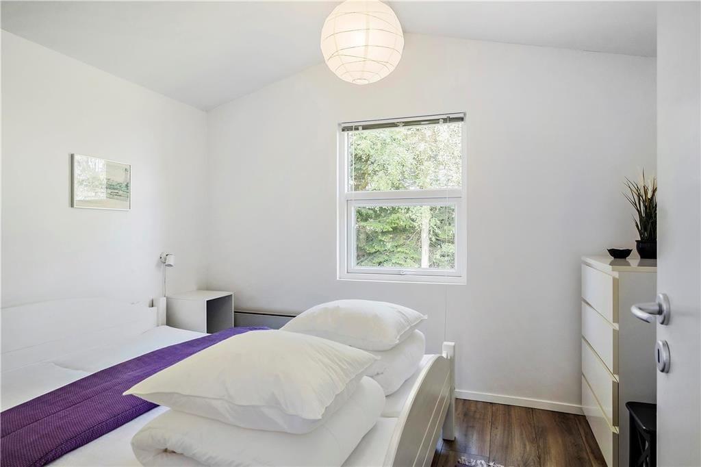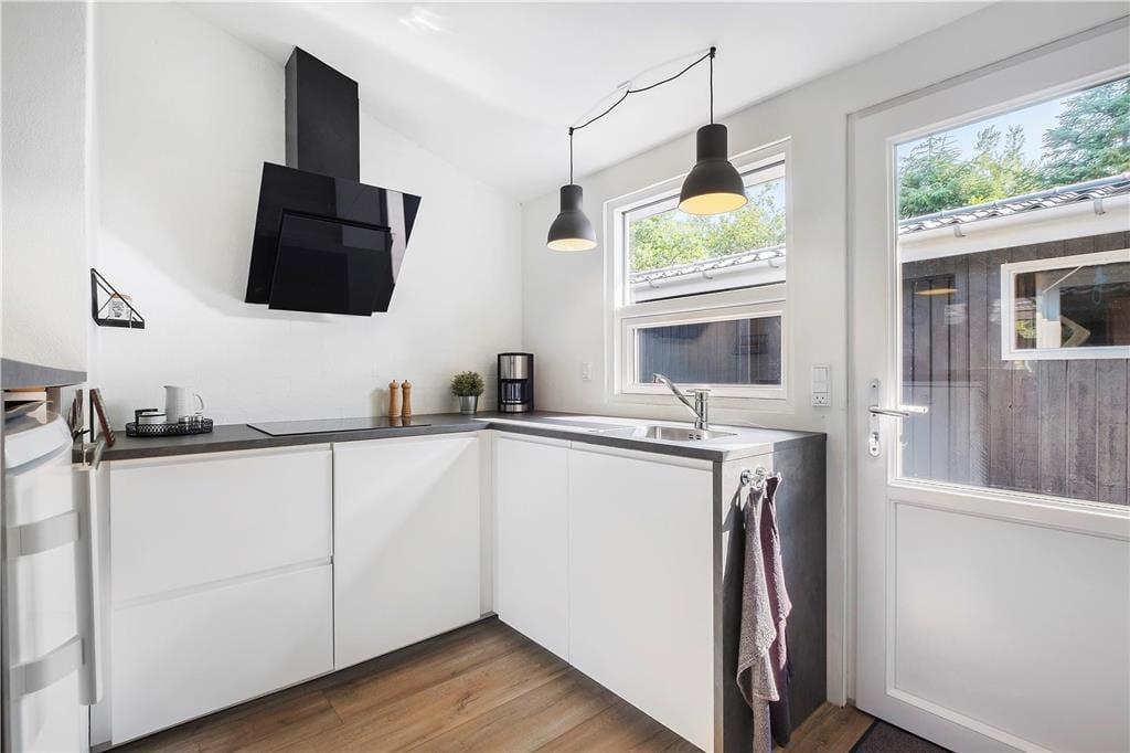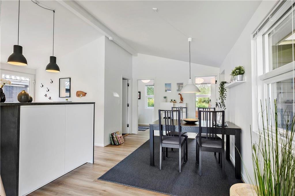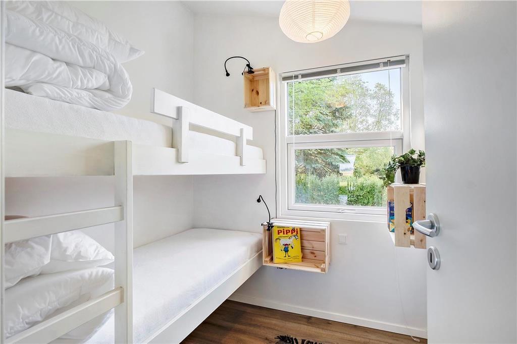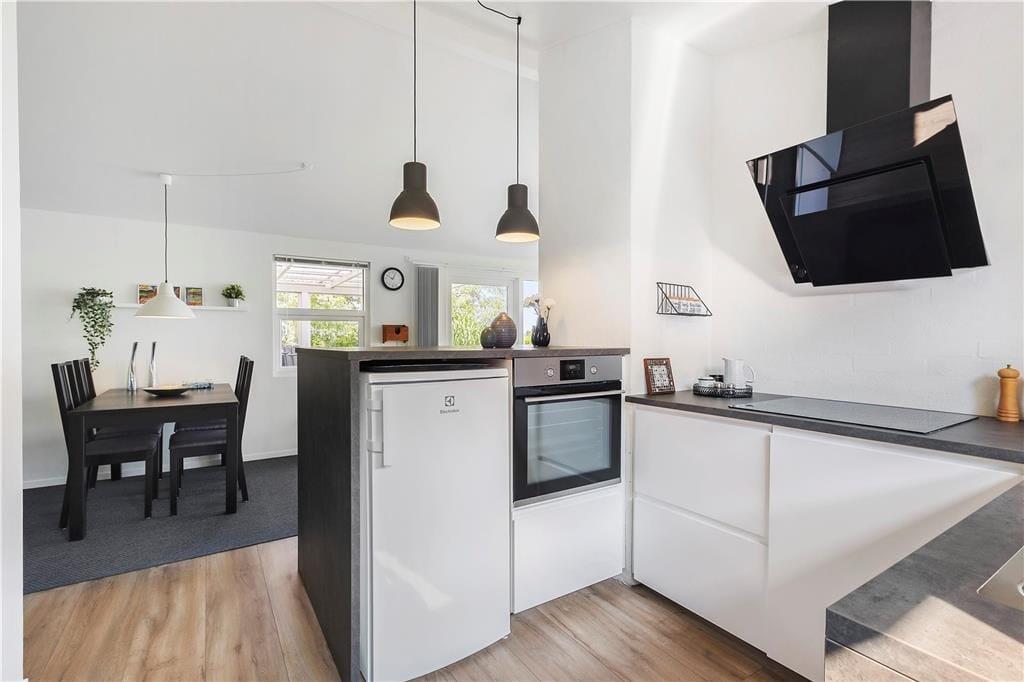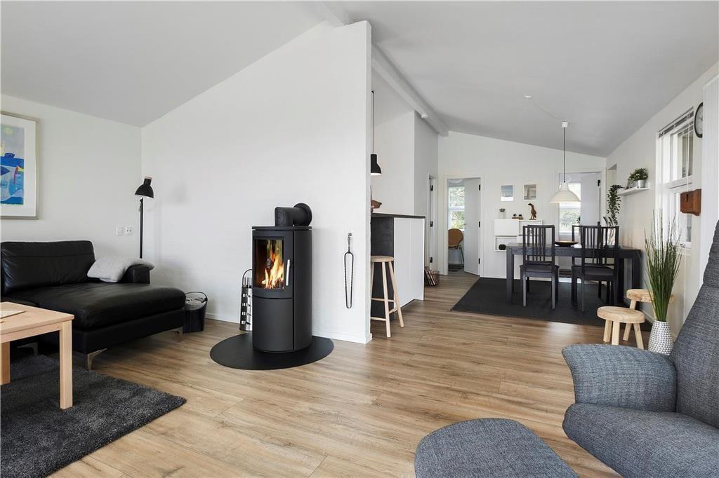 Der Ausblick beeindruckt – und das Haus ebenso. Es ist nämlich 2018 komplett renoviert worden und verfügt nun über eine offene Küche mit Essbereich und ein ansprechendes Badezimmer mit gläserner Duschkabine. Alle Räume sind hell und einladend gestaltet. Das gilt auch für die drei Schlafzimmer, die Platz für insgesamt sechs Personen bieten. Die Etagenbetten sind 193 cm. lang. Der allerbeste Aufenthaltsort ist jedoch das Wohnzimmer, denn hier sorgt die große Fensterfront dafür, dass Sie den Panoramablick über den Limfjord völlig ungehindert genießen können. Wenn es draußen kühl ist, schalten Sie einfach die Wärmepumpe an, machen Feuer im Kaminofen und lehnen sich danach bequem auf dem Sofa am Fenster zurück.