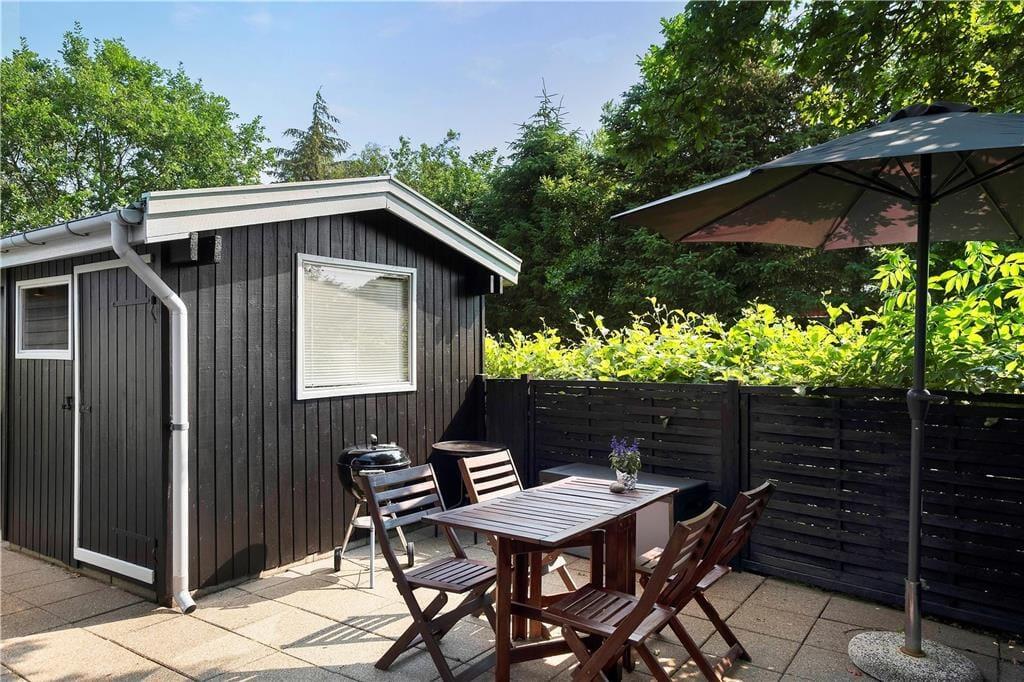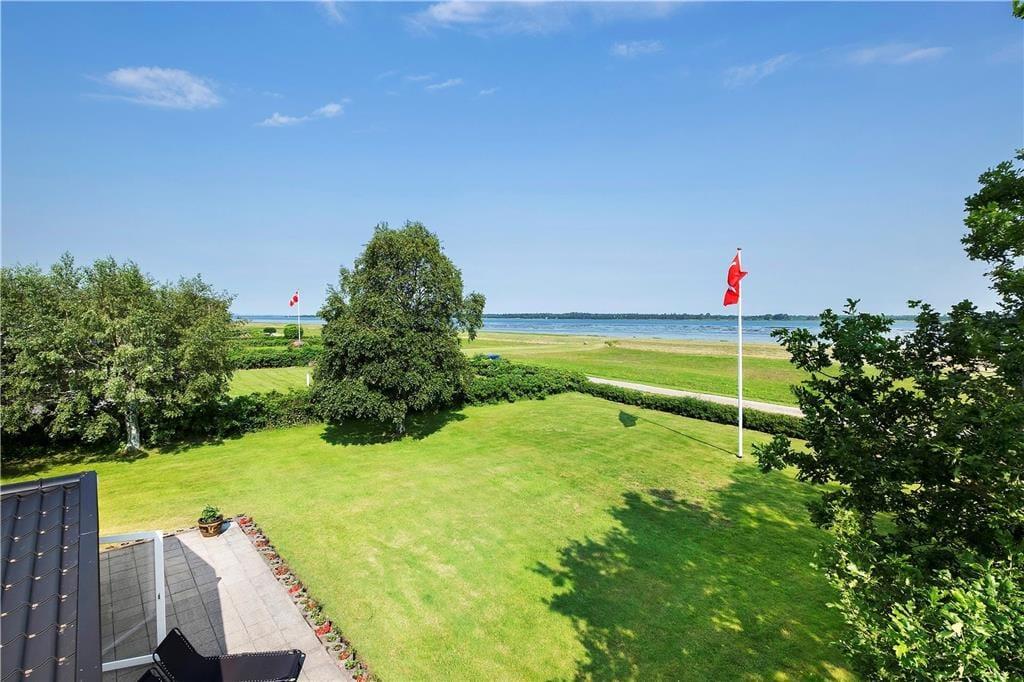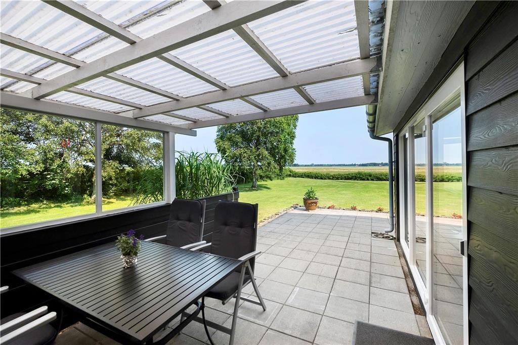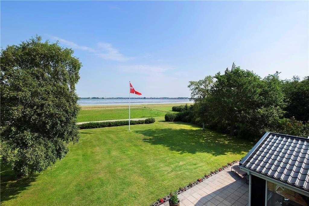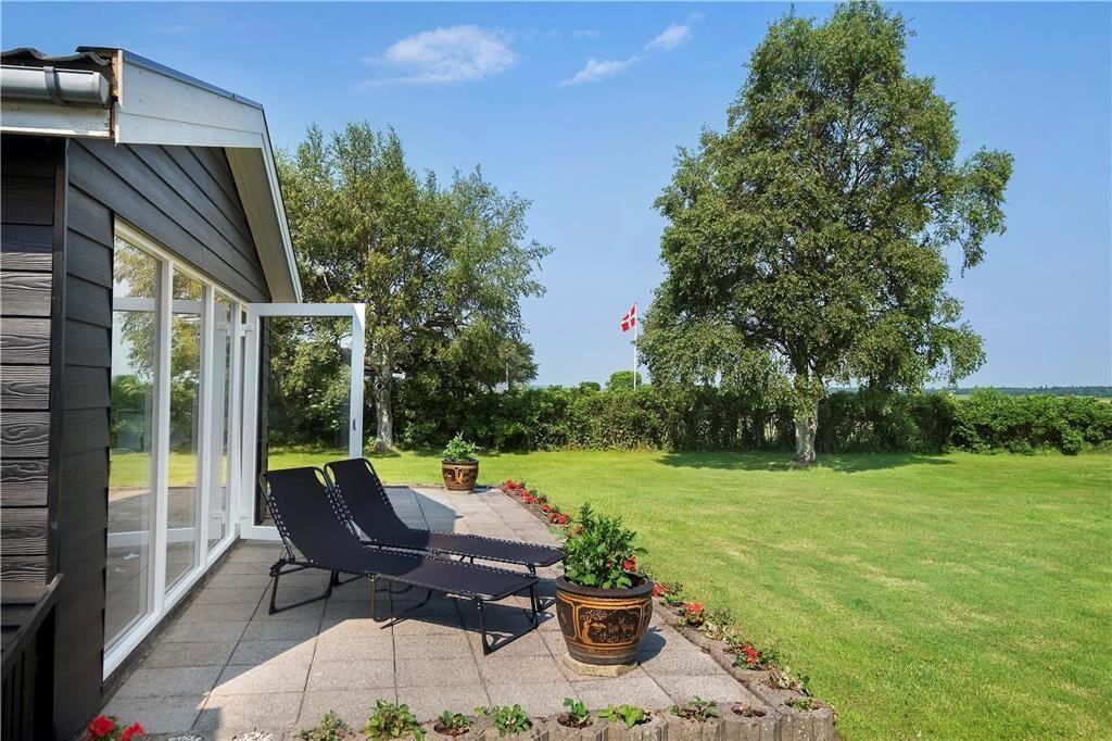 An Sonnentagen öffnen Sie die Terrassentüren und lassen den Sommer herein. Oder Sie machen es sich gleich draußen auf der Terrasse bequem, von wo aus Sie ebenfalls einen fantastischen Blick auf den Fjord haben und den Schiffsverkehr von und nach Aalborg beobachten können – vom kleinen Boot bis zum Kreuzfahrtschiff sowie prachtvolle Segler kommen hier vorbei. Die Terrasse ist übrigens teilweise überdacht, sodass Sie vor Wind und Wetter geschützt sitzen können. Die große Rasenfläche des Gartens bietet viel Platz zum Spielen.