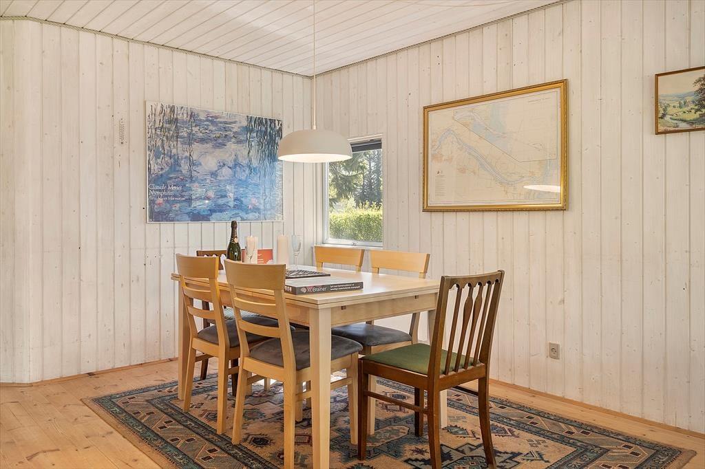 Sobald Sie das Haus Glentevej 5 betreten, werden Sie von einer warmen und gemütlichen Atmosphäre empfangen. Die Einrichtung ist im klassischen Landhausstil gehalten, mit holzverkleideten Wänden und Decken, weichen Möbeln und natürlichem Licht, das zu Ruhe und Präsenz einlädt. Es gibt viel Platz, um zusammen zu sein - sei es bei einem Kartenspiel am Esstisch, einem guten Film in der Sofaecke oder beim Kochen in der offenen Küche, wo die Unterhaltung leicht weitergeht, während die Töpfe köcheln. Es ist leicht, sich einen grauen Tag vorzustellen, wenn die Brettspiele hervorgeholt werden und der Geruch von frisch gebackenem Kuchen durch das Haus weht. Am Ende des Tages können Sie sich in die ruhigen Schlafzimmer zurückziehen und sich auf einen weiteren Tag im entspannten Urlaubstempo freuen.
