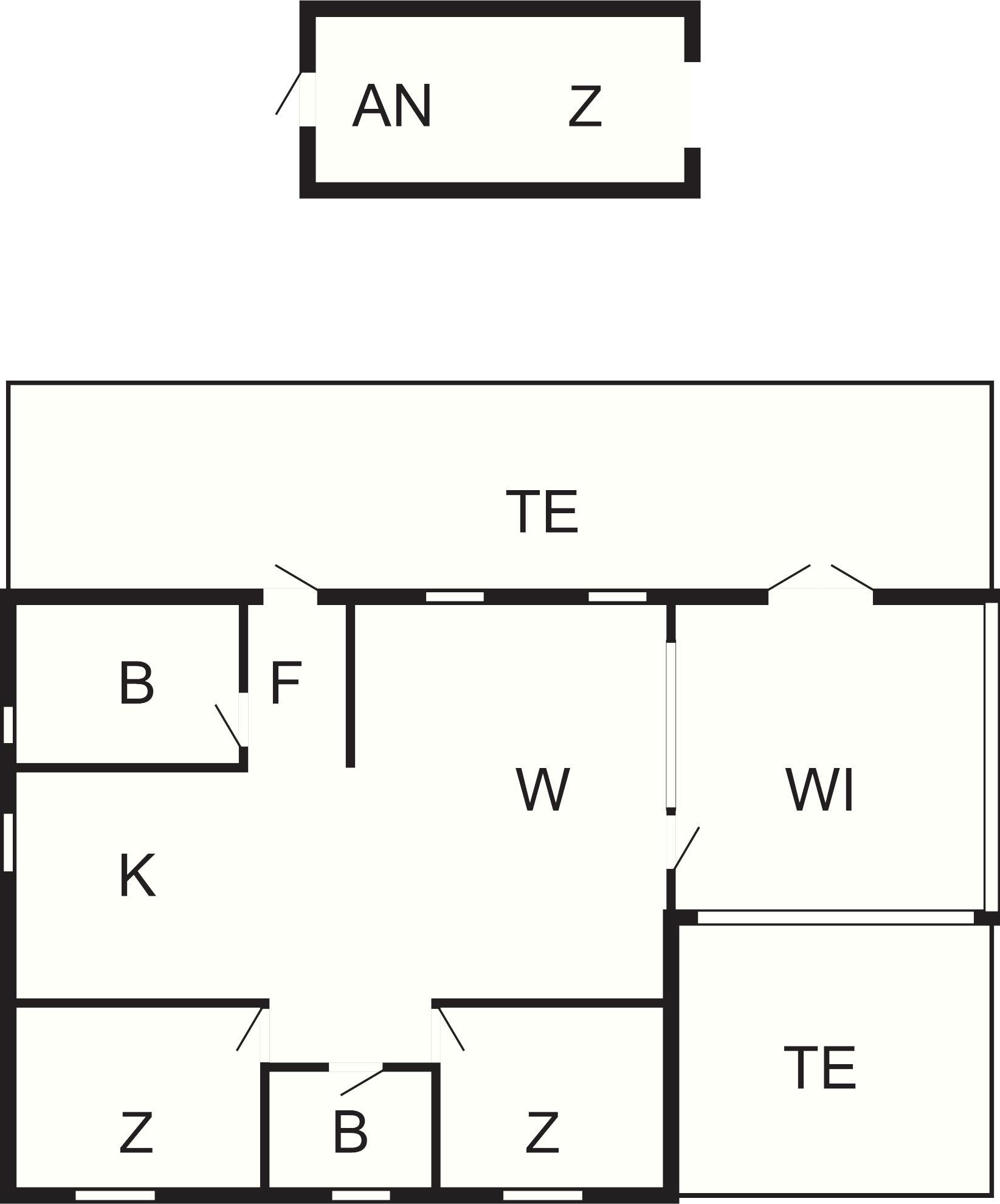 Traditionelles Ferienhaus in einem ruhigen Ferienhausgebiet bei Egense, nur wenige Gehminuten vom Wasser entfernt. Innen helles, geräumiges Wohnzimmer mit Holzofen und energieeffizienter Wärmepumpe. Im offenen Anschluss daran findet man auch den Essbereich und die Küche des Hauses. Von hier aus hat man Zugang zu einer schön verglasten Terrasse und weiter zum Gartengrundstück.