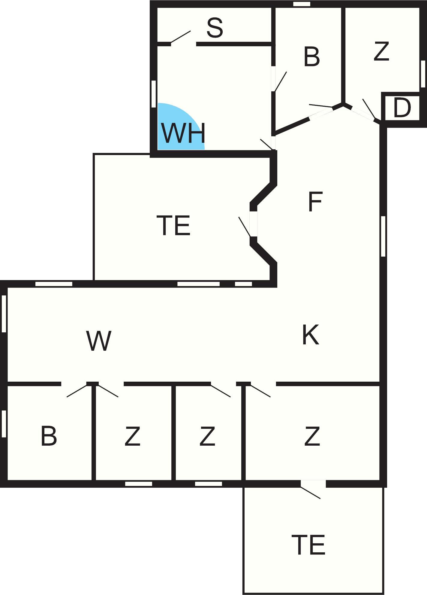 Das große, helle Wohnzimmer mit Essplatz ist offen mit der Küche verbunden. Die Schlafplätze verteilen sich auf vier Schlafzimmer; zwei Schlafzimmer mit Doppelbett und zwei Zimmer mit Etagenbett (Federkernmatratze 90x200 cm). Darüber hinaus gibt es einen Hems mit viel Liegen. Es stehen zwei große Badezimmer, eines davon mit Zugang zu Whirlpool und Sauna, bereit. Die Einrichtung ist modern und geschmackvoll.