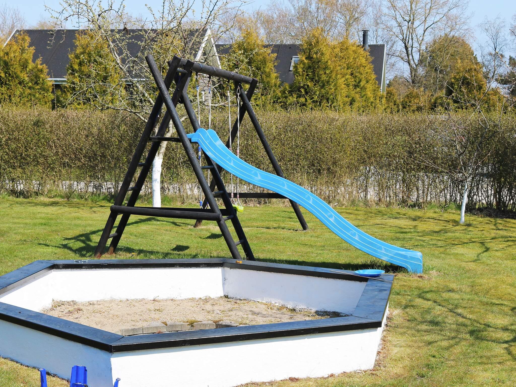 Im Außenbereich bietet das große Eckgrundstück Raum für Spiel und Spaß im Freien. Für Kinder gibt es Schaukel, Rutsche und eine kleine Feuerstelle.