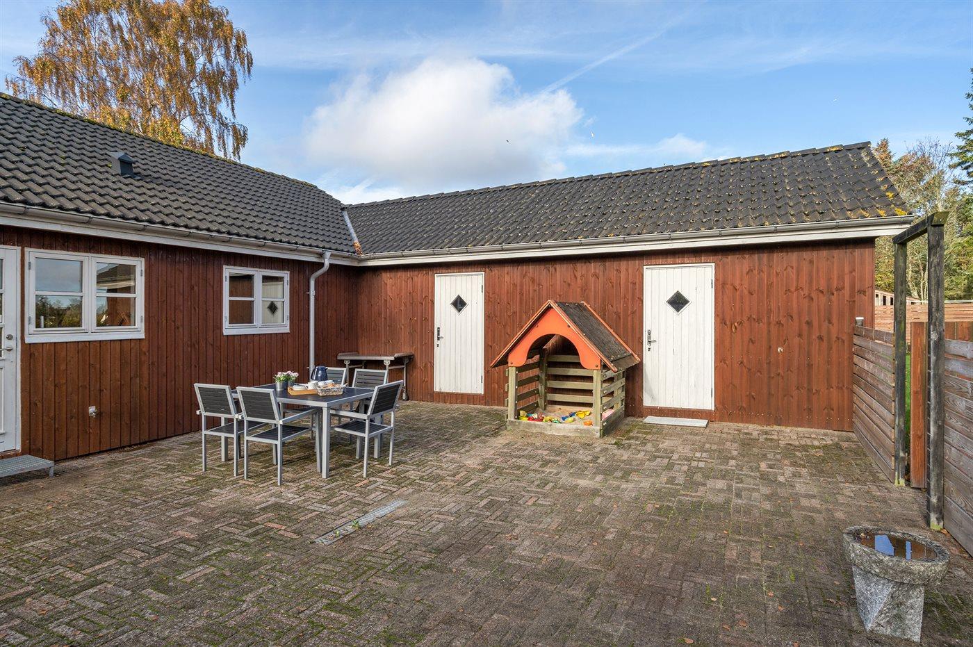 Die Ferienunterkunft liegt auf einem 1200 m² großen Naturgrundstück. Die Entfernung zum Meer beträgt 1000 m. Die Entfernung zum Fjord beträgt 300 m. Die nächste Einkaufsmöglichkeit liegt 500 m entfernt. Es steht ein 90 m² Terrassenareal zur Verfügung. Geräteraum. Schaukel. Sandkasten. Kinderspielhaus. Trampolin.Es beteht die Möglichkeit das Essen in der Außenküche zuzubereiten.