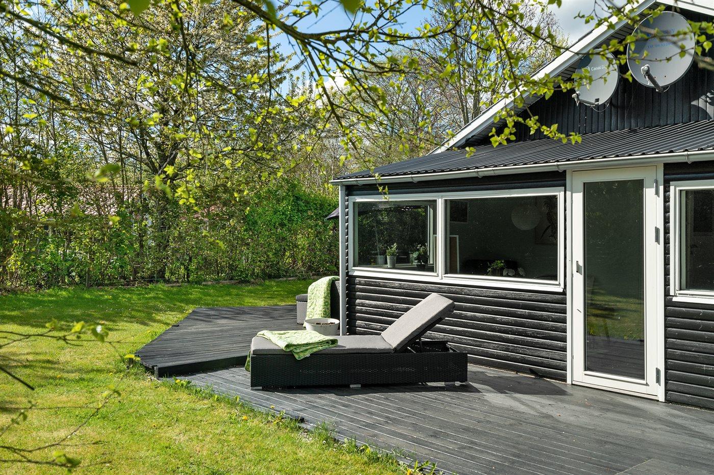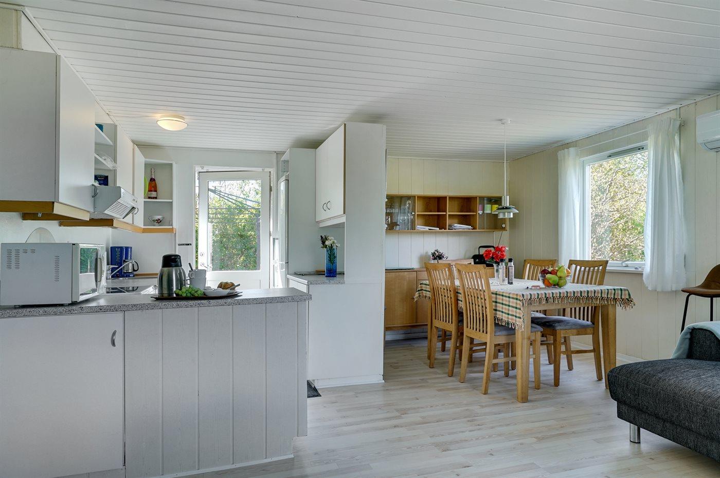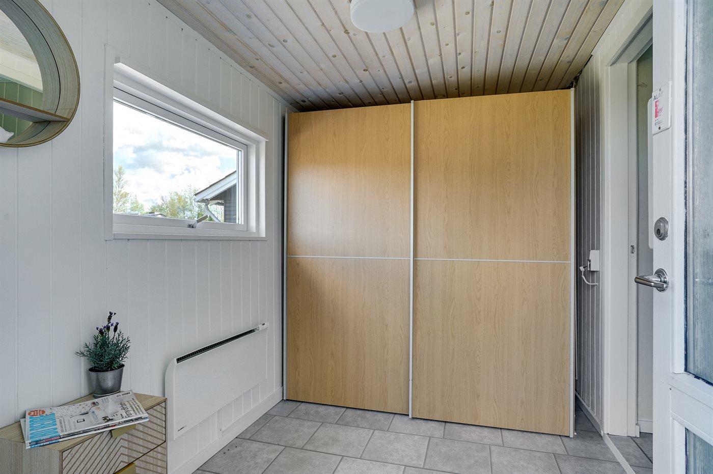 Die Ferienunterkunft liegt auf einem 1250 m² großen Gartengrundstück. Die Entfernung zum Meer beträgt 1500 m. Die Entfernung zum Fjord beträgt 500 m. Die nächste Einkaufsmöglichkeit liegt 800 m entfernt. Es steht ein 60 m² Terrassenareal zur Verfügung. Zutritt zu einem Wintergarten. Geräteraum. Trampolin. Es steht ein Grill zur Verfügung. Parkplatz auf dem Grundstück.
