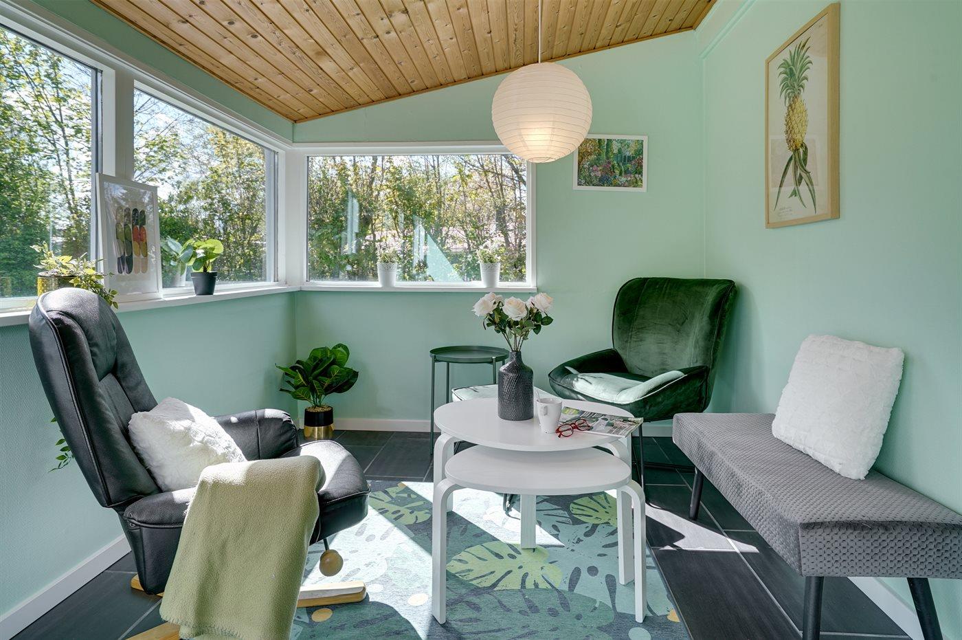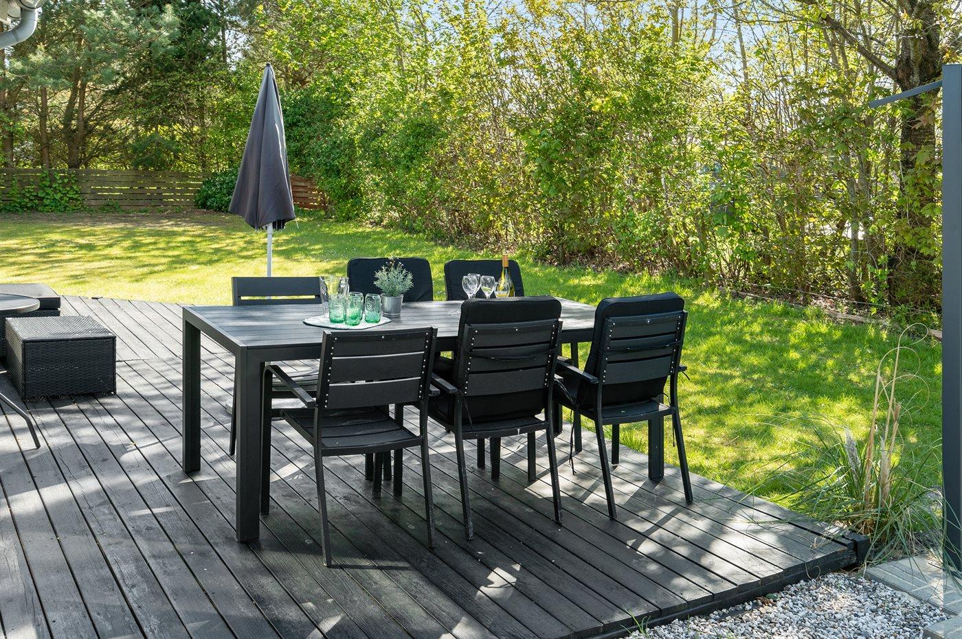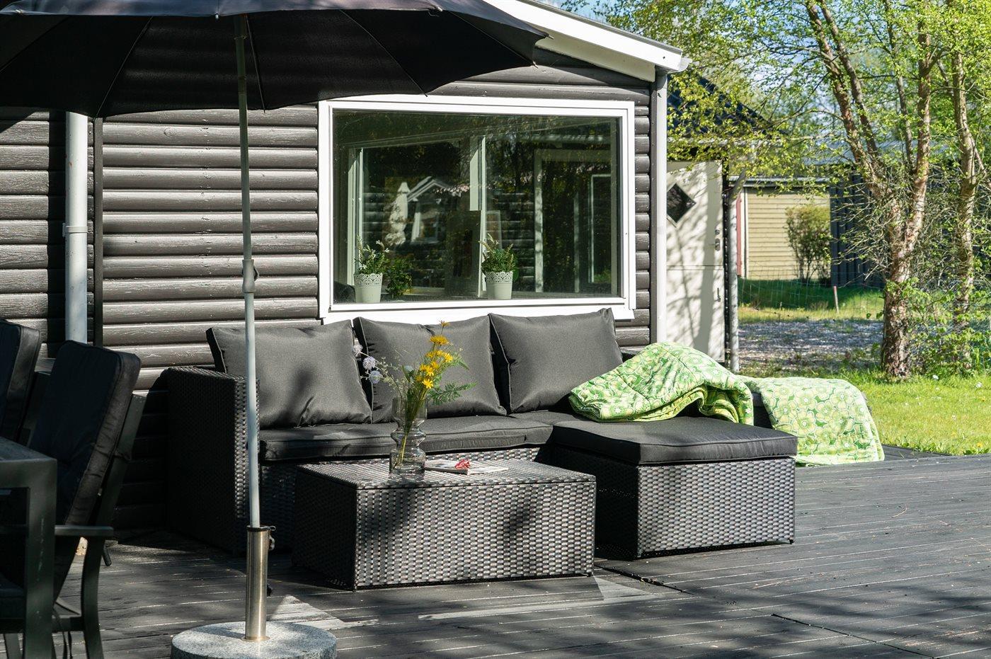 Die Ferienunterkunft liegt auf einem 1250 m² großen Gartengrundstück. Die Entfernung zum Meer beträgt 1500 m. Die Entfernung zum Fjord beträgt 500 m. Die nächste Einkaufsmöglichkeit liegt 800 m entfernt. Es steht ein 60 m² Terrassenareal zur Verfügung. Zutritt zu einem Wintergarten. Geräteraum. Trampolin. Es steht ein Grill zur Verfügung. Parkplatz auf dem Grundstück.