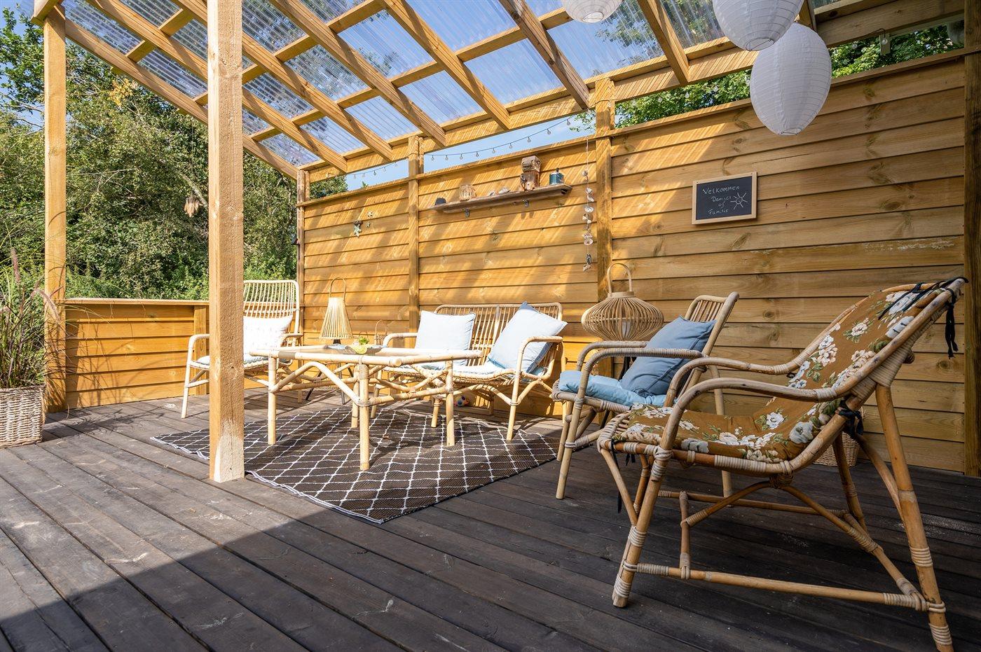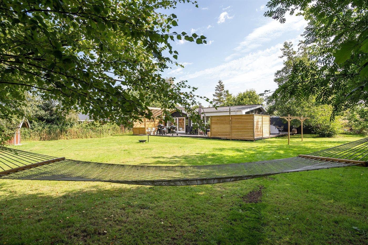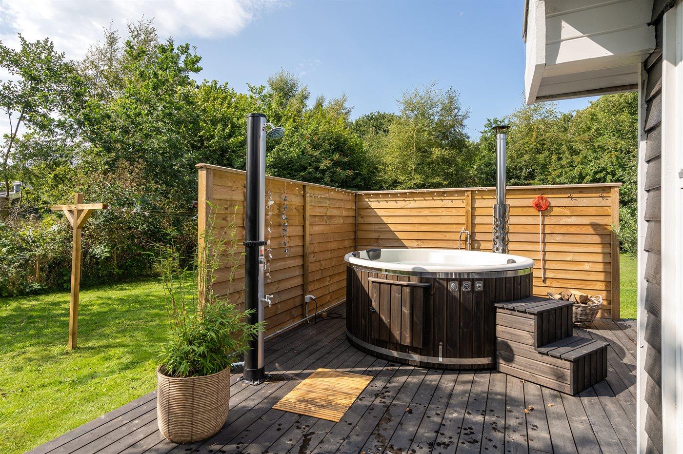 Dieses schöne Feriehaus liegt auf einem eingezäunten Gartengrundstück. Das Haus ist von etwa 100 m2 offener und etwa 15 m2 überdachter Terrassefläche umgeben – hier kannman es sich mit einem guten Buch gemütlich machen, eine leckere Mahlzeit im Freien genießen oder sich im Hot Tub oder der Außen-Sauna entspannen und die Seele baumeln lassen.