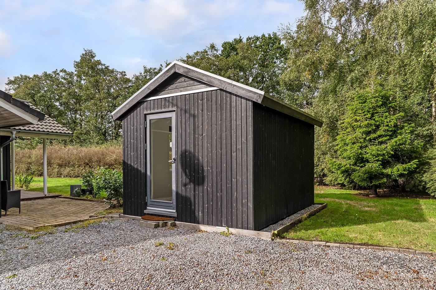 Die Ferienunterkunft liegt auf einem 1576 m² großen Gartengrundstück. Die Entfernung zum Meer beträgt 1600 m. Die Entfernung zum Fjord beträgt 850 m. Die nächste Einkaufsmöglichkeit liegt 750 m entfernt. In einem Abstand von 4200 m gibt es einen Golfplatz. Es steht ein geschlossenes Terrassenareal zur Verfügung - davon sind 15 m² überdacht. Schaukel. Windschutzhütte.Es beteht die Möglichkeit das Essen in der Außenküche zuzubereiten. Parkplatz auf dem Grundstück.