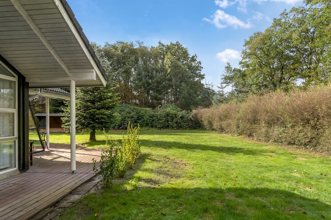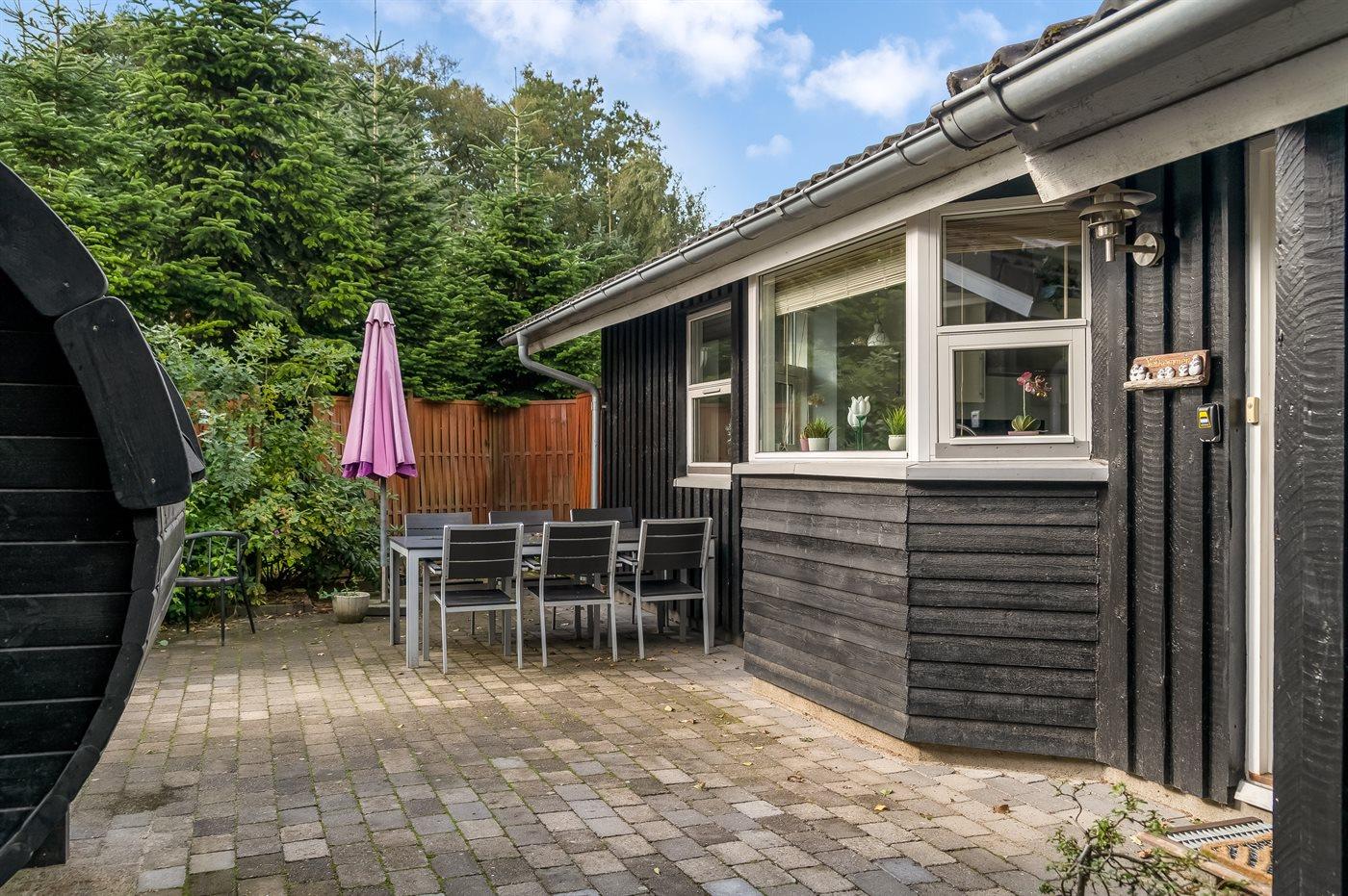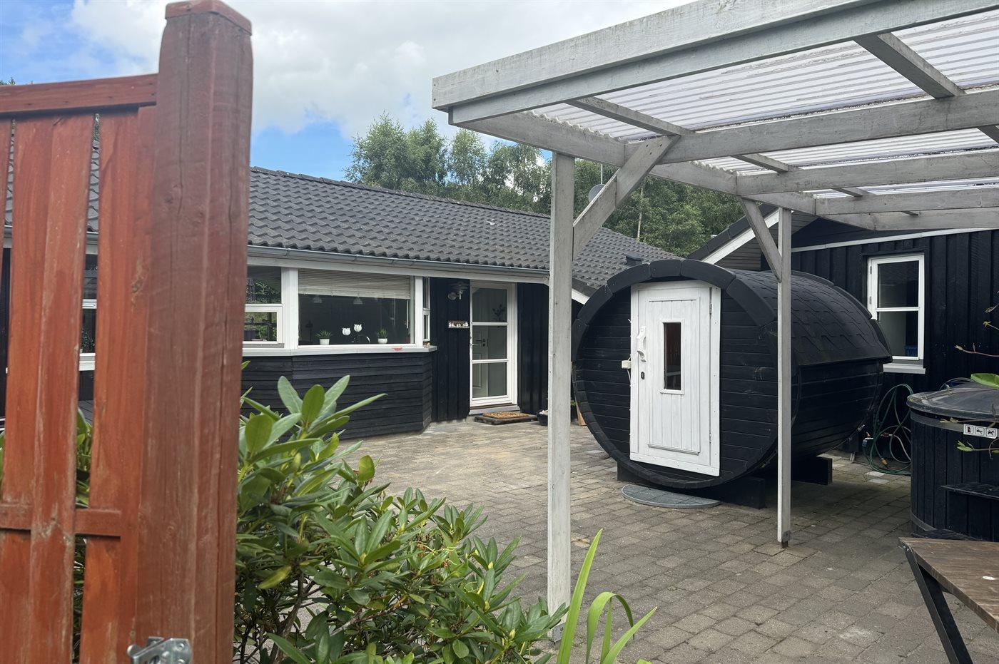 Familienfreundliches Ferienhaus in Dänemark mit Sauna, Hot Tub und Aktivitätsraum auf großem Grundstück.