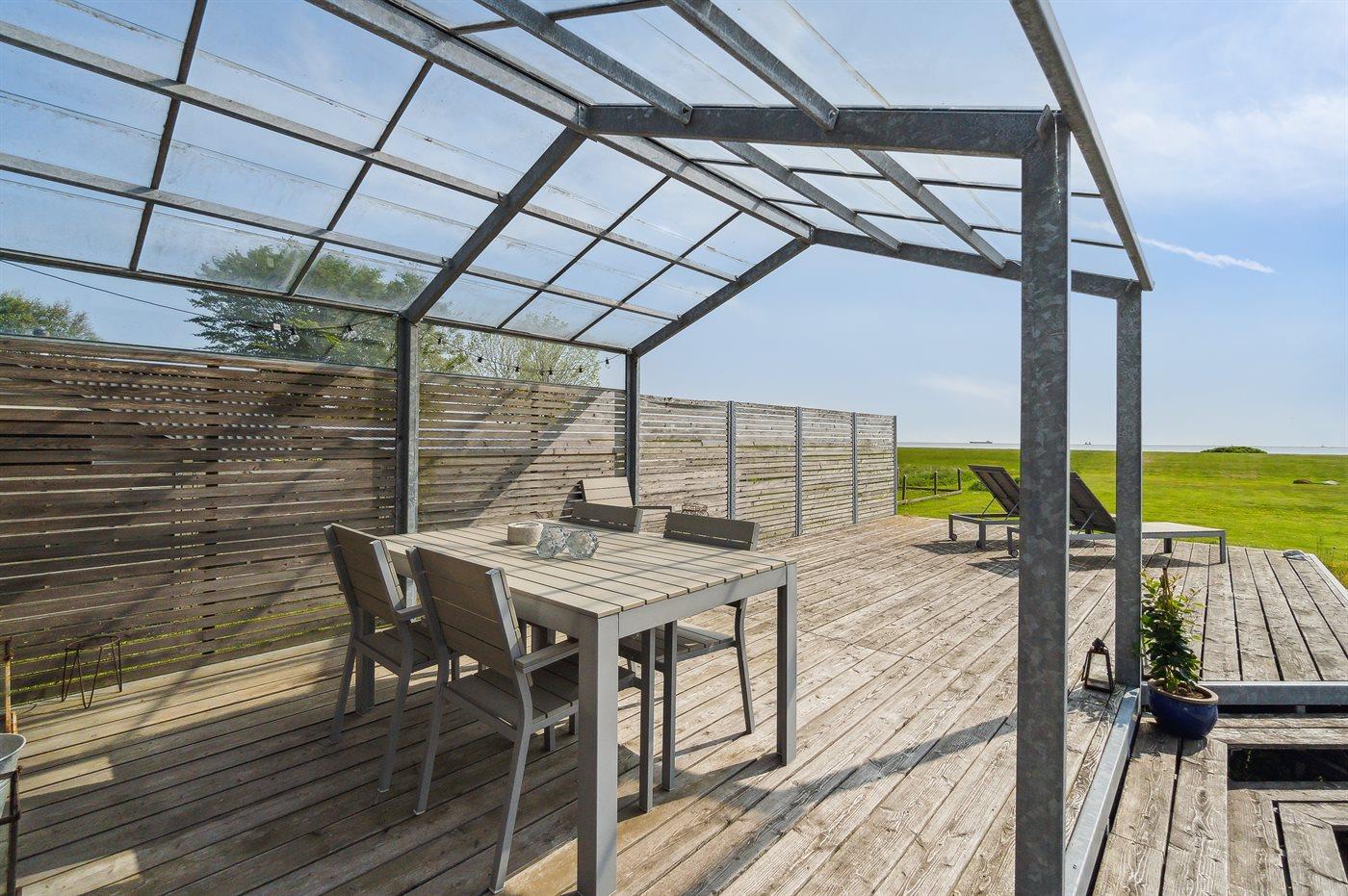 Modernes Ferienhaus mit Meerblick, Terrasse und energieeffizienter Ausstattung in Storvorde, Dänemark.