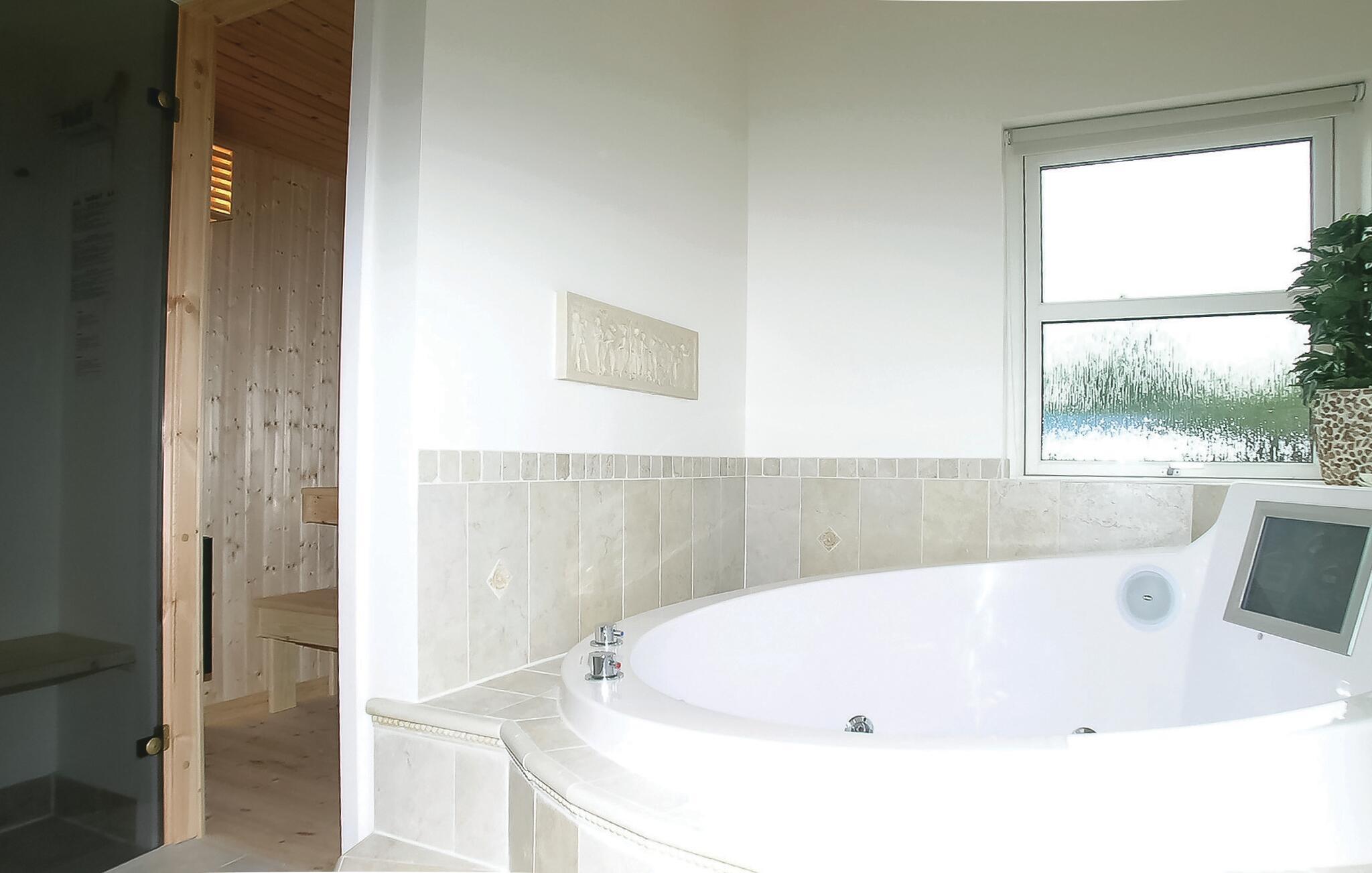 Das architektonisch anspruchsvolle Haus ist von hoher Qualität. Am Whirlpool ist ein Fernseher. Das Wohnzimmer ist mit schicken Möbeln ausgestattet und lädt zusammen mit der praktischen Küche zum gemütlichen Beisammensein ein. Die Internetverbindung ist eine 200/200 Mb Breitbandverbindung.