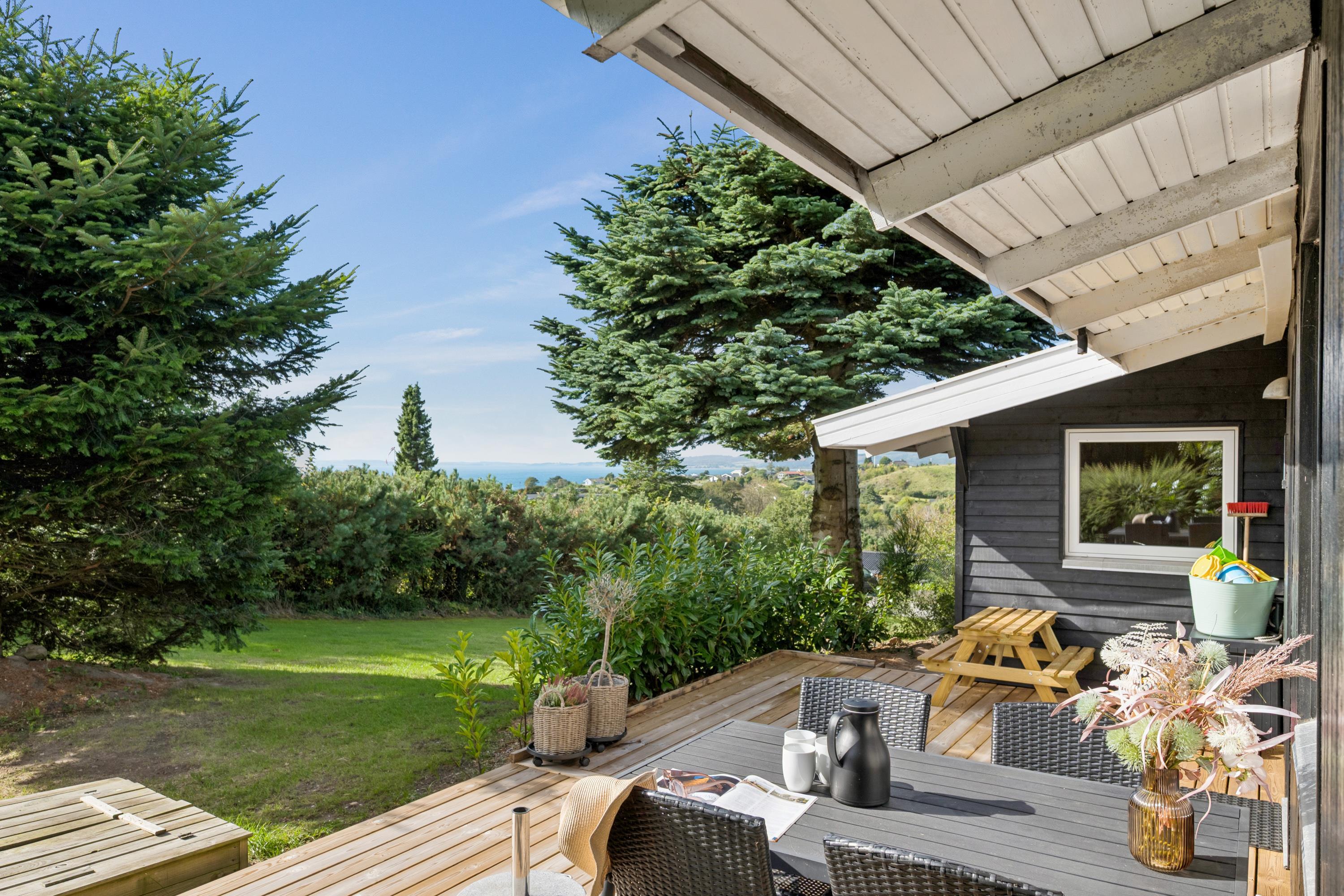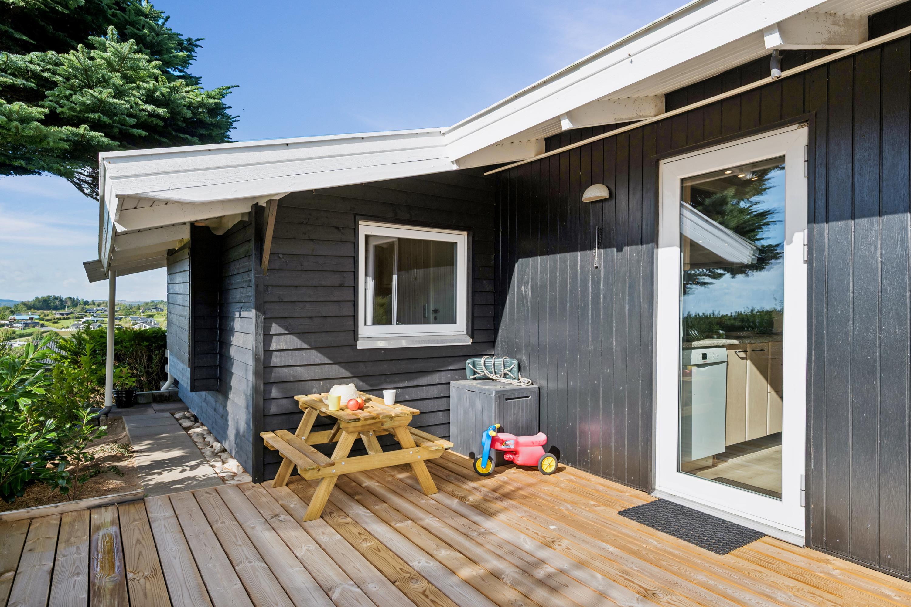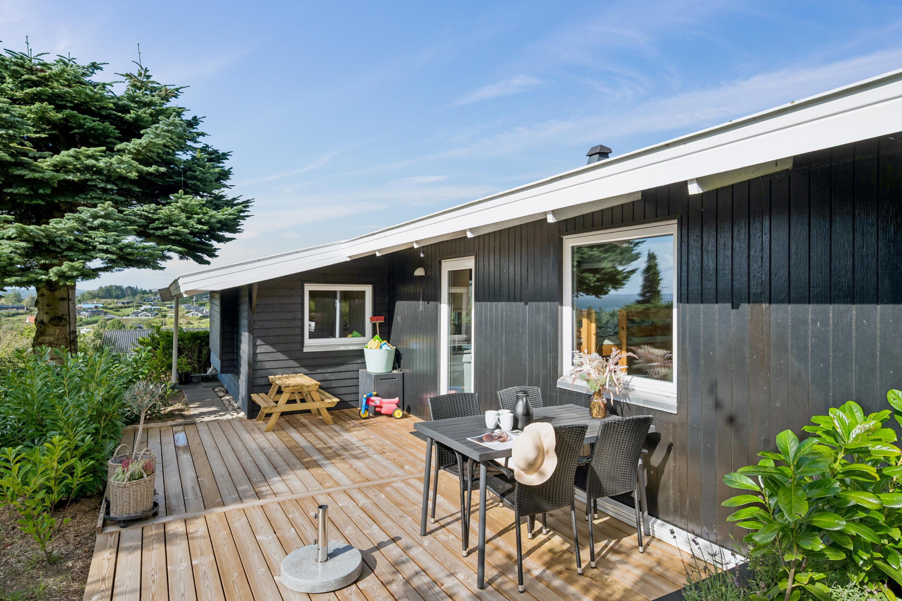 Gemütliches Ferienhaus in Egsmark Strand mit Blick auf das Wasser, moderner Ausstattung und kinderfreundlichem Garten.