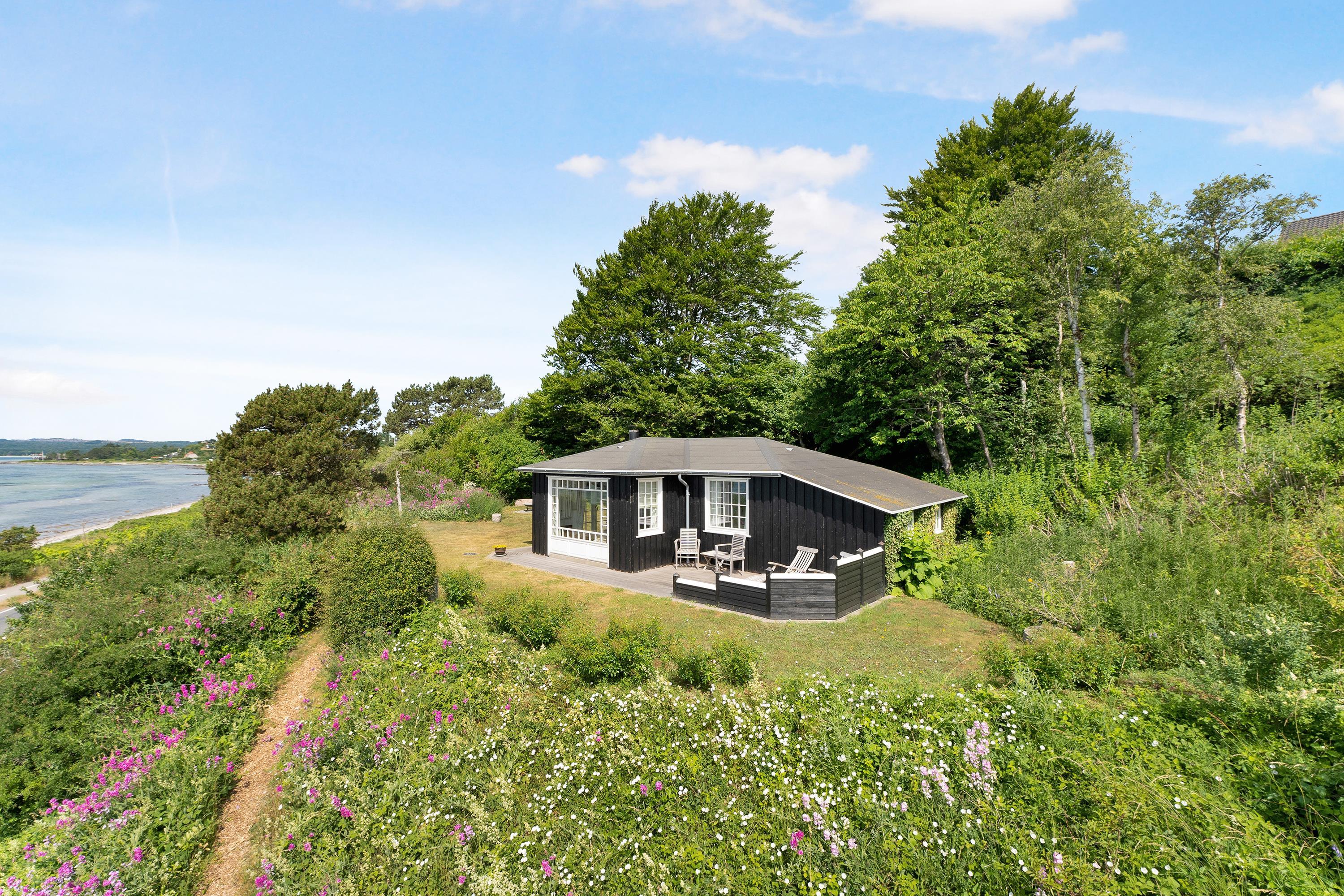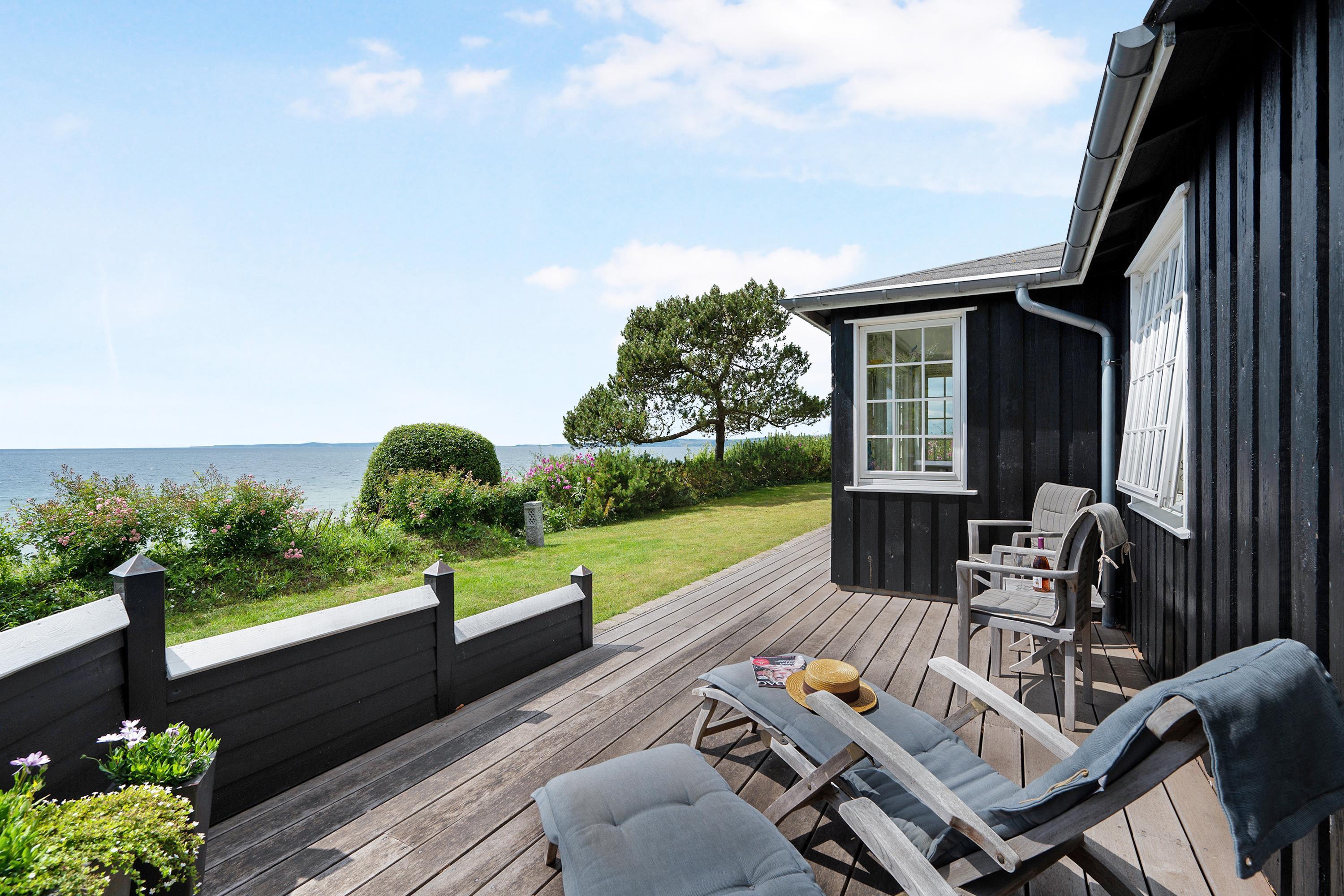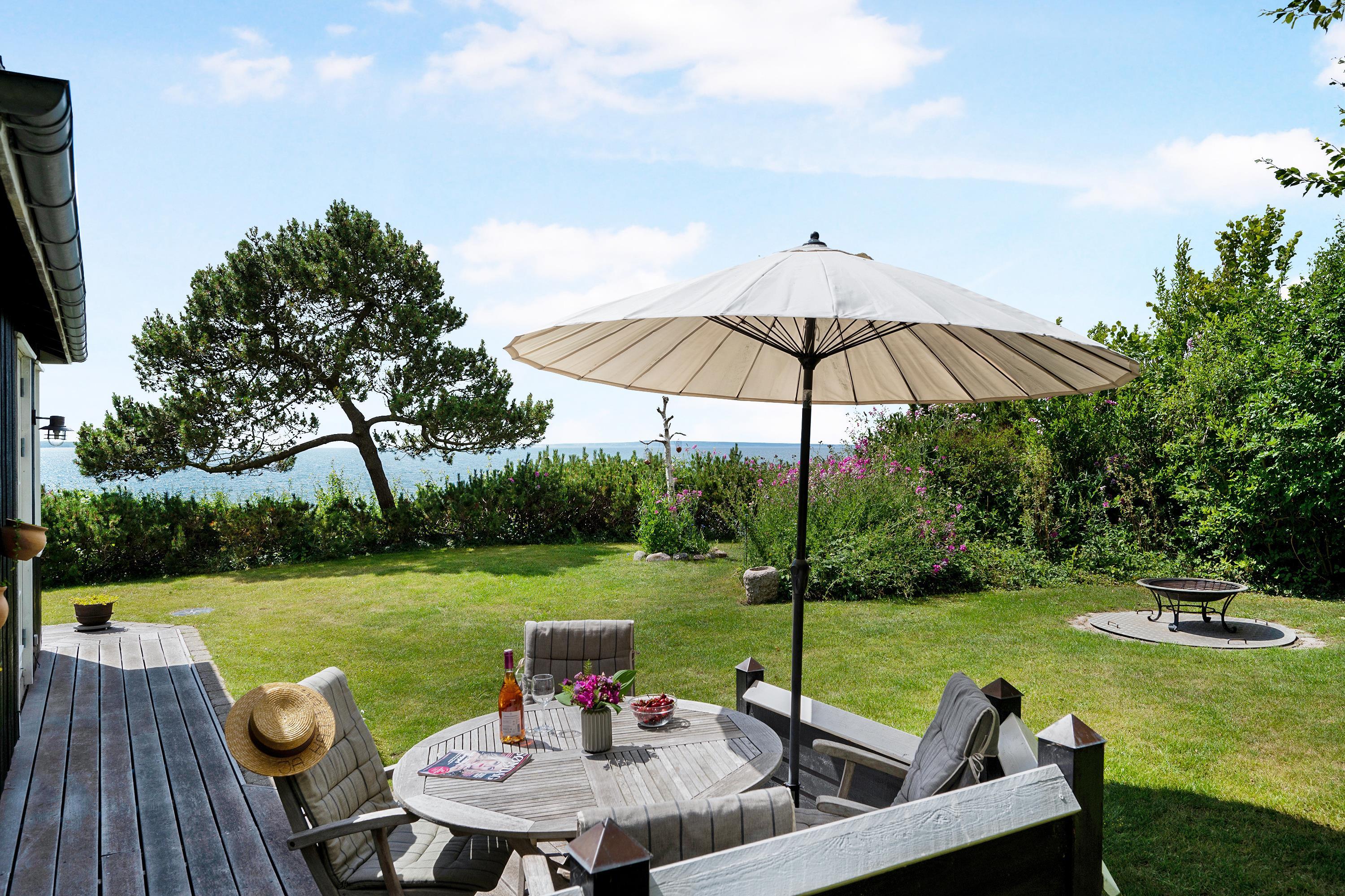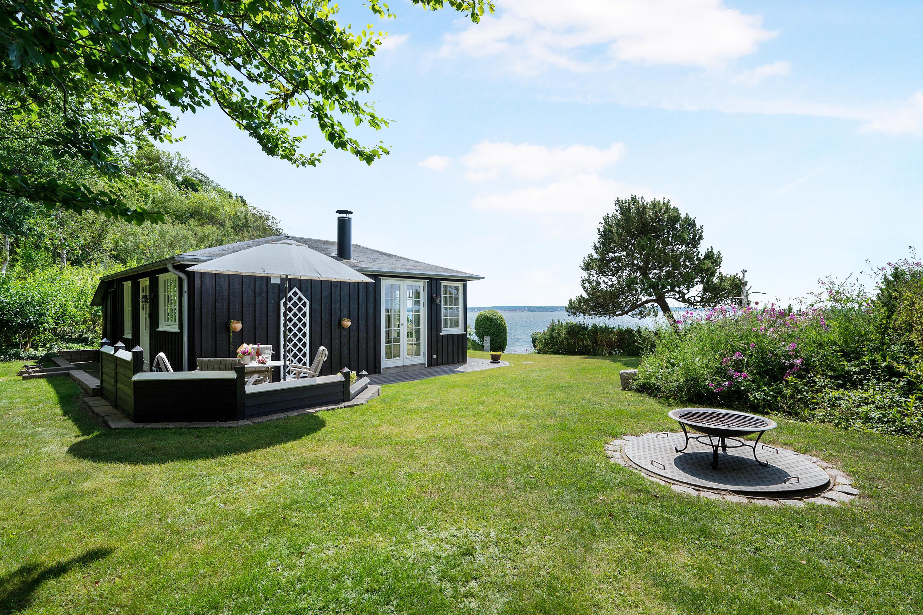Nur 20 m vom Strand entfernt finden Sie dieses fantastische und gemütliche Ferienhaus hoch gelegen mit Panoramablick auf Mols Bjerge, Tunø und Samsø. Das Ferienhaus wurde im Jahr 1955 gebaut und ist und unter Beibehaltung des alten romantischen Stils vollständig renoviert. Das Haus verfügt über ein sehr gemütliches und gut eingerichtetes Wohnzimmer, einen Holzofen, einen Fernseher mit dänischen (inkl. TV2) und deutschen Kanälen. Es gibt auch einen DVD-Player und eine Stereoanlage mit CD-Player. Vom Wohnzimmer aus gelangt man auf eine der schönen Terrassen mit guten Gartenmöbeln. In Verbindung mit dem Wohnzimmer finden Sie die schöne Küchenabteilung mit u.a. Geschirrspüler. Schönes Badezimmer mit Dusche. Die 4 Schlafplätze des Hauses verteilen sich auf zwei Zimmer: 1 Zimmer mit Doppelbett und 1 Zimmer mit zwei Einzelbetten. Egal ob Sie sich im Wohnzimmer oder in der Küche befinden, können Sie den schönsten Meerblick aus dem großen Panoramafenster im Wohnzimmer geniessen. Das Haus liegt auf einem besonders gepflegten Grundstück mit mehreren schönen Terrassen und lauschigen Ecken. Auf dem Gelände gibt es auch einen gemütlichen Kamin, so dass Sie sich an einem warmen Sommerabend mit Stockbrot vergnügen und den Sonnenuntergang über der Bucht und der Mols Bjerge beobachten können.