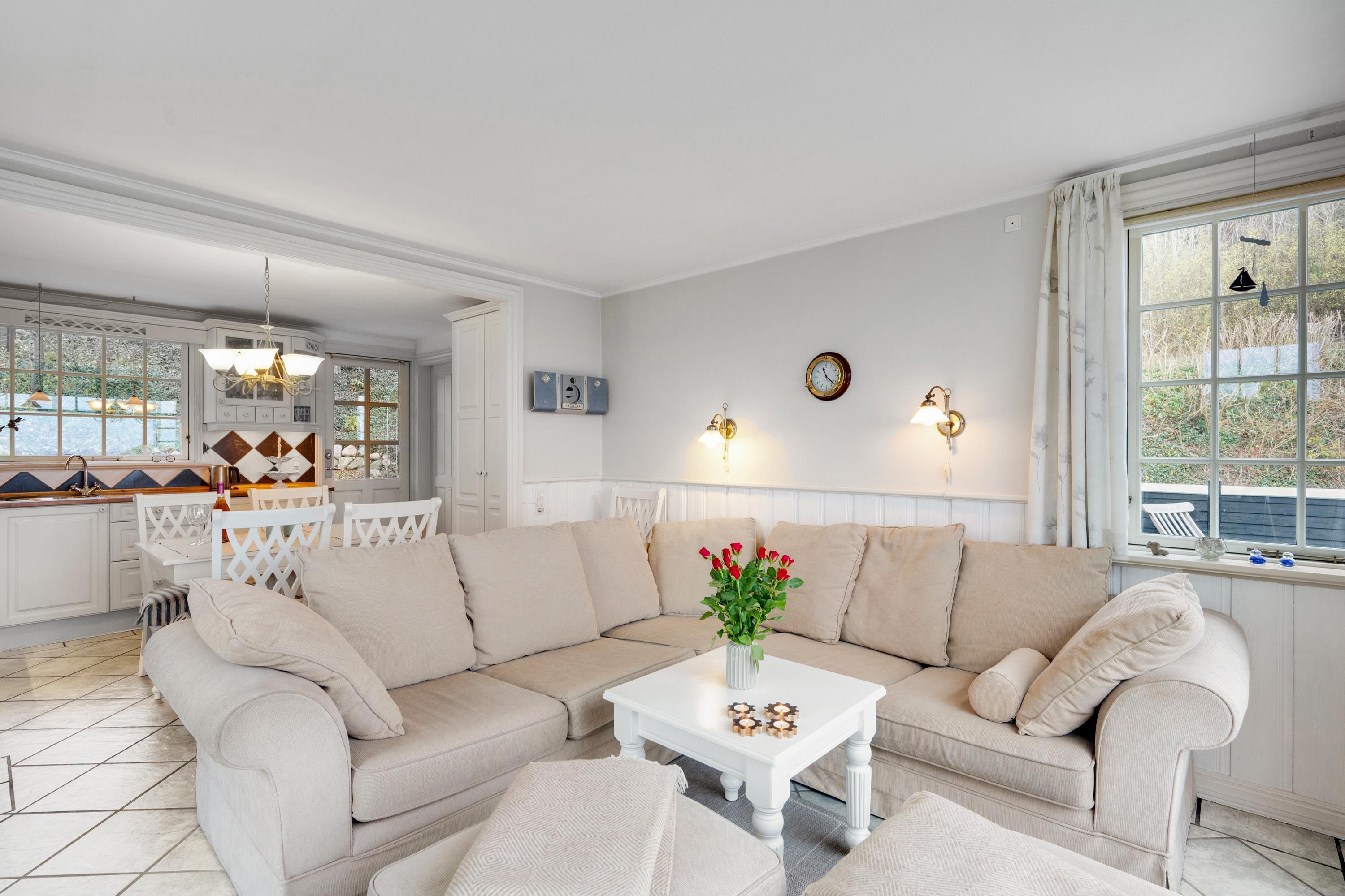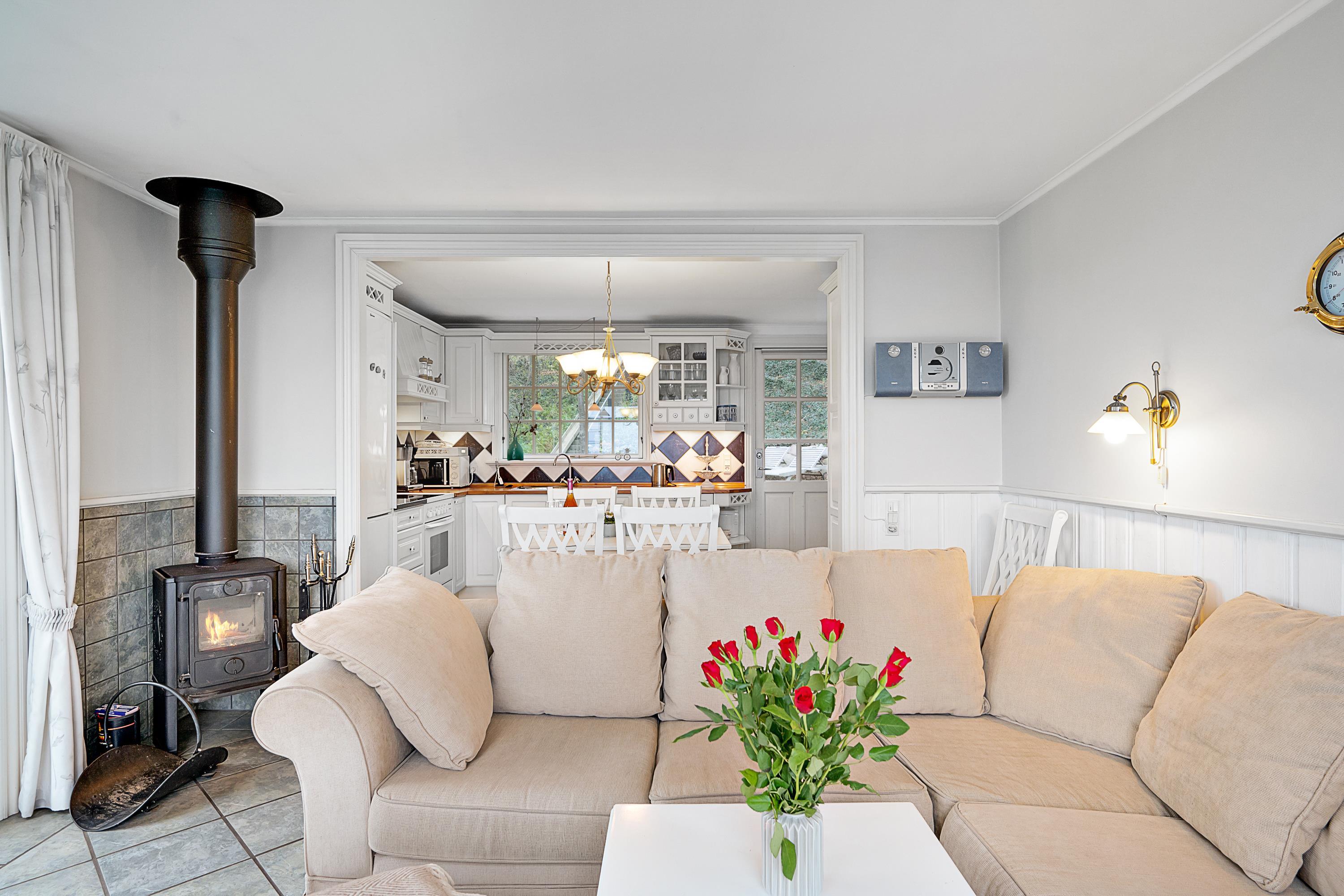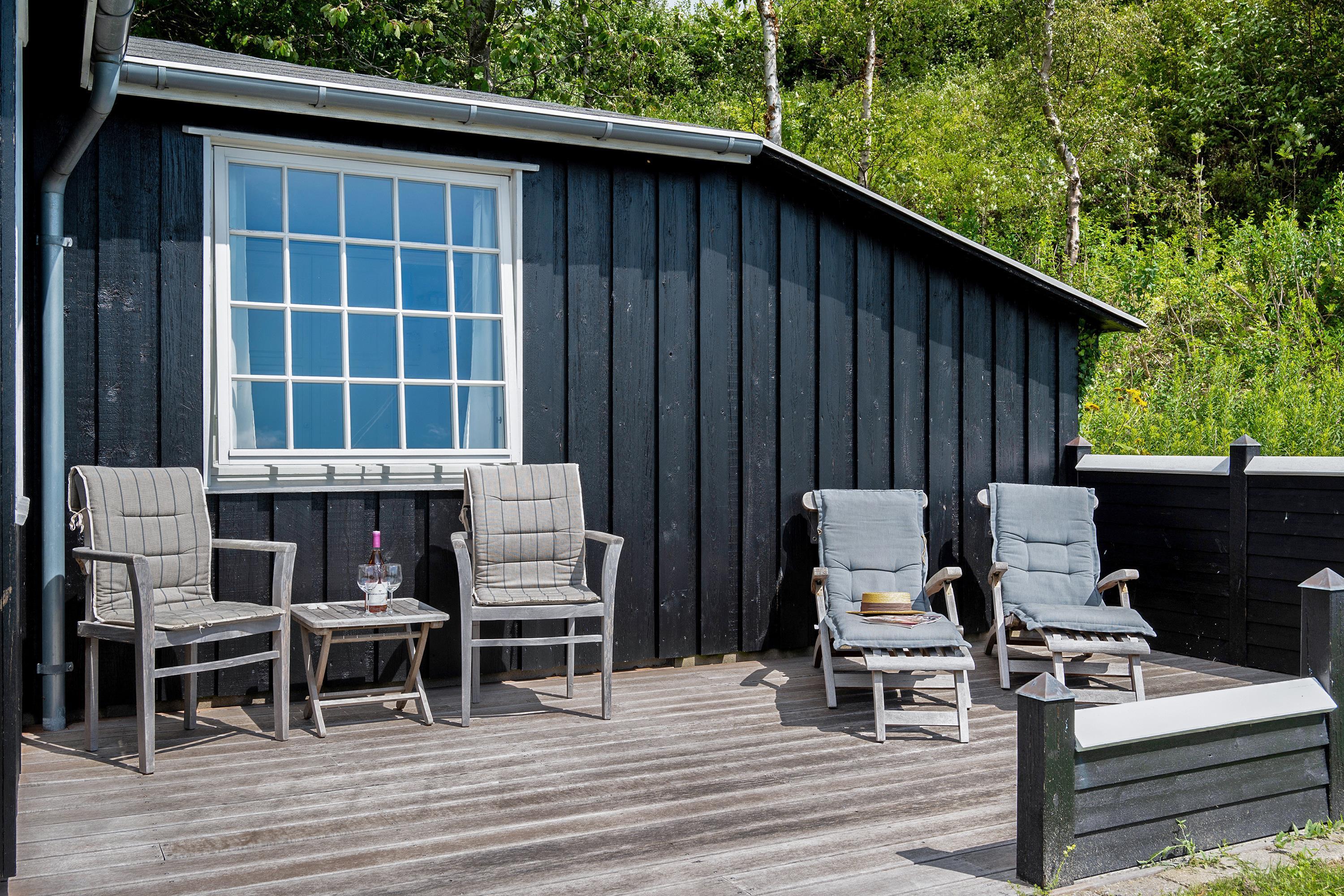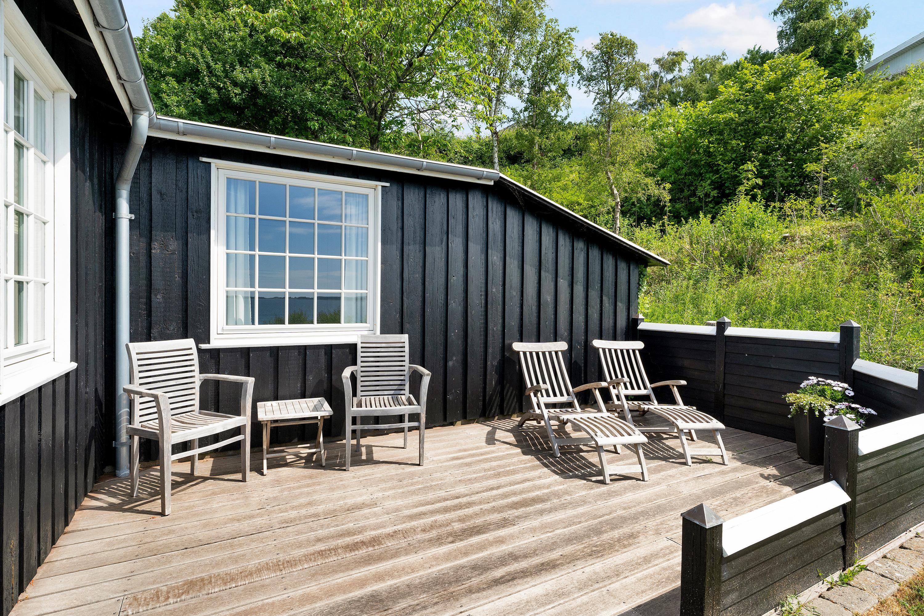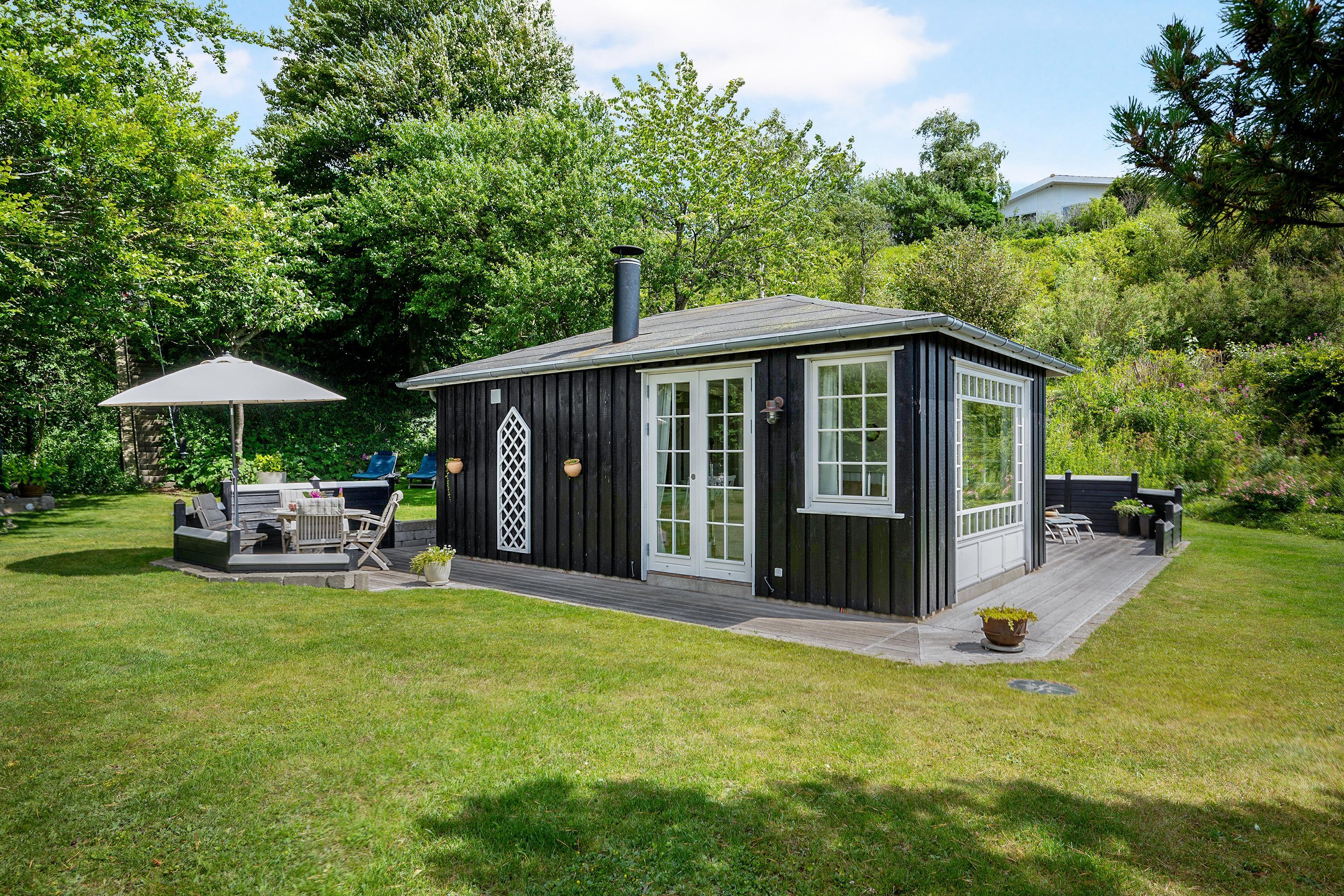 Nur 20 m vom Strand entfernt finden Sie dieses fantastische und gemütliche Ferienhaus hoch gelegen mit Panoramablick auf Mols Bjerge, Tunø und Samsø. Das Ferienhaus wurde im Jahr 1955 gebaut und ist und unter Beibehaltung des alten romantischen Stils vollständig renoviert. Das Haus verfügt über ein sehr gemütliches und gut eingerichtetes Wohnzimmer, einen Holzofen, einen Fernseher mit dänischen (inkl. TV2) und deutschen Kanälen. Es gibt auch einen DVD-Player und eine Stereoanlage mit CD-Player. Vom Wohnzimmer aus gelangt man auf eine der schönen Terrassen mit guten Gartenmöbeln. In Verbindung mit dem Wohnzimmer finden Sie die schöne Küchenabteilung mit u.a. Geschirrspüler. Schönes Badezimmer mit Dusche. Die 4 Schlafplätze des Hauses verteilen sich auf zwei Zimmer: 1 Zimmer mit Doppelbett und 1 Zimmer mit zwei Einzelbetten. Egal ob Sie sich im Wohnzimmer oder in der Küche befinden, können Sie den schönsten Meerblick aus dem großen Panoramafenster im Wohnzimmer geniessen. Das Haus liegt auf einem besonders gepflegten Grundstück mit mehreren schönen Terrassen und lauschigen Ecken. Auf dem Gelände gibt es auch einen gemütlichen Kamin, so dass Sie sich an einem warmen Sommerabend mit Stockbrot vergnügen und den Sonnenuntergang über der Bucht und der Mols Bjerge beobachten können.