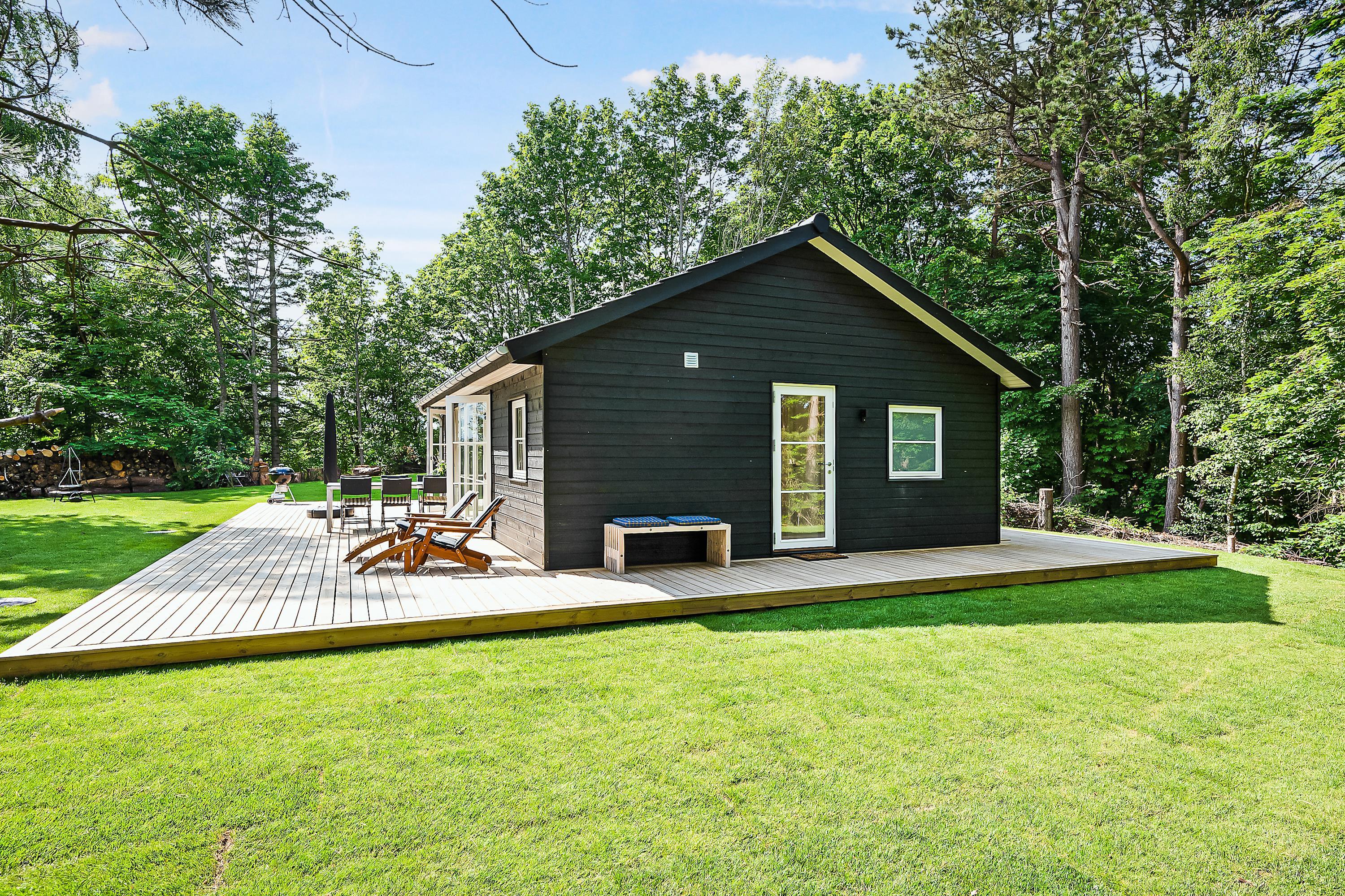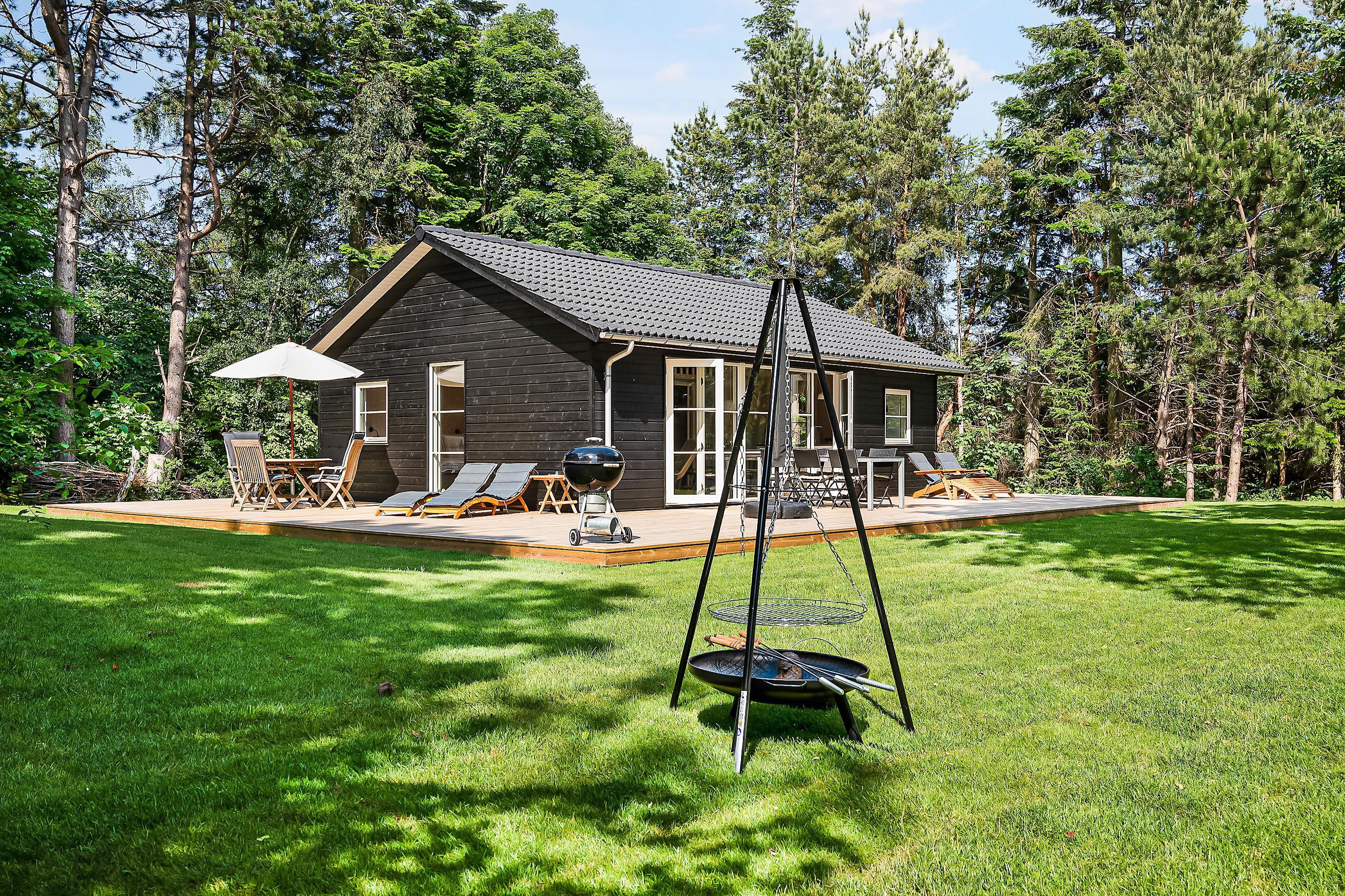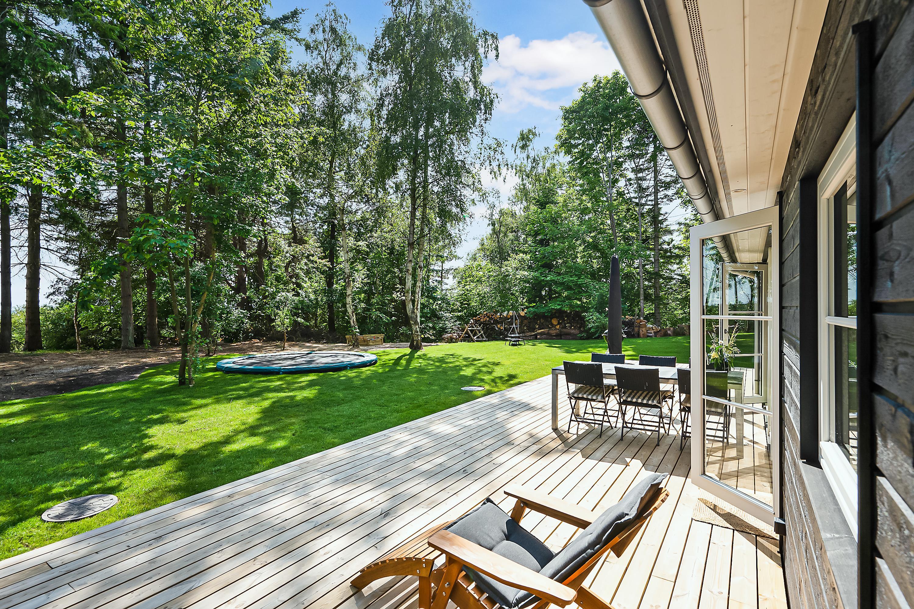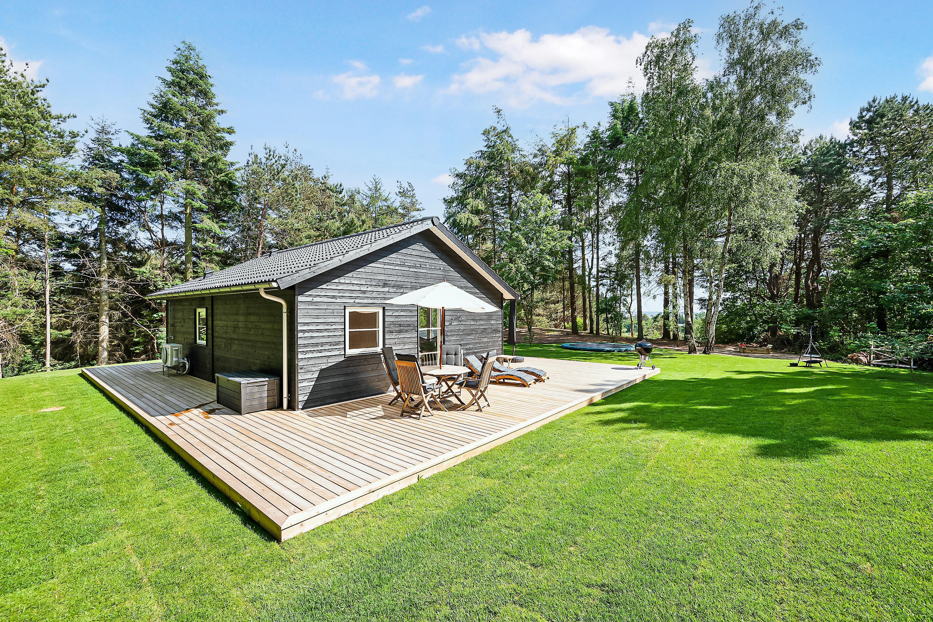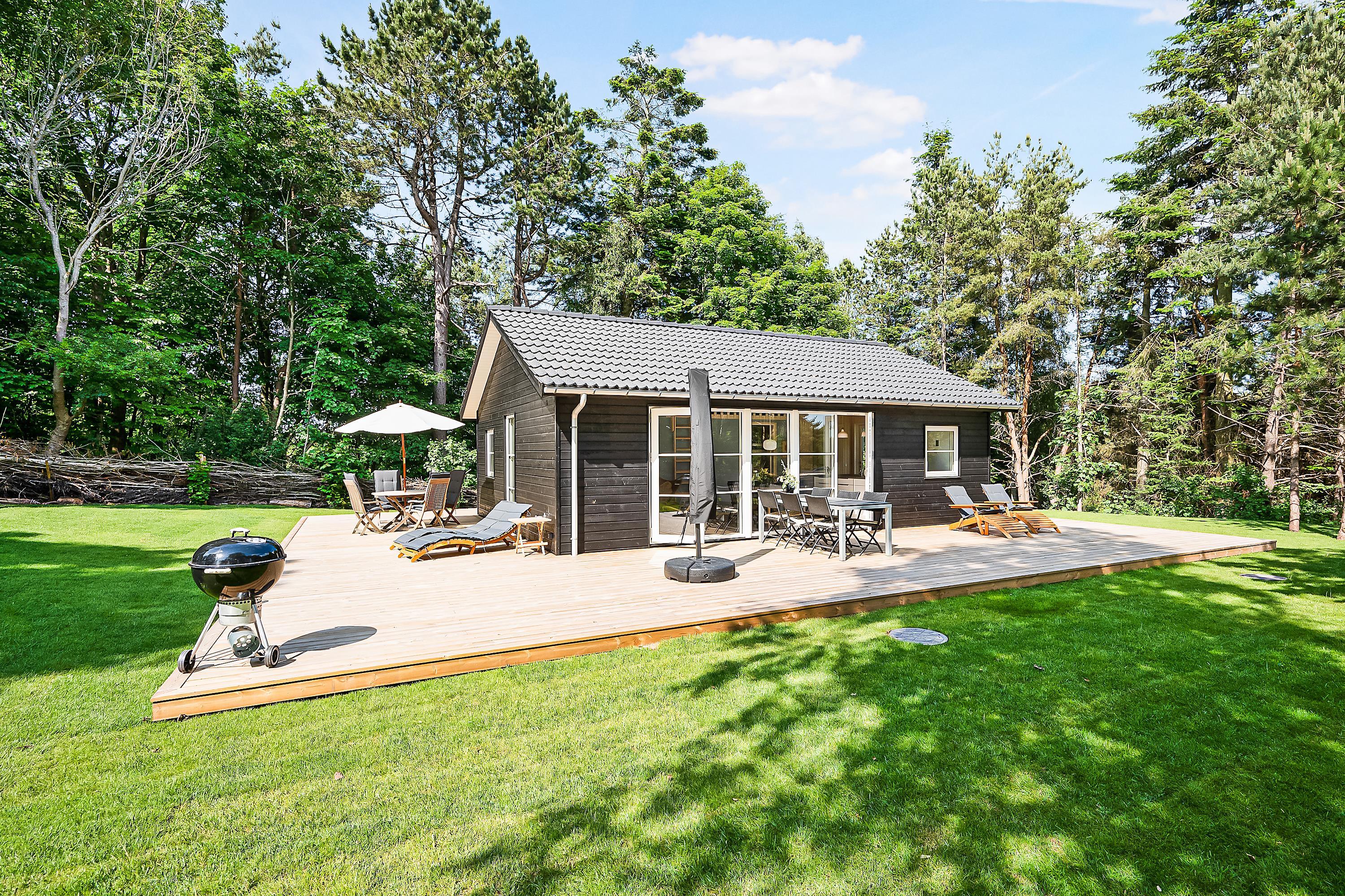 Nur 5 Autominuten von Ebeltoft entfernt finden Sie dieses schöne, neu gebaute Ferienhaus auf einem sehr schönen Grundstück. Hier finden Sie ein schönes Wohnzimmer, gemütlich eingerichtet mit guten Möbeln und mit einer Wärmepumpe. In Verbindung mit dem Wohnzimmer befindet sich die schöne Küche, unter anderem mit einer Spülmaschine und einem schönen Essbereich. Schönes Badezimmer mit Waschmaschine und Trockner sowie Fußbodenheizung. Die Betten des Hauses befinden sich in zwei guten Zimmern: ein Zimmer mit einem Doppelbett und ein Zimmer mit einem Einzelstockbett und einem breiten Einzelbett. Die letzten beiden Schlafplätze finden Sie auf dem Dachboden. WLAN ist im Ferienhaus vorhanden. Das Haus ist von schönen Terrassenbereichen mit guten Gartenmöbeln umgeben, so dass es immer Möglichkeiten gibt, sowohl Morgen - als auch Abendsonne zu genießen und auf dem Grundstück gibt es einen kleinen „Meerblick“. Es gibt eine große Rasenfläche, die zum Vergnügen und Spielen im Freien geeignet ist und mit großen alten Bäumen ausgestattet ist, so dass es auch Möglichkeiten gibt, Schatten vor der Sonne zu finden. Hier haben wir mit Sandkasten und Trampolin an die kleinen Feriengäste gedacht. Hinter dem Haus gibt es eine Außendusche, wo man völlig ungestört sein kann.