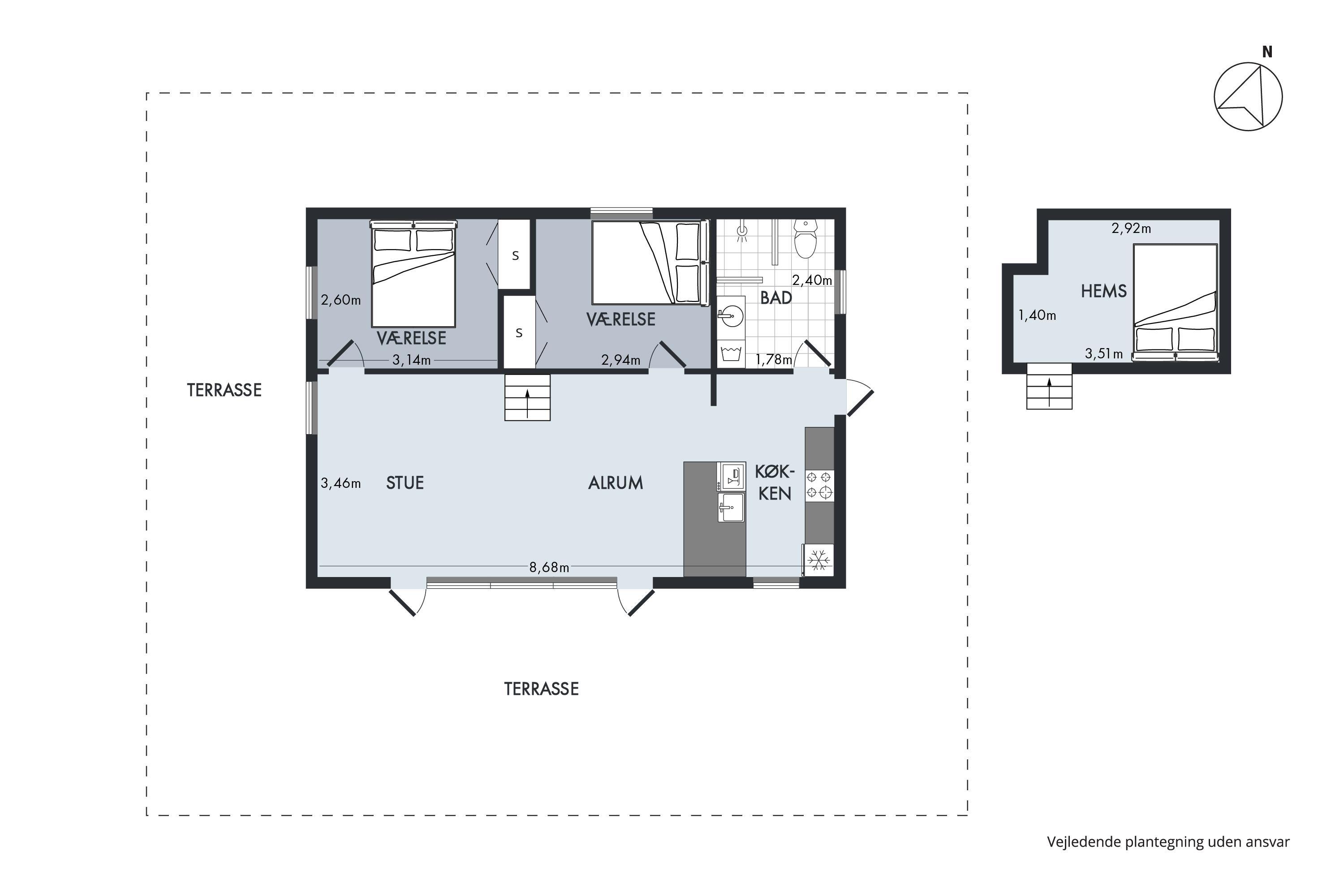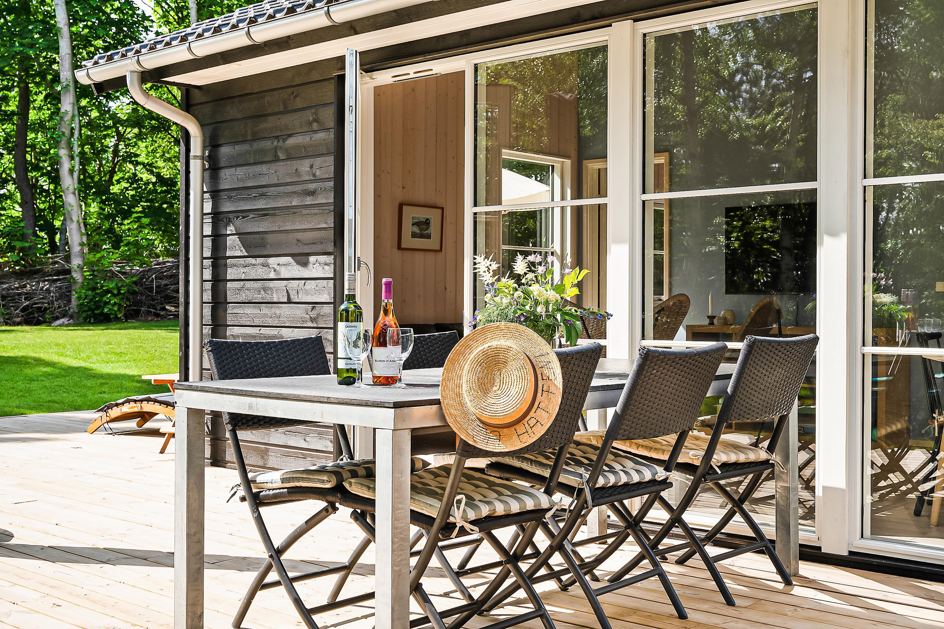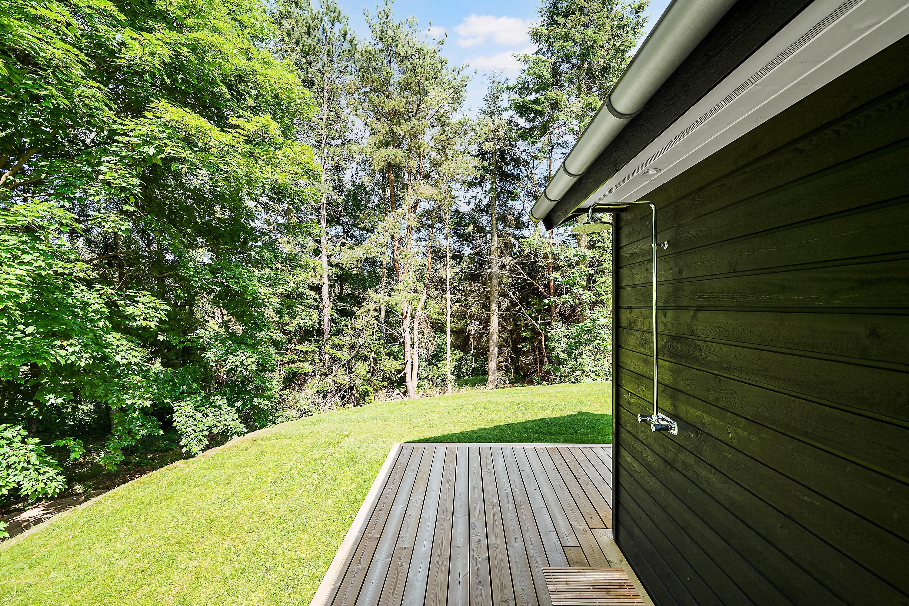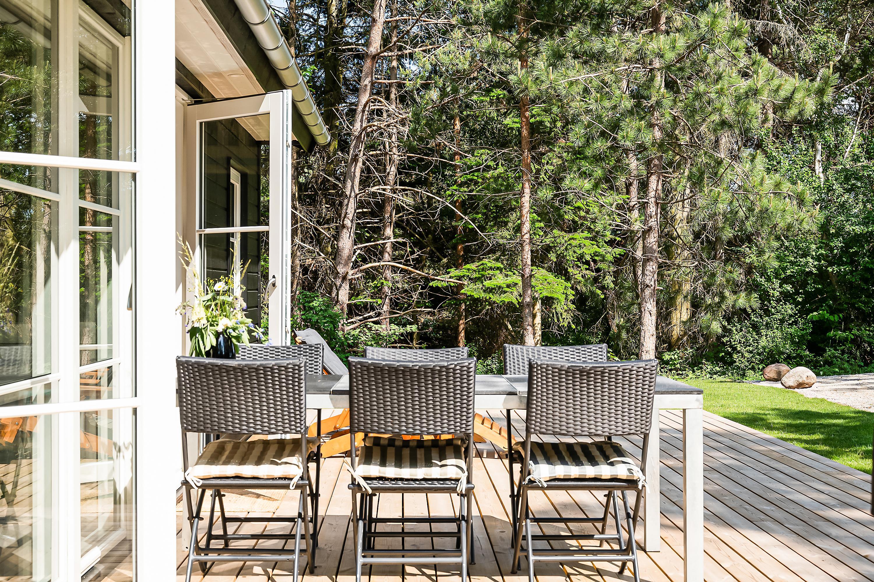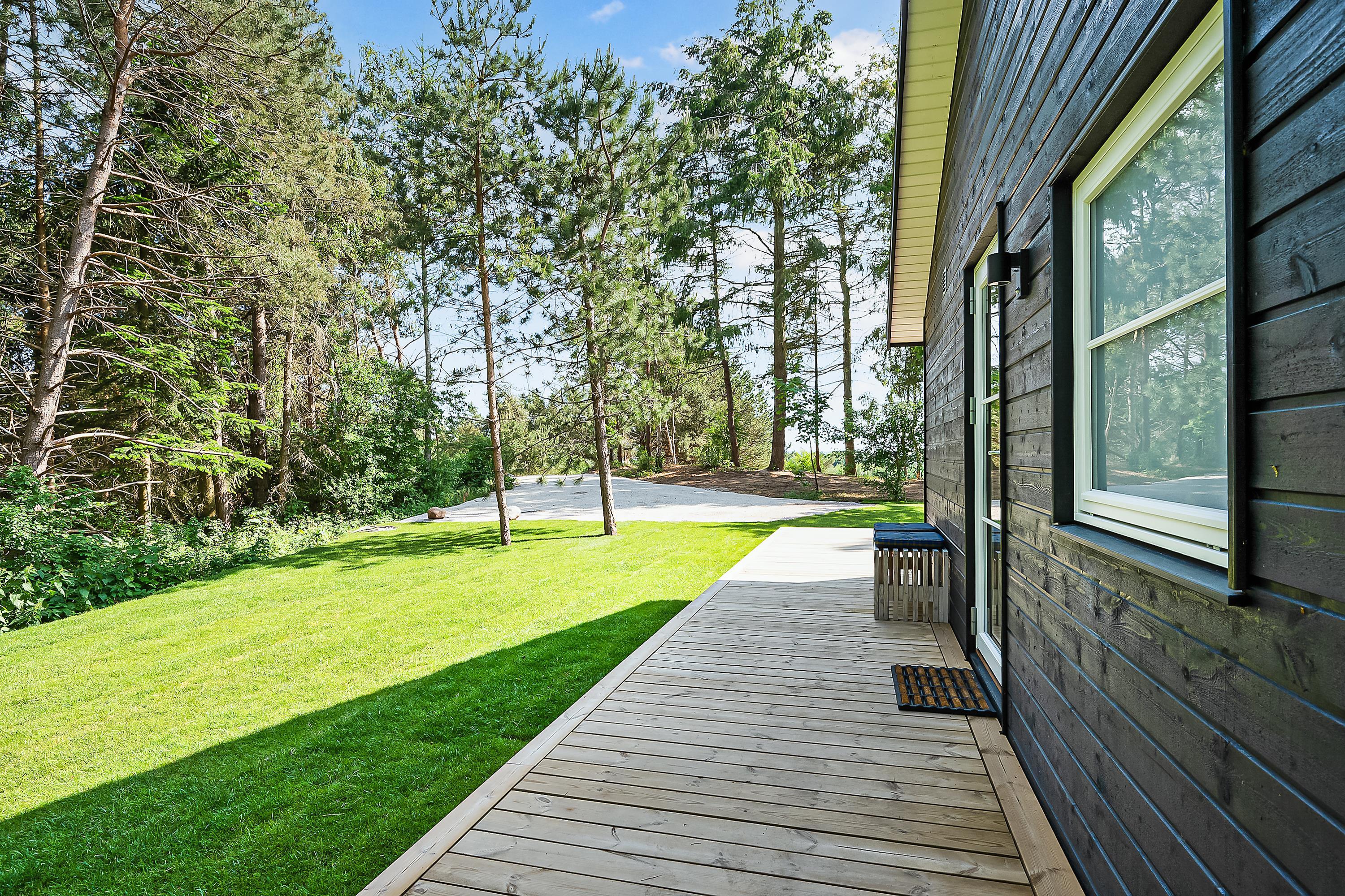 Nur 5 Autominuten von Ebeltoft entfernt finden Sie dieses schöne, neu gebaute Ferienhaus auf einem sehr schönen Grundstück. Hier finden Sie ein schönes Wohnzimmer, gemütlich eingerichtet mit guten Möbeln und mit einer Wärmepumpe. In Verbindung mit dem Wohnzimmer befindet sich die schöne Küche, unter anderem mit einer Spülmaschine und einem schönen Essbereich. Schönes Badezimmer mit Waschmaschine und Trockner sowie Fußbodenheizung. Die Betten des Hauses befinden sich in zwei guten Zimmern: ein Zimmer mit einem Doppelbett und ein Zimmer mit einem Einzelstockbett und einem breiten Einzelbett. Die letzten beiden Schlafplätze finden Sie auf dem Dachboden. WLAN ist im Ferienhaus vorhanden. Das Haus ist von schönen Terrassenbereichen mit guten Gartenmöbeln umgeben, so dass es immer Möglichkeiten gibt, sowohl Morgen - als auch Abendsonne zu genießen und auf dem Grundstück gibt es einen kleinen „Meerblick“. Es gibt eine große Rasenfläche, die zum Vergnügen und Spielen im Freien geeignet ist und mit großen alten Bäumen ausgestattet ist, so dass es auch Möglichkeiten gibt, Schatten vor der Sonne zu finden. Hier haben wir mit Sandkasten und Trampolin an die kleinen Feriengäste gedacht. Hinter dem Haus gibt es eine Außendusche, wo man völlig ungestört sein kann.