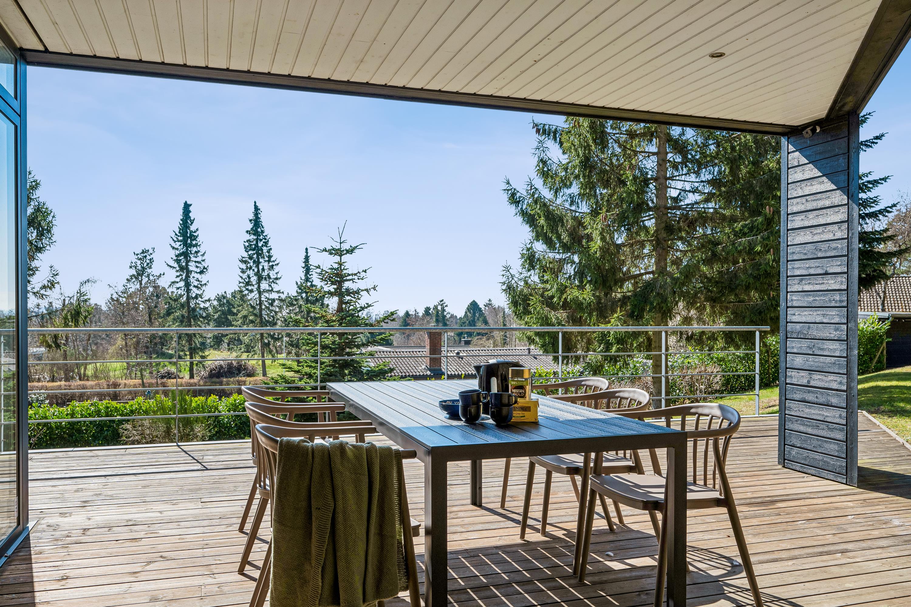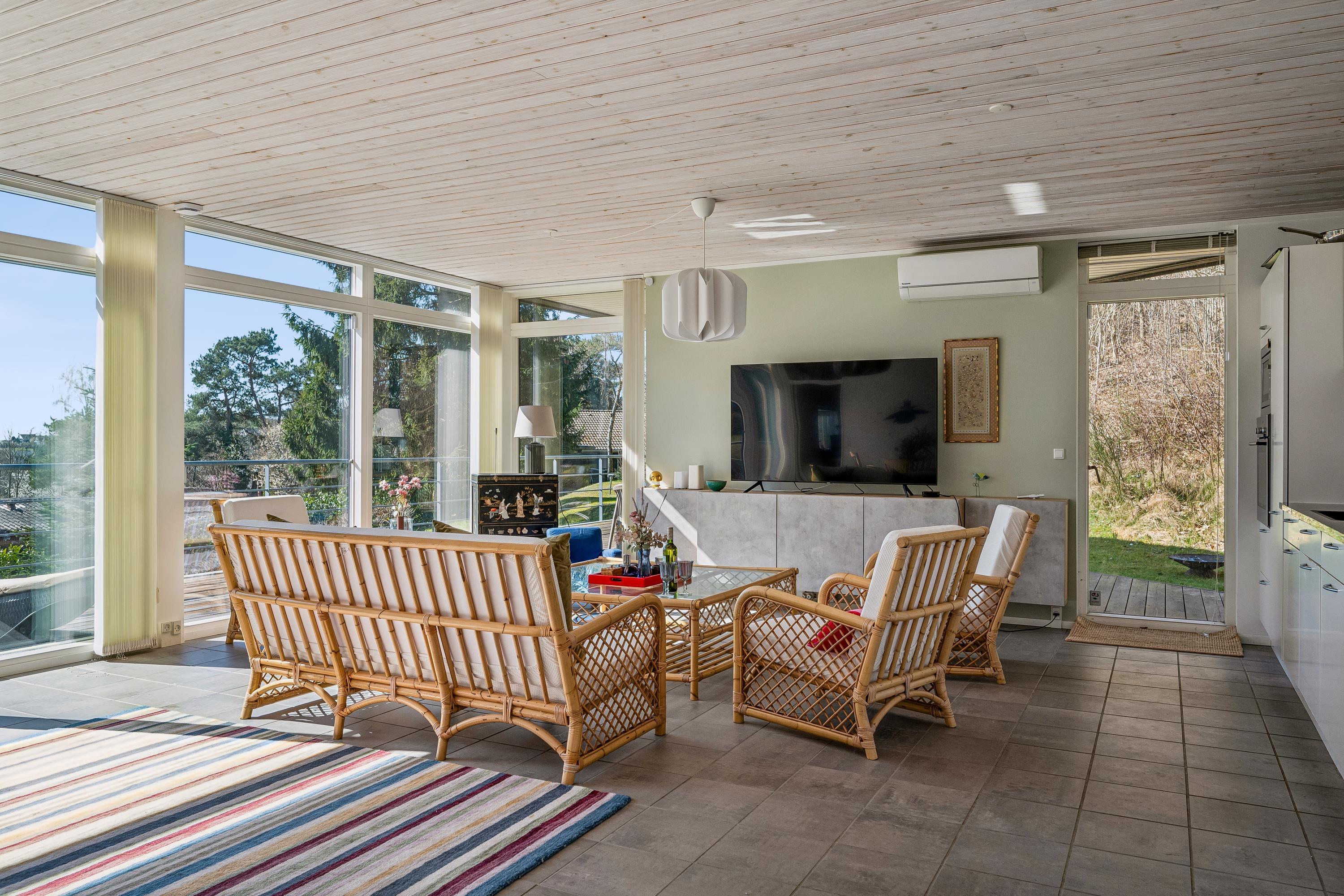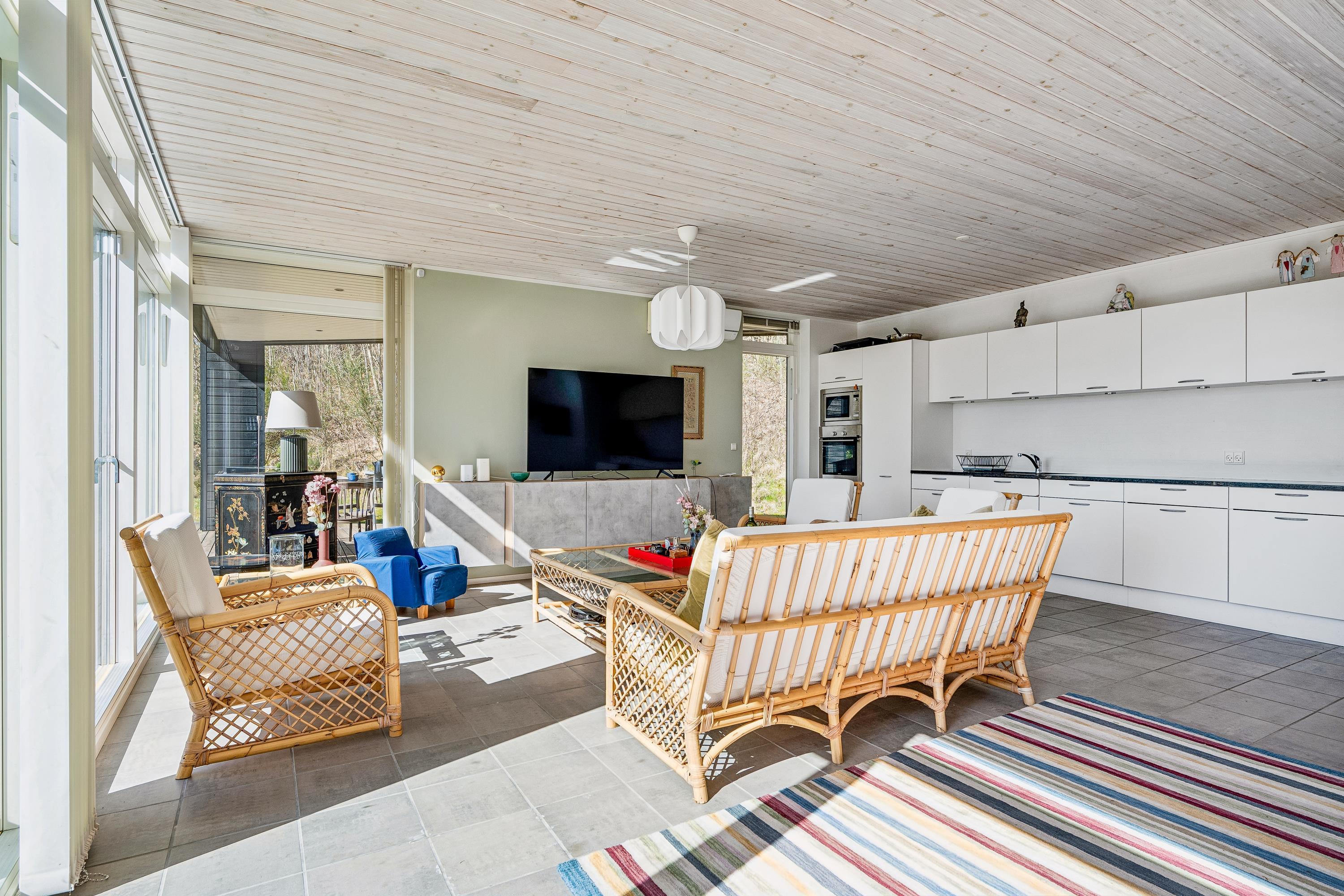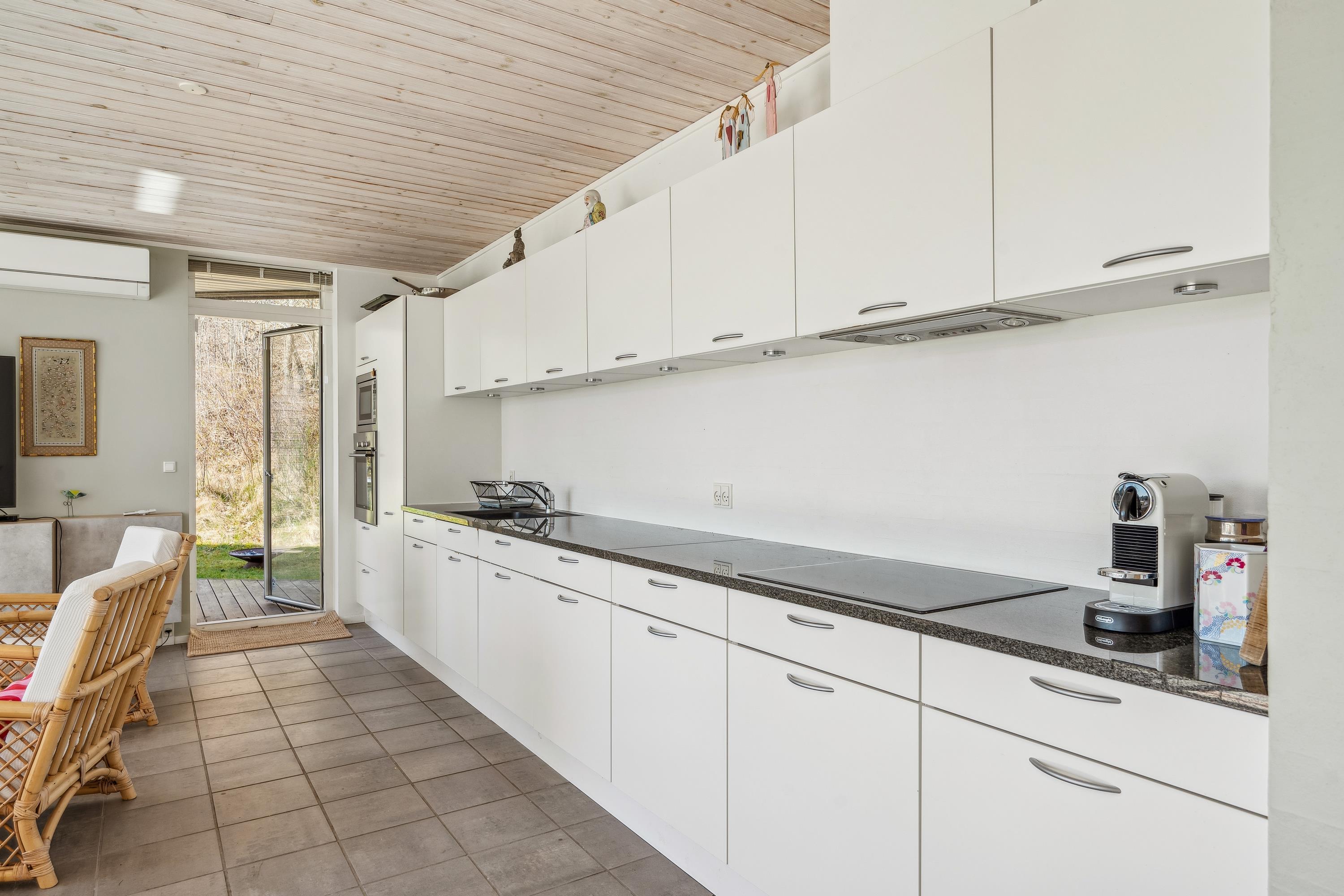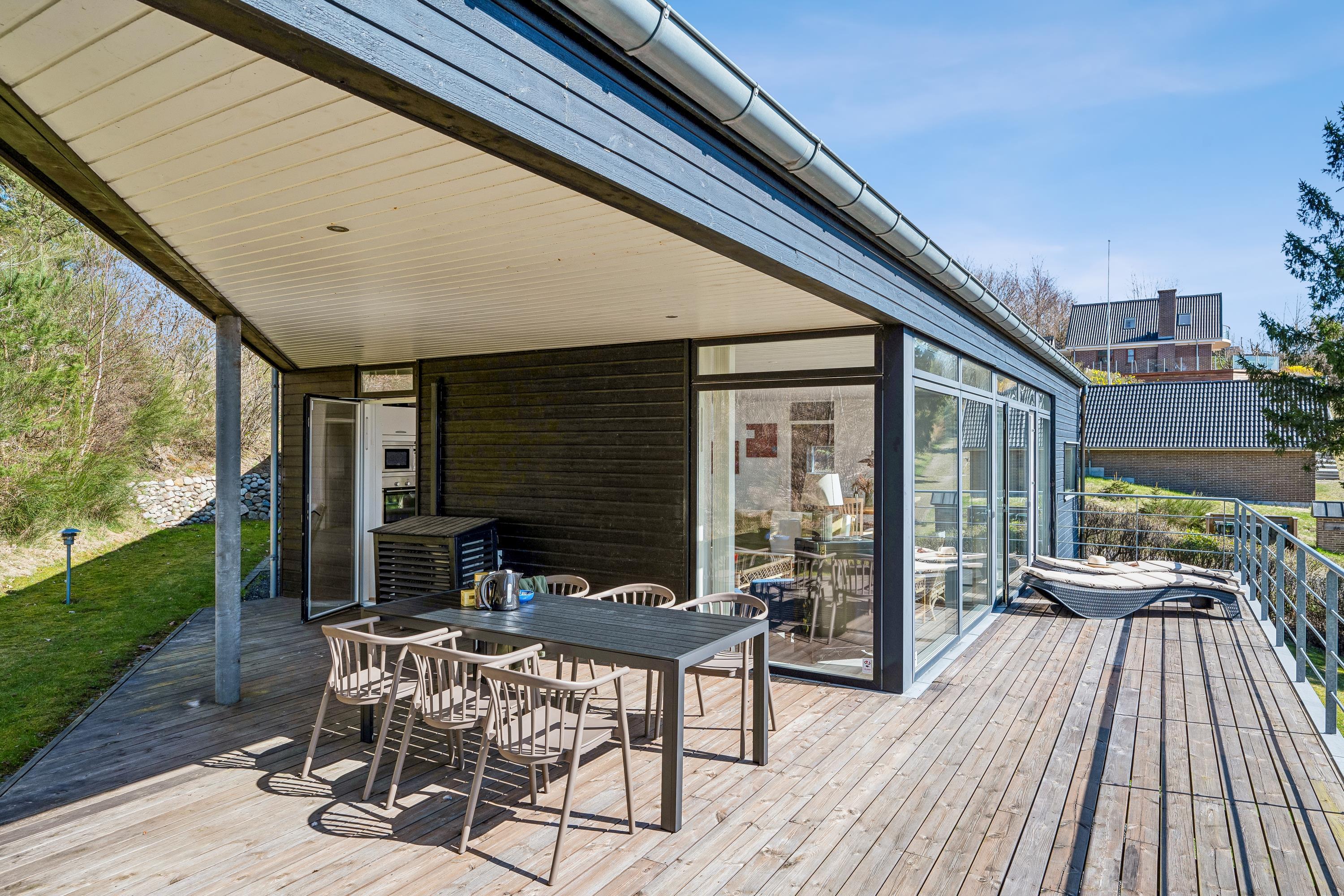 In ruhiger Umgebung nahe einem schönen Badestrand befindet sich dieses attraktive, architektonisch gestaltete Ferienhaus. Das Haus bietet ein großes, helles Wohnzimmer mit Zugang zu einer großzügigen Terrasse. Angrenzend befindet sich die moderne Küche mit u.a. Geschirrspüler sowie Zugang zur überdachten Terrasse mit Gartenmöbeln.