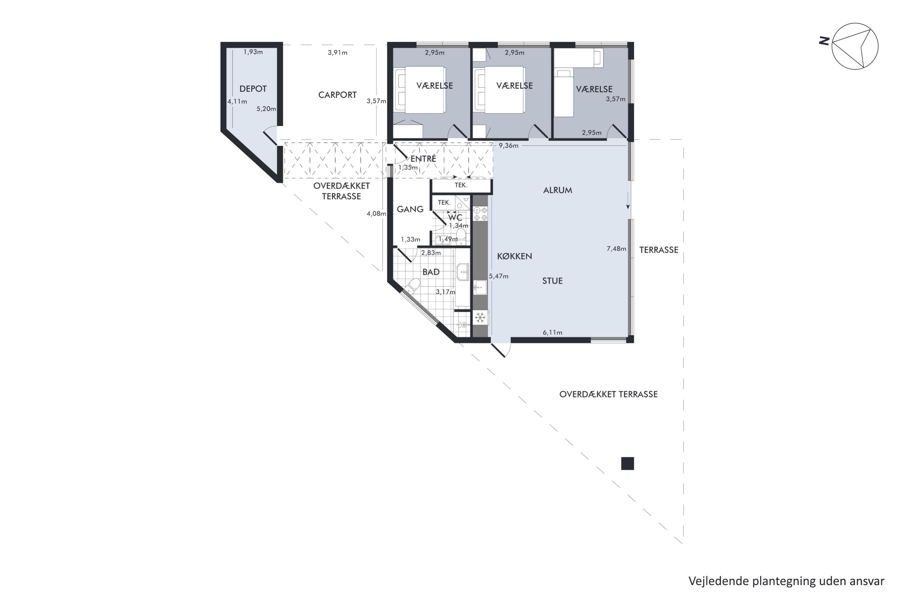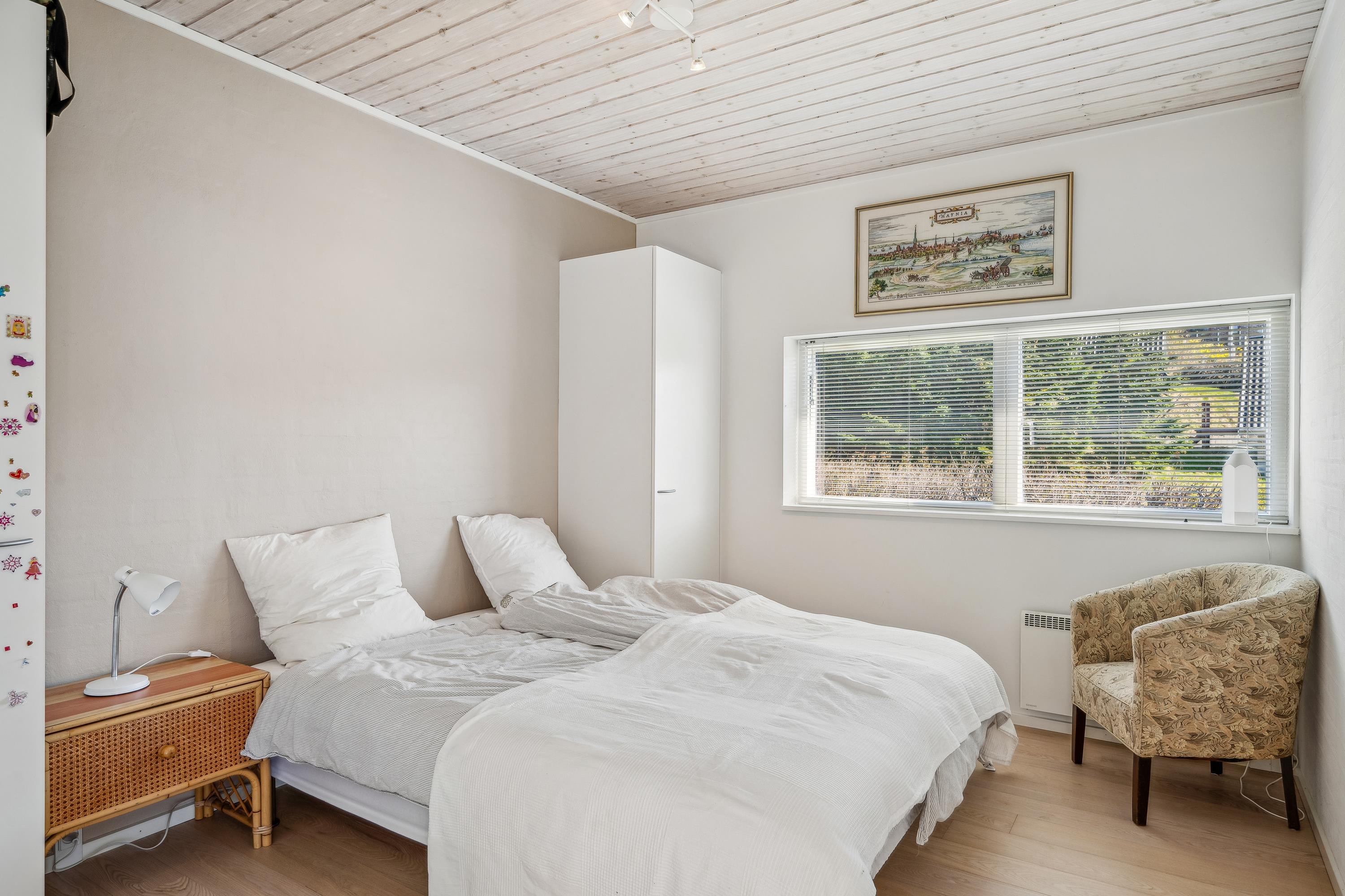 Die Schlafplätze verteilen sich auf drei Schlafzimmer – zwei mit Doppelbetten und eines mit zwei Einzelbetten. Schönes Badezimmer mit Fußbodenheizung und Duschkabine sowie zusätzliches Gäste-WC. Für das Auto steht ein Carport mit elektrischer Toröffnung. Das Grundstück ist gepflegt mit Rasenfläche und bietet zudem einen angelegten Basketballplatz für Aktivurlauber.