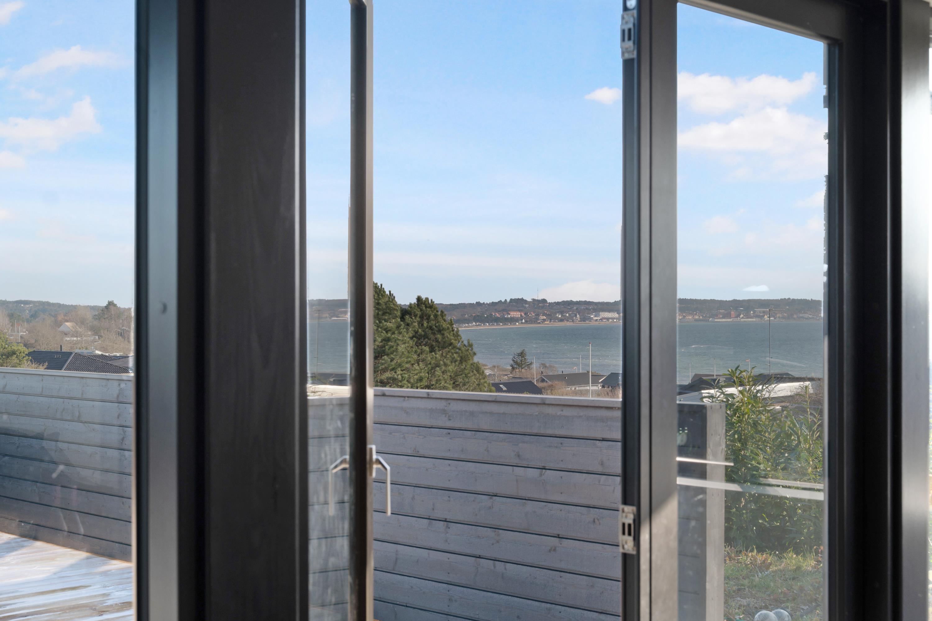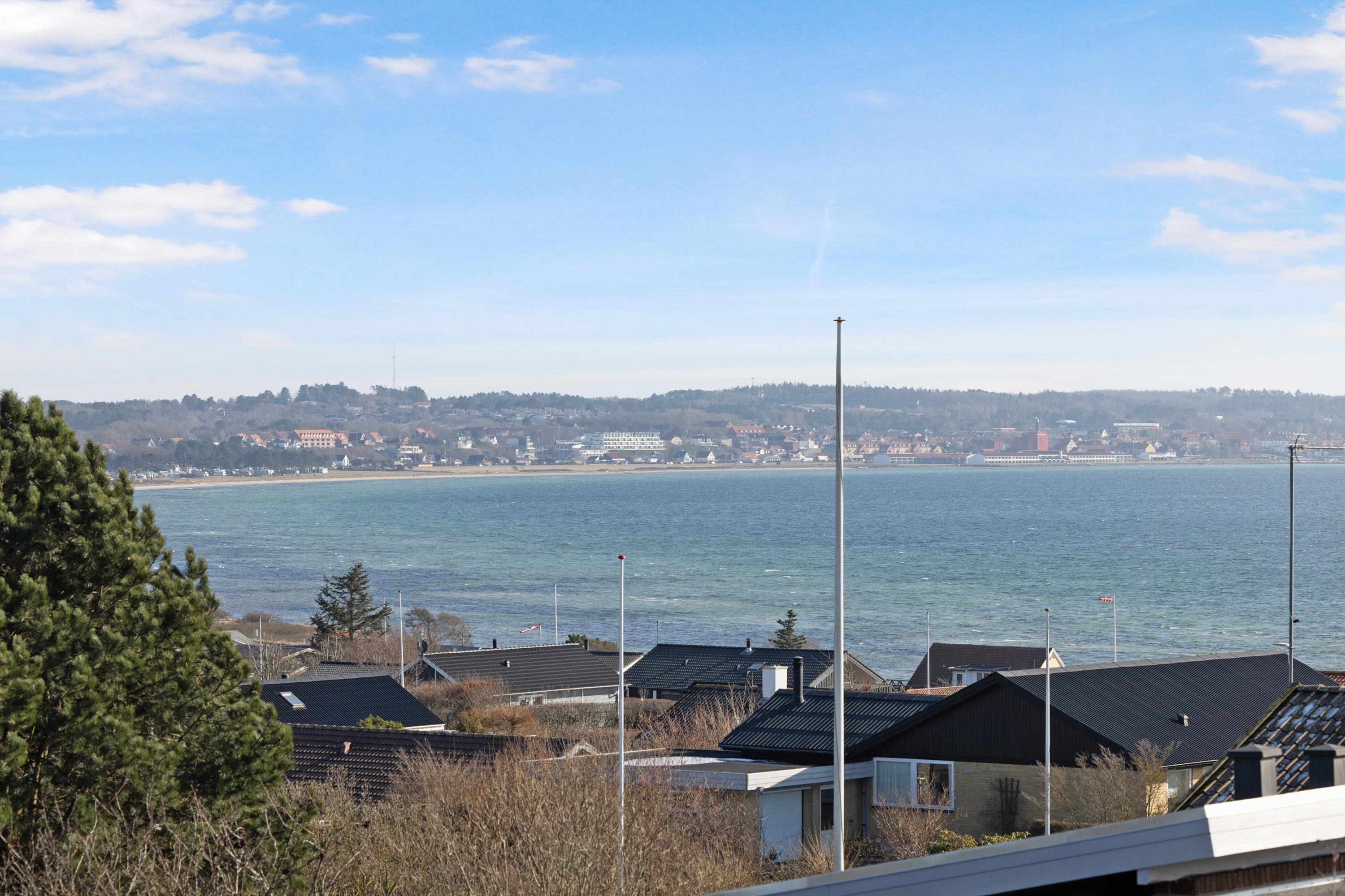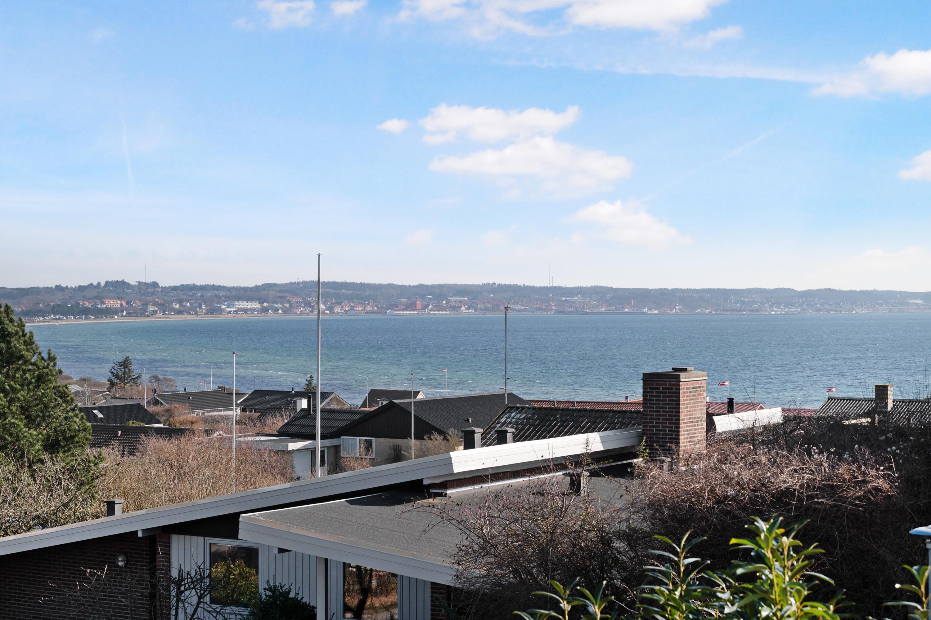 In der Nähe von Ebeltoft finden Sie dieses schöne neuere Ferienhaus, von dem Sie einen fantastischen Panoramablick auf die Bucht von Ebeltoft haben. Hier finden Sie ein großes helles Wohnzimmer, von dem aus Sie auf eine schöne Terrasse mit Gartenmöbeln und Grill gelangen. In Verbindung mit dem Wohnzimmer befindet sich die schöne und stilvolle Küche mit unter anderem Geschirrspüler. Die Schlafplätze des Hauses sind in drei gute Zimmer mit Doppelbetten aufgeteilt. Zwei schöne Badezimmer mit Fußbodenheizung und ebenerdiger Dusche. Hinterer Flur mit Waschbecken, Waschmaschine und Wäschetrockner. Es gibt WLAN im Haus. Für die kleinen Feriengäste gibt es Fußballtore, ein Trampolin und eine Schaukel.