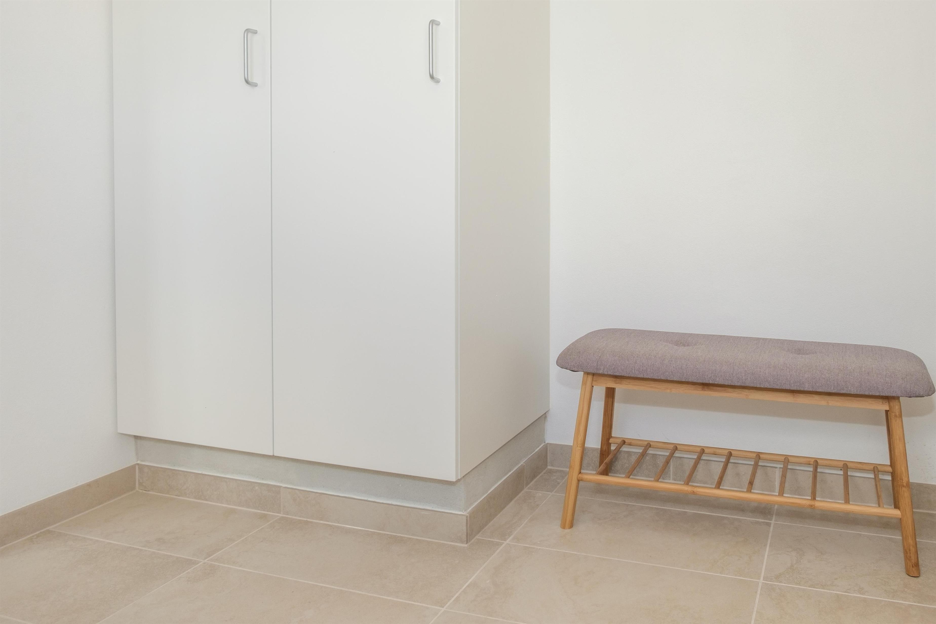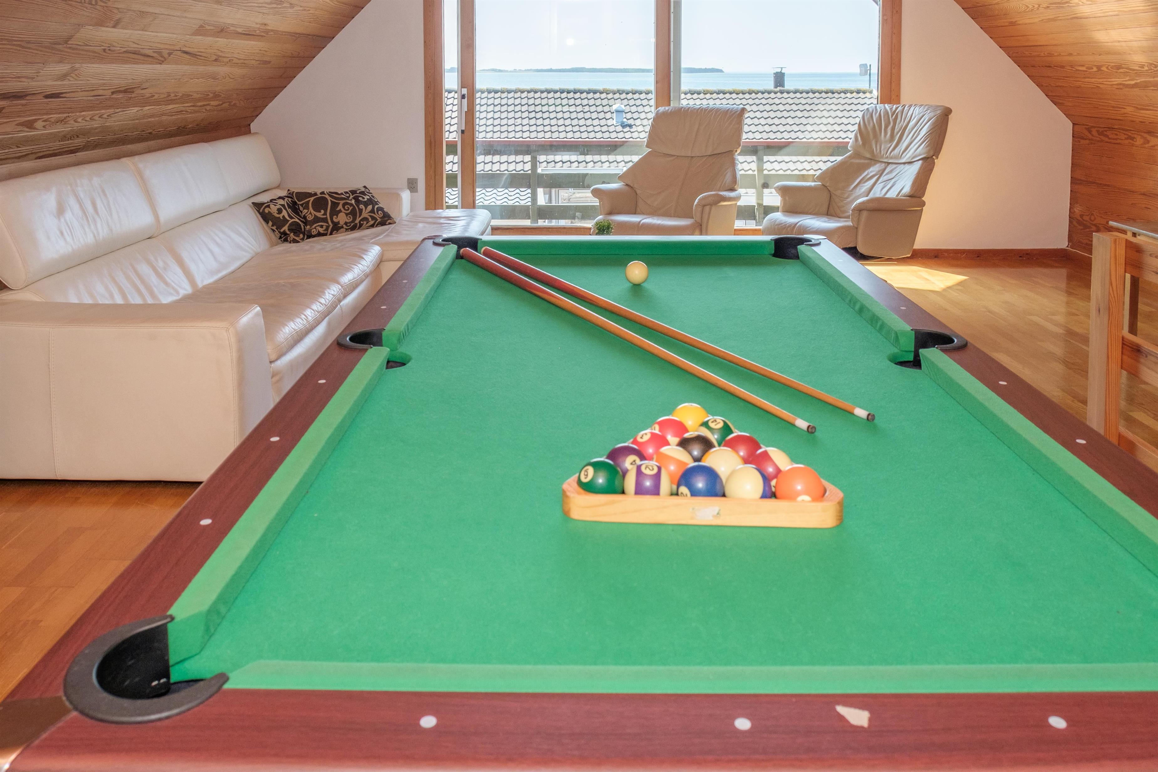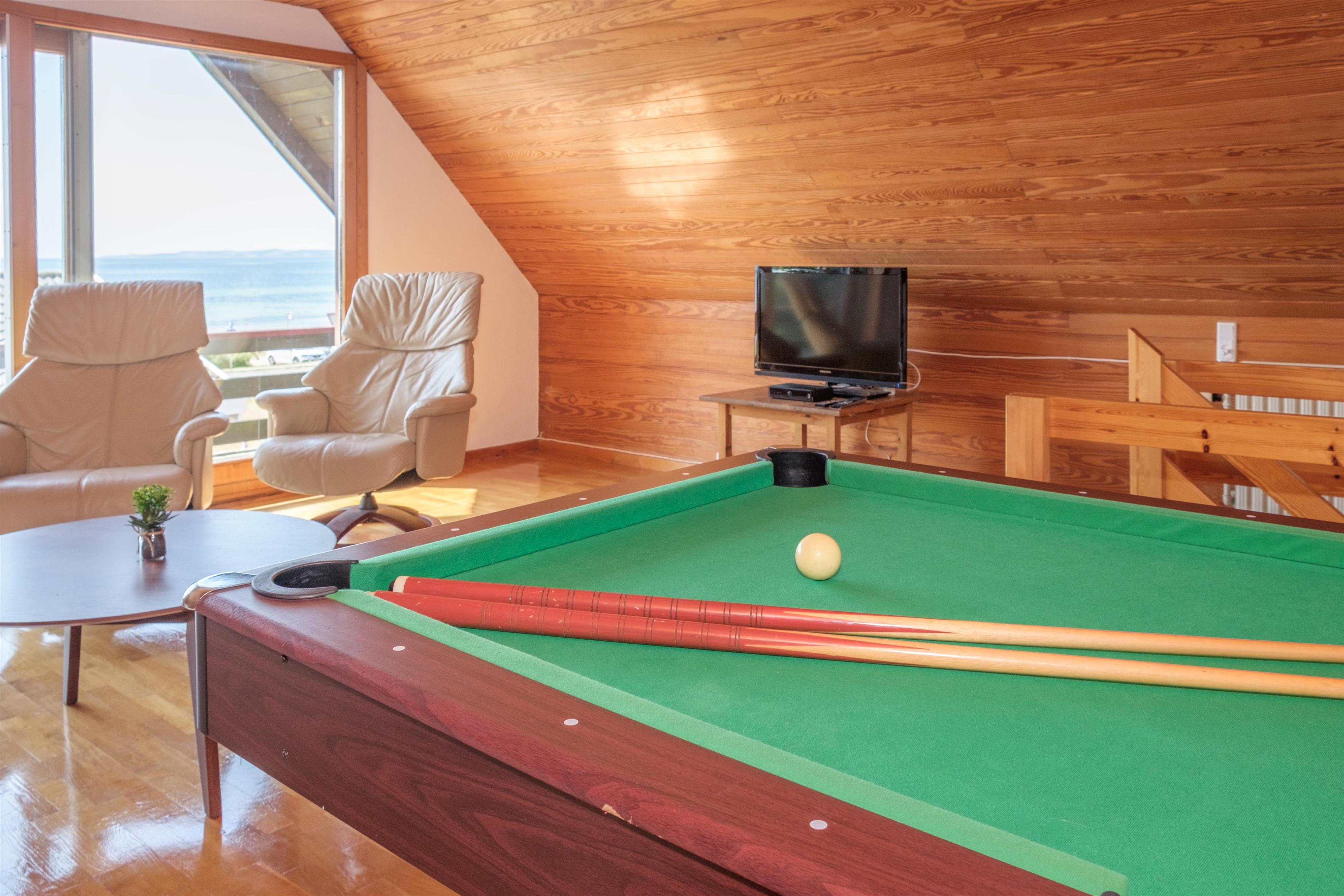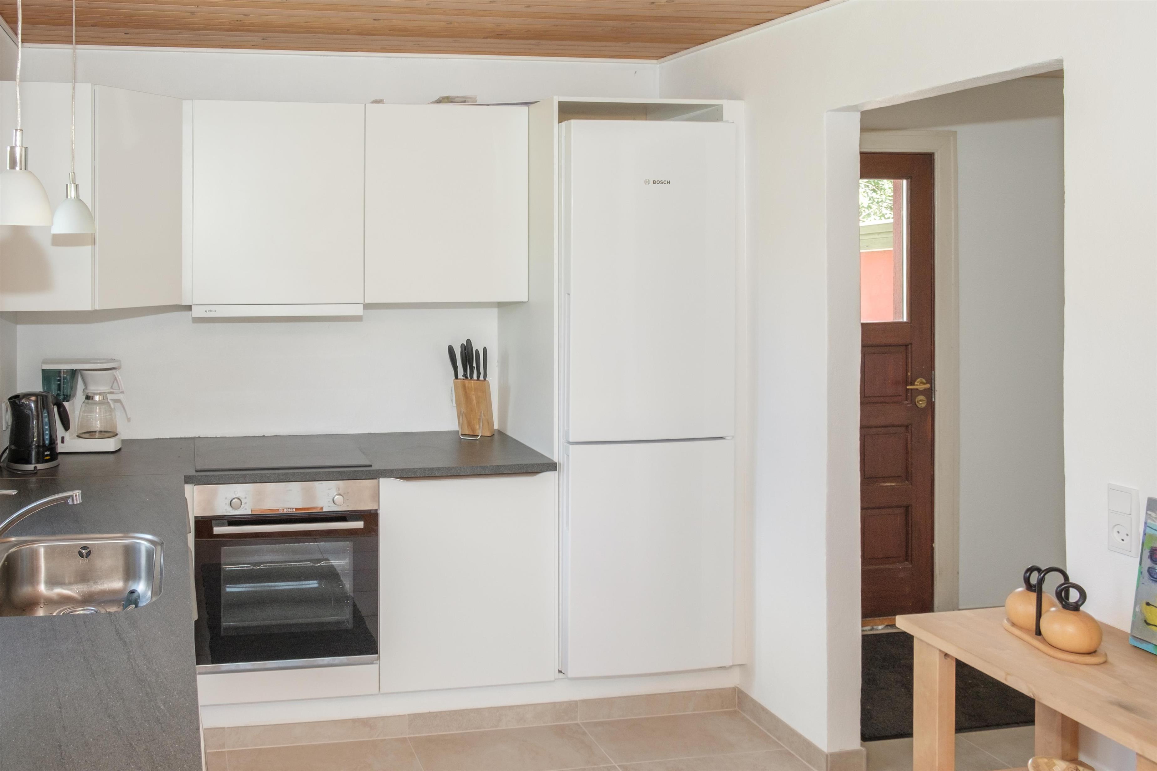 Vom geräumigen Eingangsbereich kommt man in die große Wohnküche mit Kaminofen und Essplatz für 12 Personen am langen Holztisch. Für die Kleinsten ist ein Hochstuhl vorhanden. Schicke neue Küche mit Glaskeramik-Kochfeld, Einbaubackofen, Kühl-/Gefrierkombination, Geschirrspüler und Mikrowelle. Im 1. Stock befindet sich das gemütliche, gut möblierte Wohnzimmer mit TV mit dänischen (inkl. TV2) und deutschen Programmen, Radio sowie Ausgang auf den kleinen, überdachten Aussichtsbalkon. Die insgesamt 12 Schlafplätze verteilen sich auch zwei gute Schlafzimmer mit Doppelbett und ein Zimmer mit zwei Etagenbetten im Erdgeschoss sowie zwei Schlafzimmer mit Doppelbett im 1. Stock. Im Erdgeschoss befinden sich ein schönes, neues Badezimmer mit Dusche, Waschmaschine und Trockner sowie das Original-Badezimmer aus den 60er Jahren mit hellblauen Fliesen und Badewanne. Beide sind mit Fußbodenheizung ausgestattet. Internetzugang.